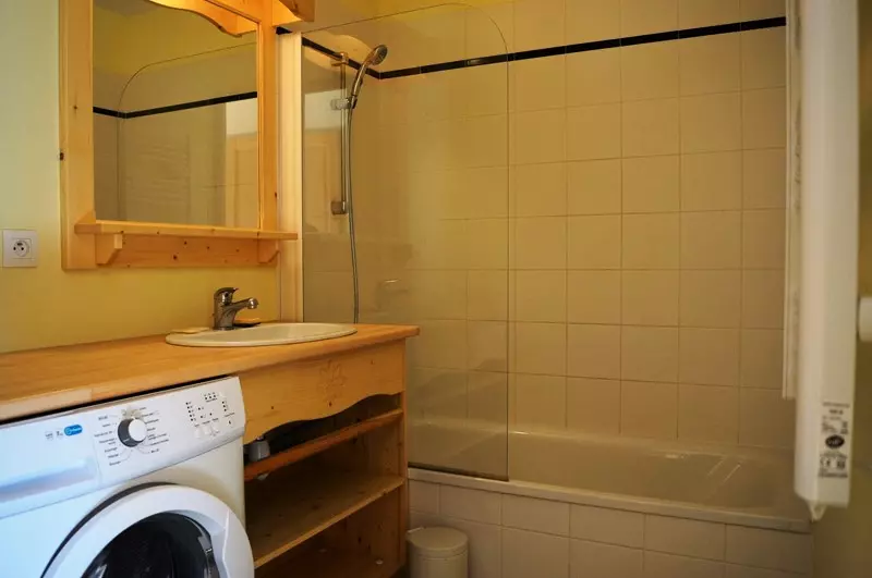 *On the lower level, an entrance hall, a bathroom with sink and bath and washing machine, a WC, a bedroom with double bed and wardrobe, a 26.30m2 living room with equipped kitchenette; a 2-seater sofa bed and a 1-seater sofa bed; a 13m2 south-facing terrace with views of the Aiguilles d'Arves.
