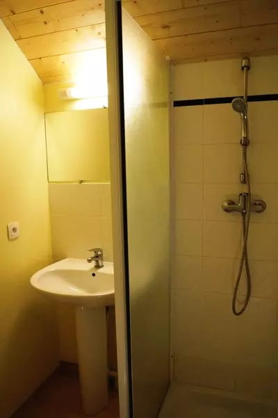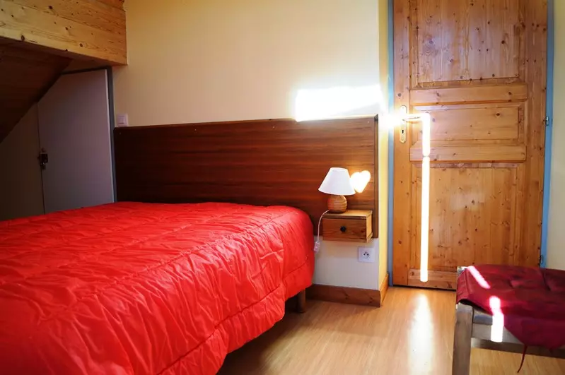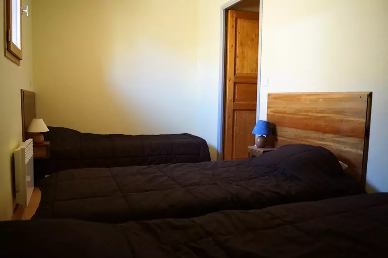 *Upstairs: a hallway, a bathroom with sink, shower, and toilet, a bedroom with a double bed under the eaves, another bedroom with three single beds under the eaves, and a south-facing balcony. End-of-stay cleaning included for the 2024-2025 winter season.