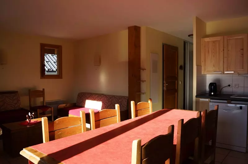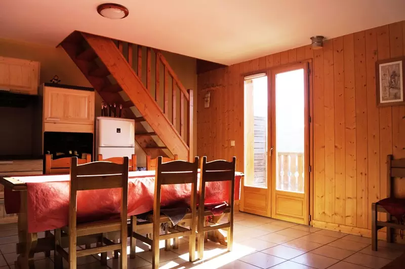 A cozy and comfortable semi-detached chalet, 64 m² on two levels (76 m² of floor space), located in La Chal, Saint Jean d'Arves, in the Sybelles ski area, with ski-in/ski-out access.