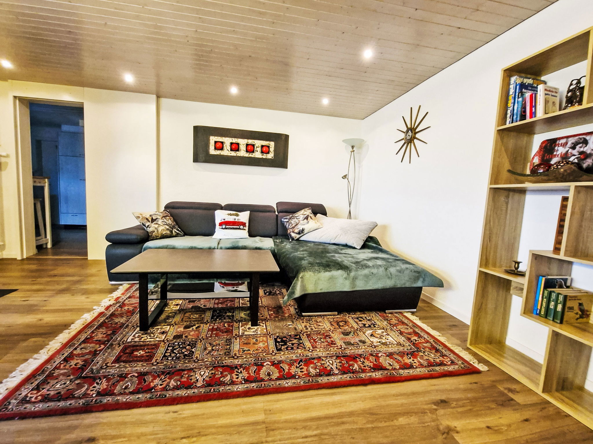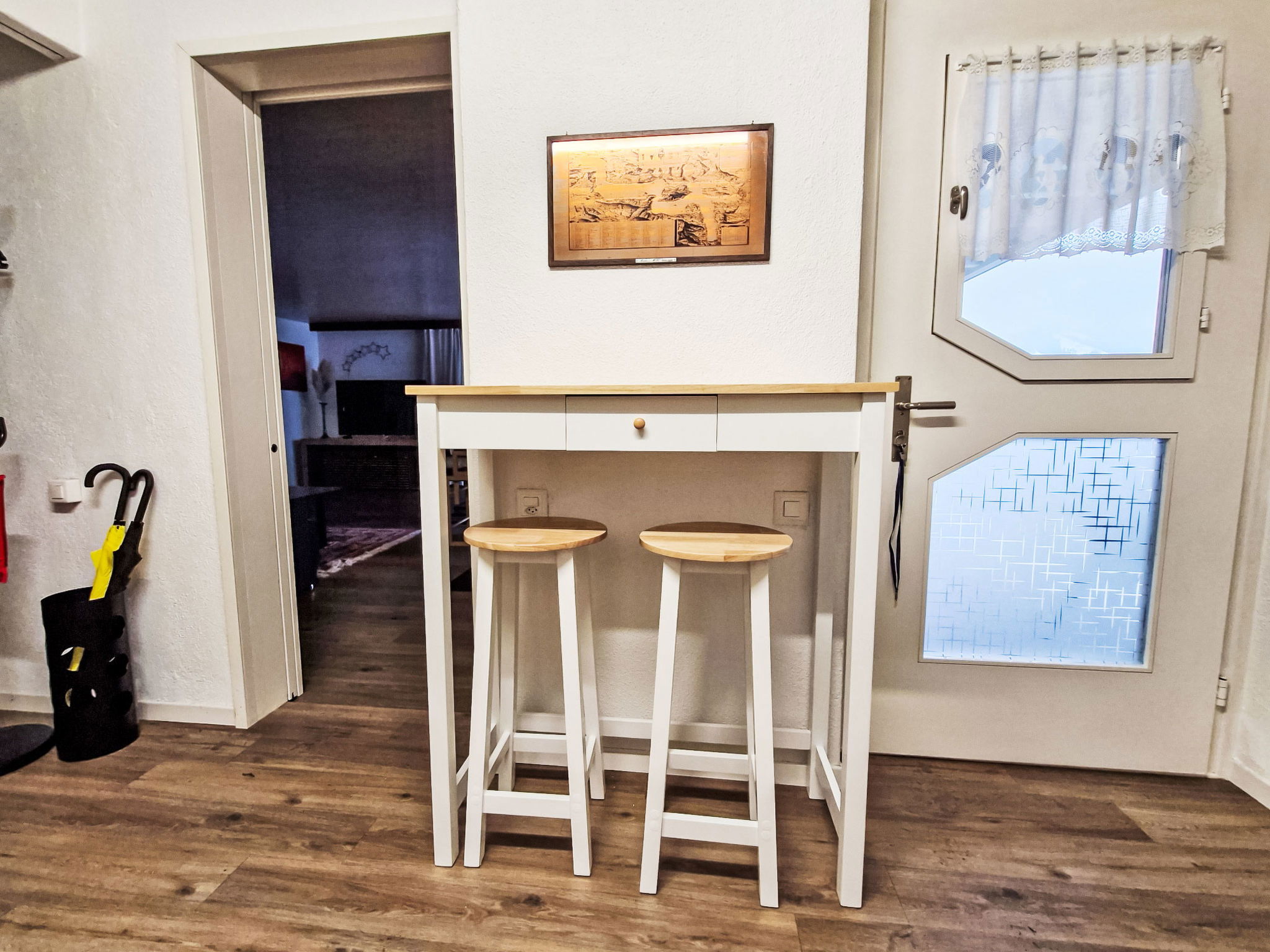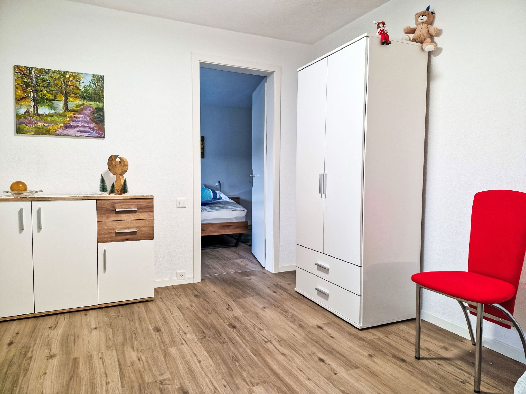 In the apartment you will find a well-thought-out equipment that will make your stay as pleasant as possible. In addition to the necessity such as a washing machine and a tumble dryer for sole use, a dishwasher, a capsule coffee machine, a kettle and a glass-ceramic hob are also part of the equipment. A smart TV is available for your entertainment. A standing fan provides fresh air on warmer days. In winter, the rooms are pleasantly heated and the wood-burning stove creates a cozy atmosphere.