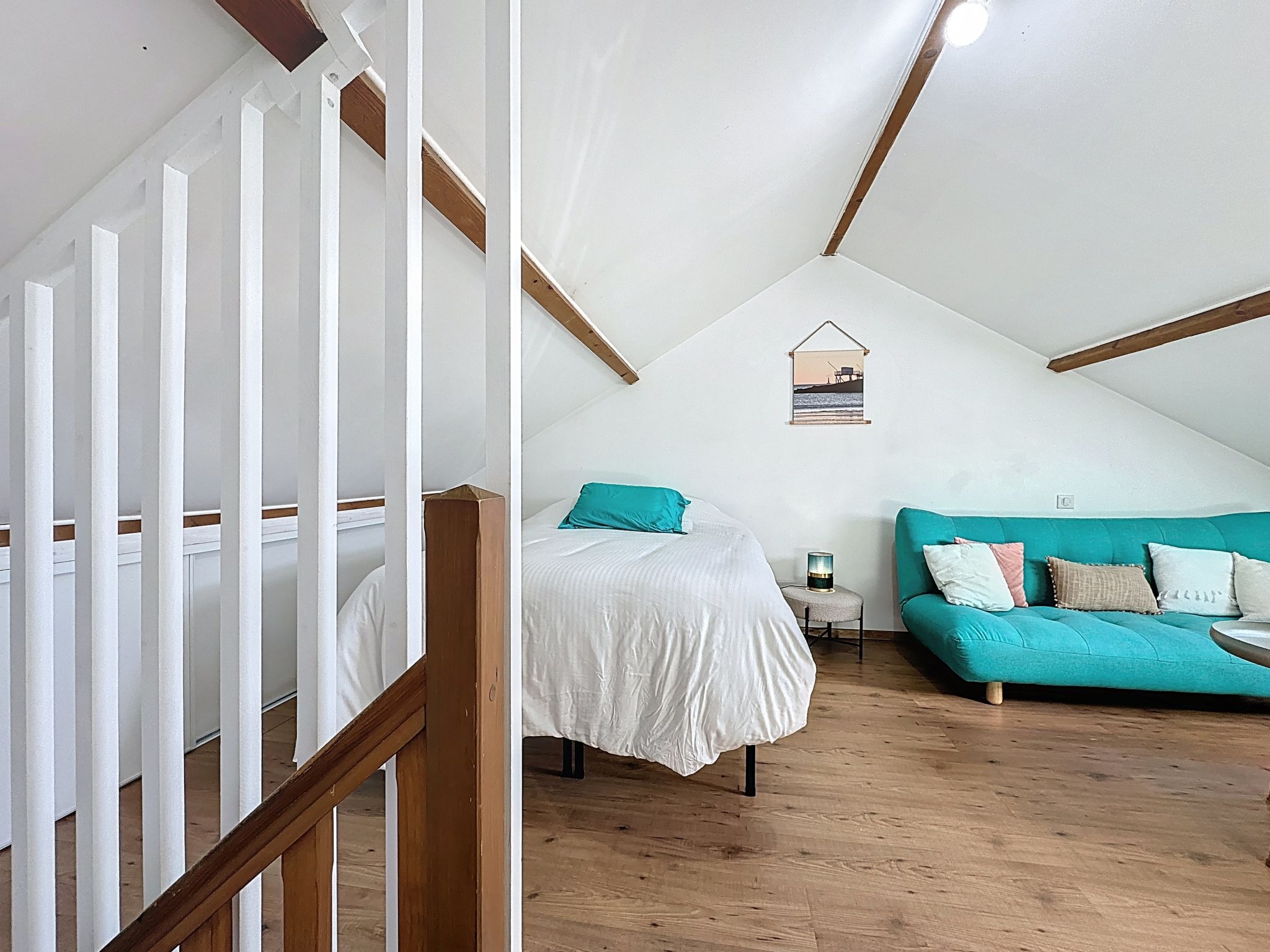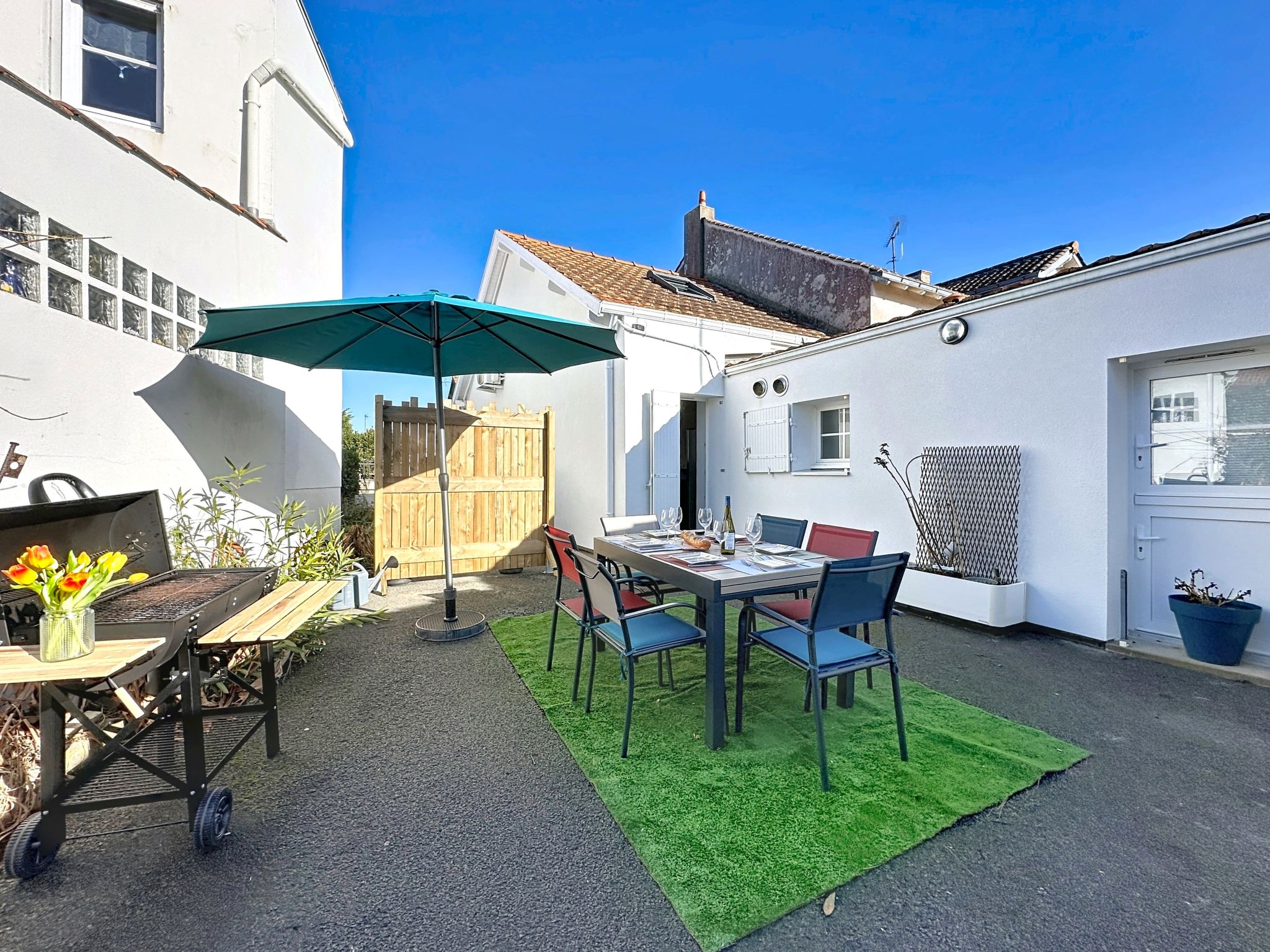 "Sanoubott", 4-room terraced house 74 m2 on 2 levels, south facing position. Living/dining room. Exit to the terrace, south facing position. 1 room with 1 double wall-trunk bed " 650 m, railway station "La Bernerie en Retz" 1 km, sandy beach "Plage des Carrés" 300 m, thermal baths "Alliance Pornic Thalasso & Spa". Golf course (18 hole) 10 km, tennis 650 m, minigolf 10 km. Nearby attractions: Marché de la Bernerie en Retz 450 m, Pornic 6 km, Port du Collet 7 km, Planète Sauvage 24 km, Les Machines de l'Ile de Nantes 44 km, Ile de Noirmoutier 52 km. Well-known lakes can easily be reached: Lac de Saint Viaud 23 km.