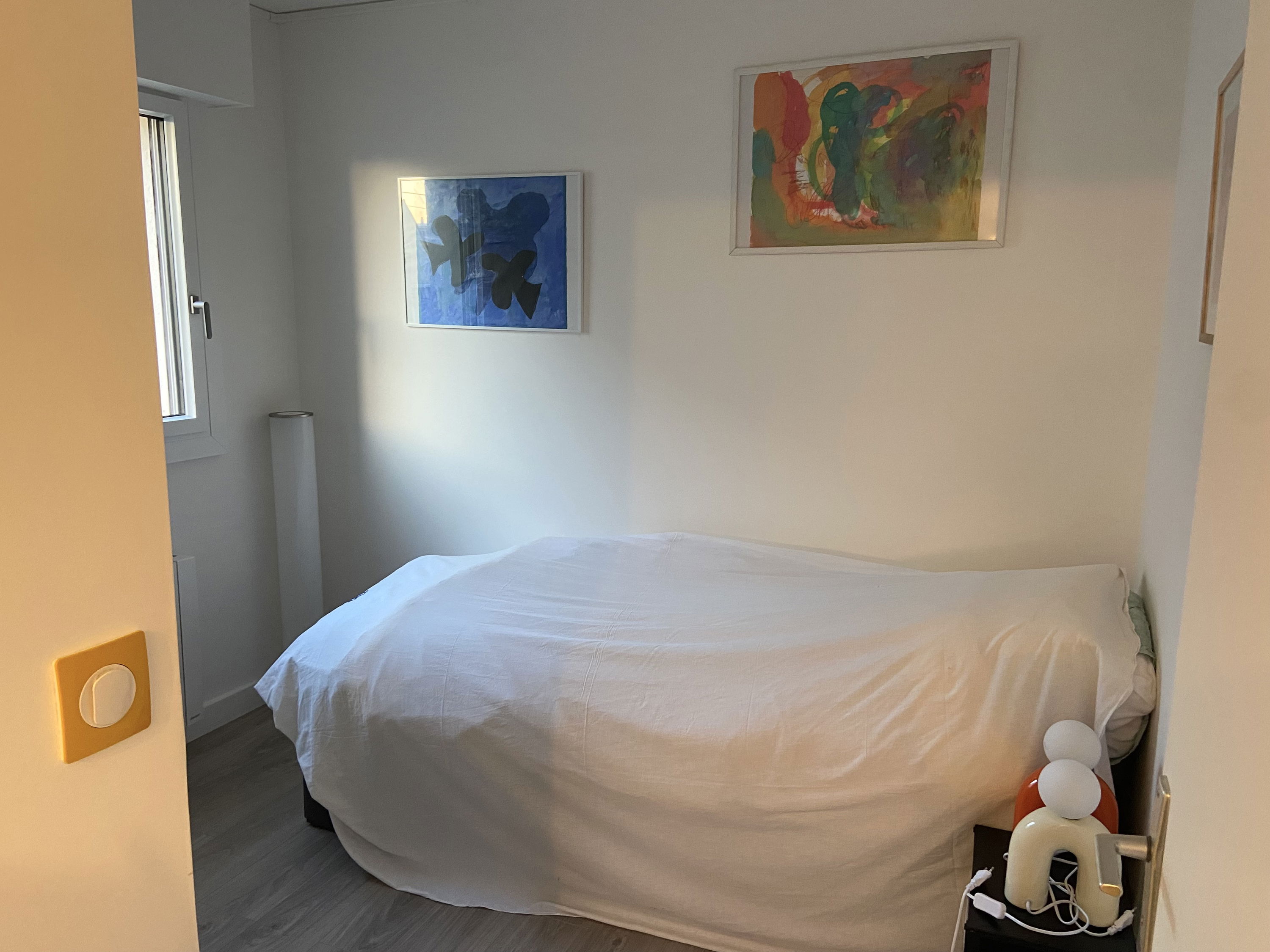 The apartment offers two bedrooms: a bedroom equipped with a double bed 140x190, and a second bedroom with two beds 80x190 that can be joined into a double bed 160. The bathroom includes a shower, a towel warmer with separate WC.