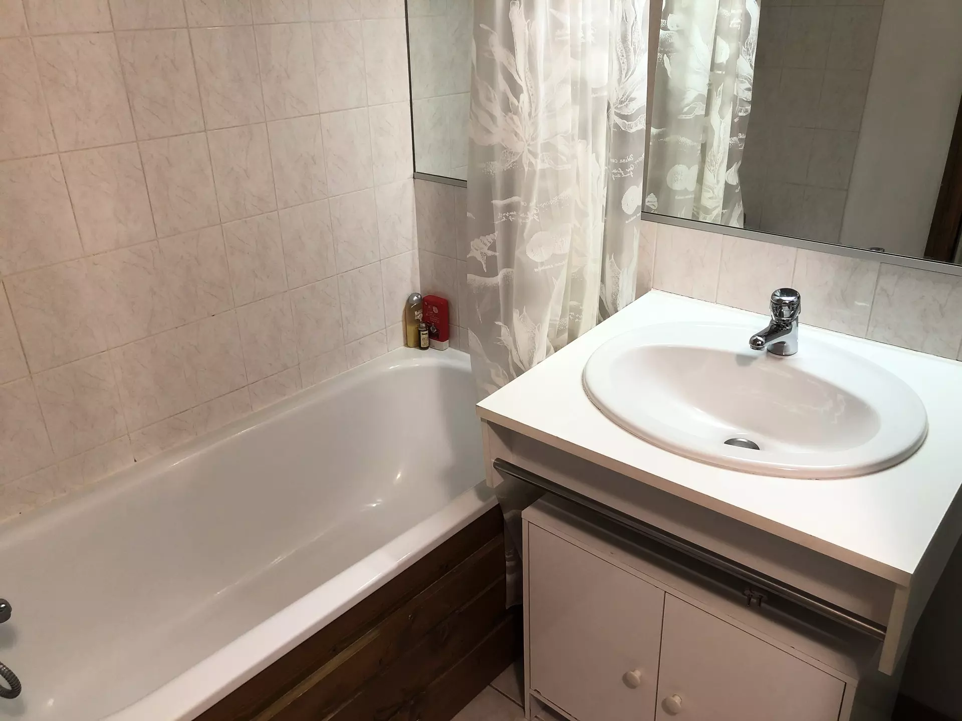 - Bathroom with bathtub and sink.