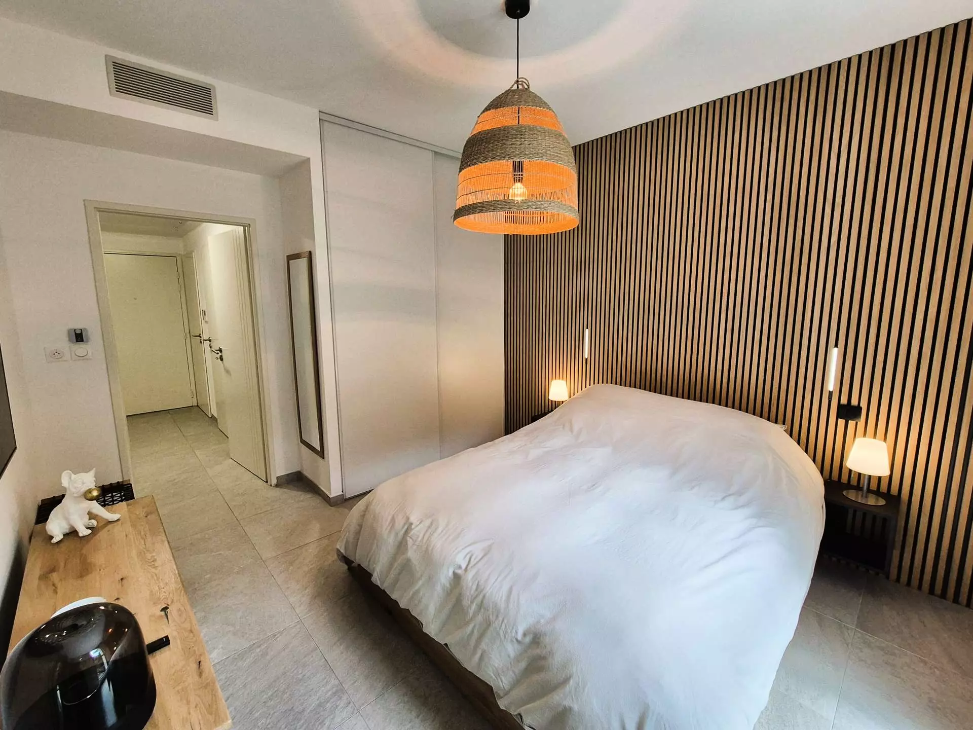 A few minutes' walk from the beaches, shops and entertainment of the Sablettes and Pin Rolland districts, in a new residence, very nice air-conditioned apartment with parking space.