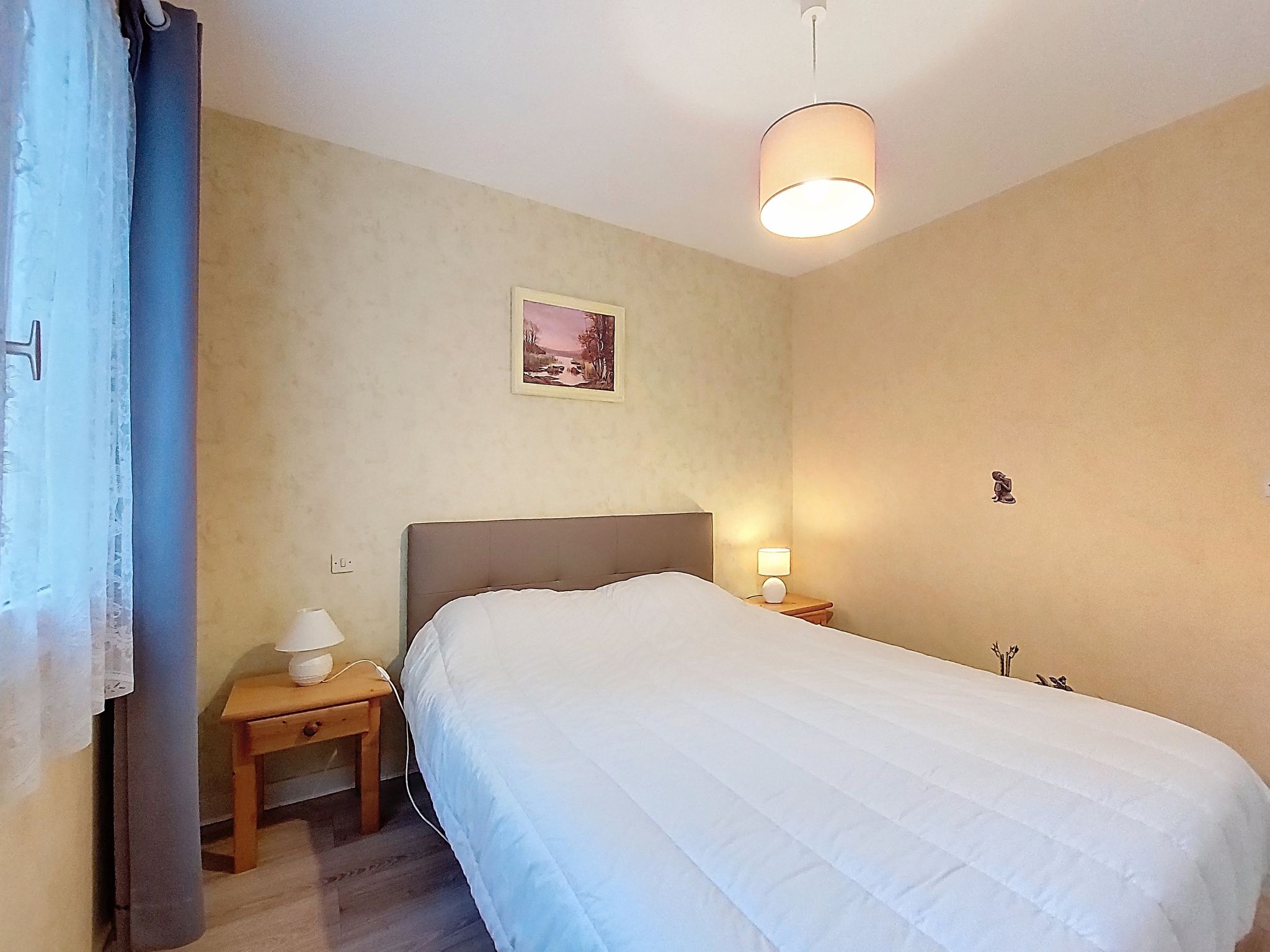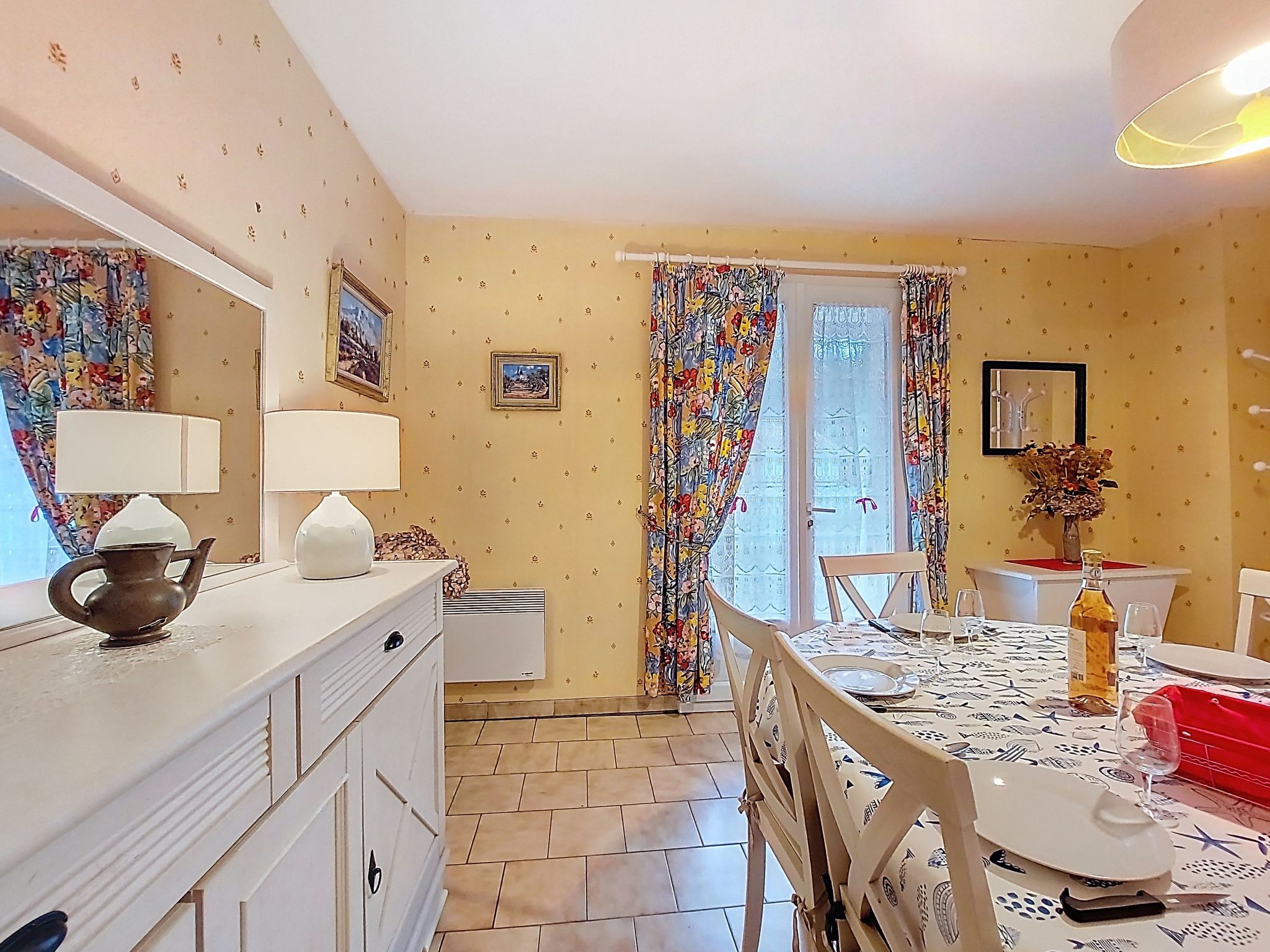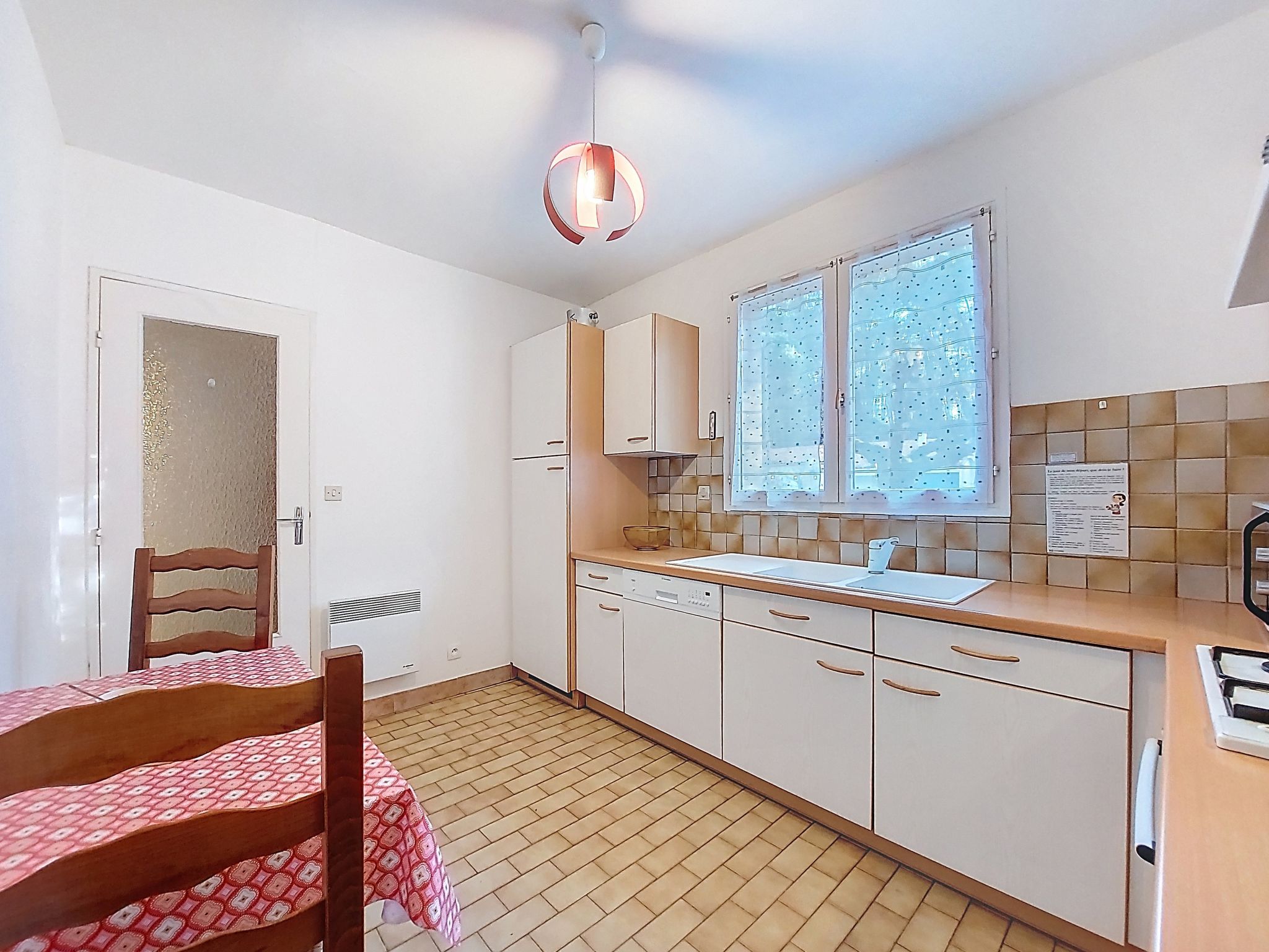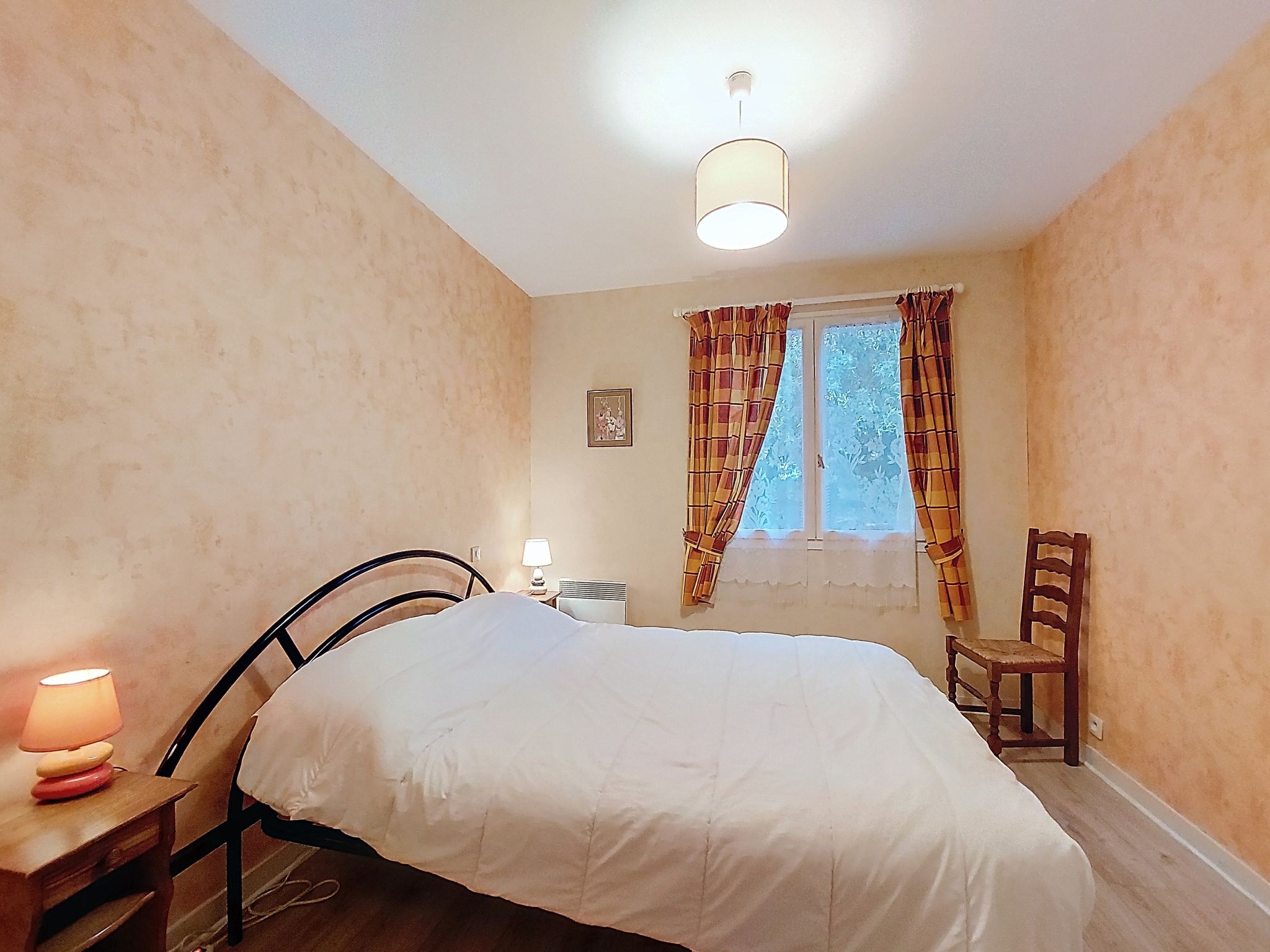 4-room house 75 m2. Comfortable furnishings: living/dining room with TV (flat screen). Exit to the garden. 1 room with 1 french bed (1 x 160 cm, length 190 cm). 1 room with 1 french bed (1 x 140 cm, length 190 cm). 1 room with 2 beds (90 cm, length 190 cm). Kitchen (4 hot plates, oven, dishwasher, toaster, kettle, microwave, freezer, electric coffee machine, Capsules for coffee machine (Senseo) extra). Shower, sep. WC. Electric heating, air-conditioning. Facilities: washing machine, iron, hair dryer. Internet (WiFi, free). Parking (fenced 1 car). Please note: maximum 1 pet/ dog allowed. Smoke alarm. Offer by a private individual according to Art. 155, IV of CGI.