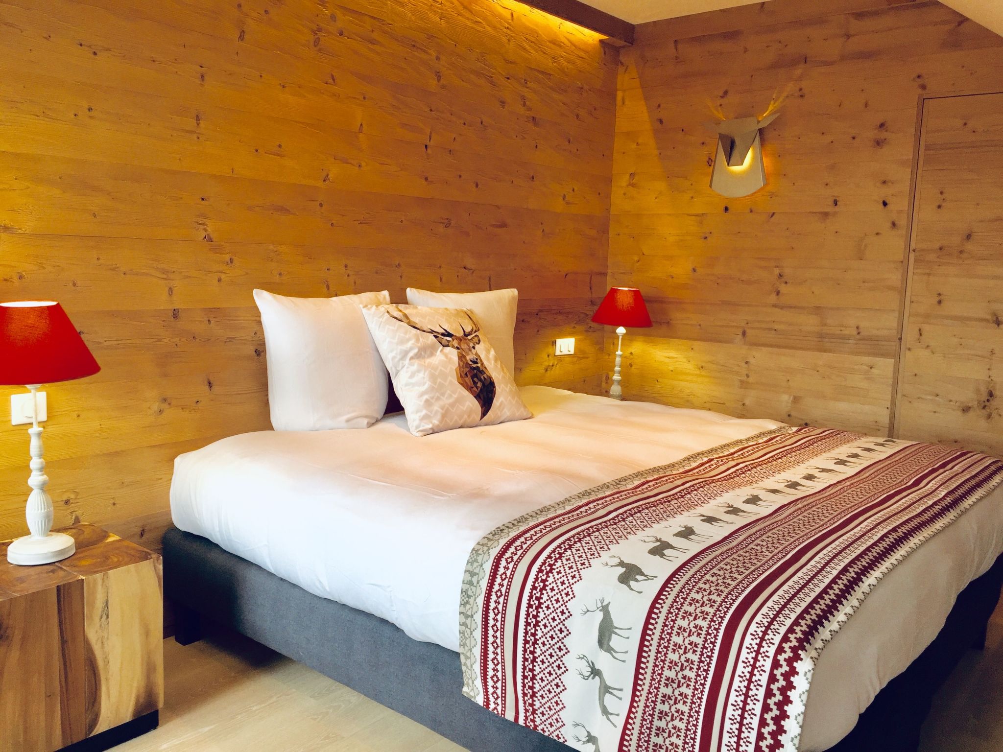 Whole chalet 140 m², top-of-the-range 4-star classification: Ground floor: Fully-equipped open-plan kitchen. A large living room with a fireplace A dining room with a view of the lake. WI-FI Bedroom 1 "Chouettes" with double bed 140x200 and en-suite shower room (shower-vacuum-dryer-towels...).Upstairs: -Room 2 with double bed 160x200, TV and DVD player and large Dressing room -Room 3 with double bed 180x200 or 2 twin beds 90x200 (on request) - lake view -On the mezzanine: 3 beds 90x200 for teenagers and screen with DVD player - games-books - lake view For babies: cot, high chair and wooden playpen available (on request) The BEDDING in all rooms is NEW and VERY HIGH-END. -1 bathroom with basin, bath, towel rail, WC, washing machine, tumble dryer, hairdryer, magnifying mirror Relaxation area: -A large SAUNA -An outdoor area with sun loungers (two sunny terraces) Facilities: -Fully equipped open-plan kitchen: 2 coffee makers (classic and Senséo) 1 teapot 1 toaster Crockery/cutlery 2 ovens : classic and microwave 1 ceramic hob 1 extractor fan 1 dishwasher 1 fridge/freezer 1 Alpage raclette machine and a classic raclette machine 2 fondue machines (1 traditional fondue pot and 1 electric fondue machine) -Dining room: 1 table seating 9 people 1 high chair for babies -Living room: 2 large, cosy, top-of-the-range sofas A fireplace (wood-burning) 1 full-connected HD television -Wifi -garage/ski room/ski boot dryer.