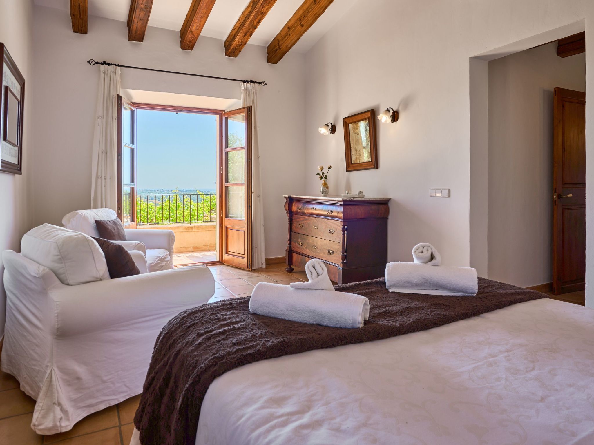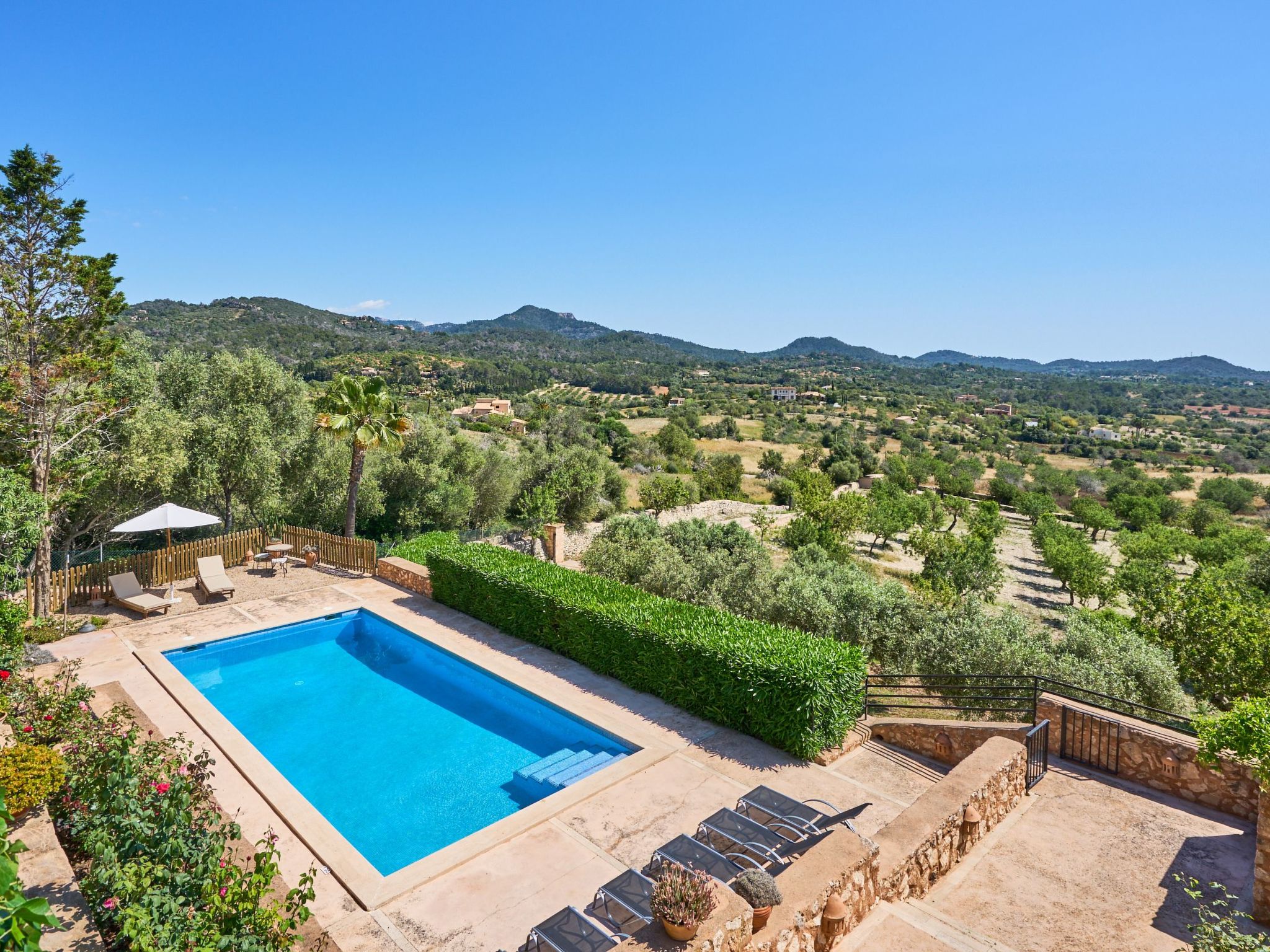 Fantastic finca for 8 people. Wonderful luxury holiday home in the countryside with incredible views. With 4 bedrooms and 3 bathrooms. Elegantly furnished. Wonderful private pool. Grassy areas. Suitable for children.