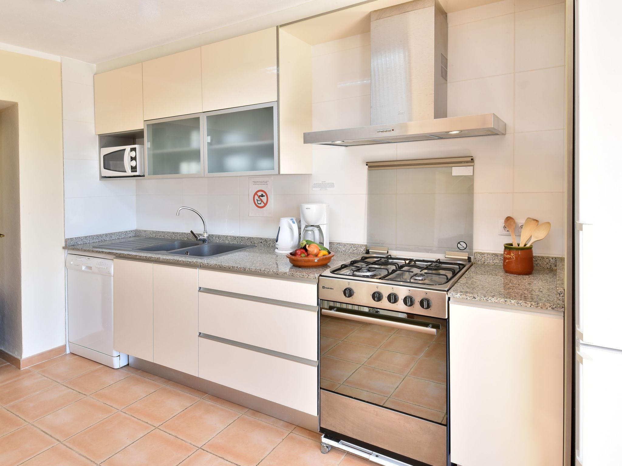 Main house: The living room, dining room and kitchen with breakfast nook are located on the ground floor. All rooms have access to the terrace. On this floor there is also a double bedroom with en-suite shower room and a separate shower room next to the kitchen. An internal staircase leads to the upper floor with two bedrooms: one with a double bed and the other with two single beds. One of these bedrooms has access to the balcony/terrace above the entrance. These two bedrooms share a bathroom.