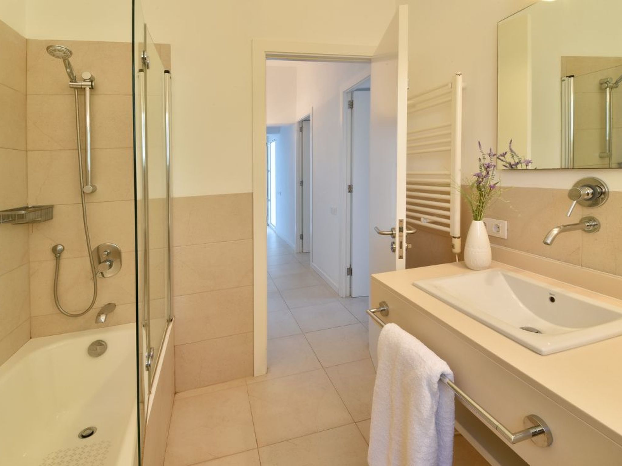 There are also supermarkets, shops and boutiques nearby, as well as a diving centre. The golf course "Vall D'Or Golf" is less than 5 km away and the well-known tourist resort of Cala D'Or, the picturesque fishing village of Porto Petro and Felanitx with its colourful Sunday market can be reached in 5 - 10 minutes by car.