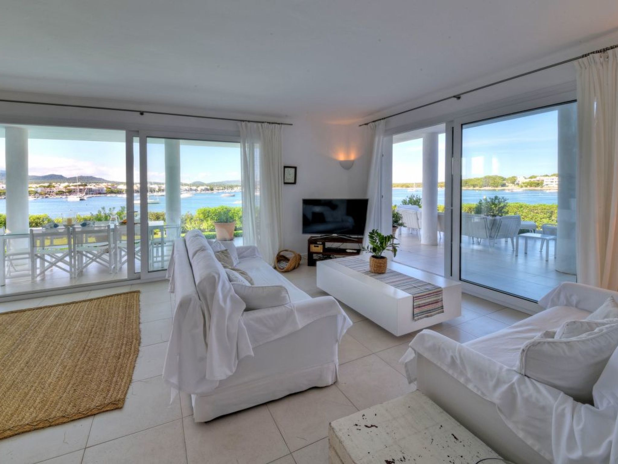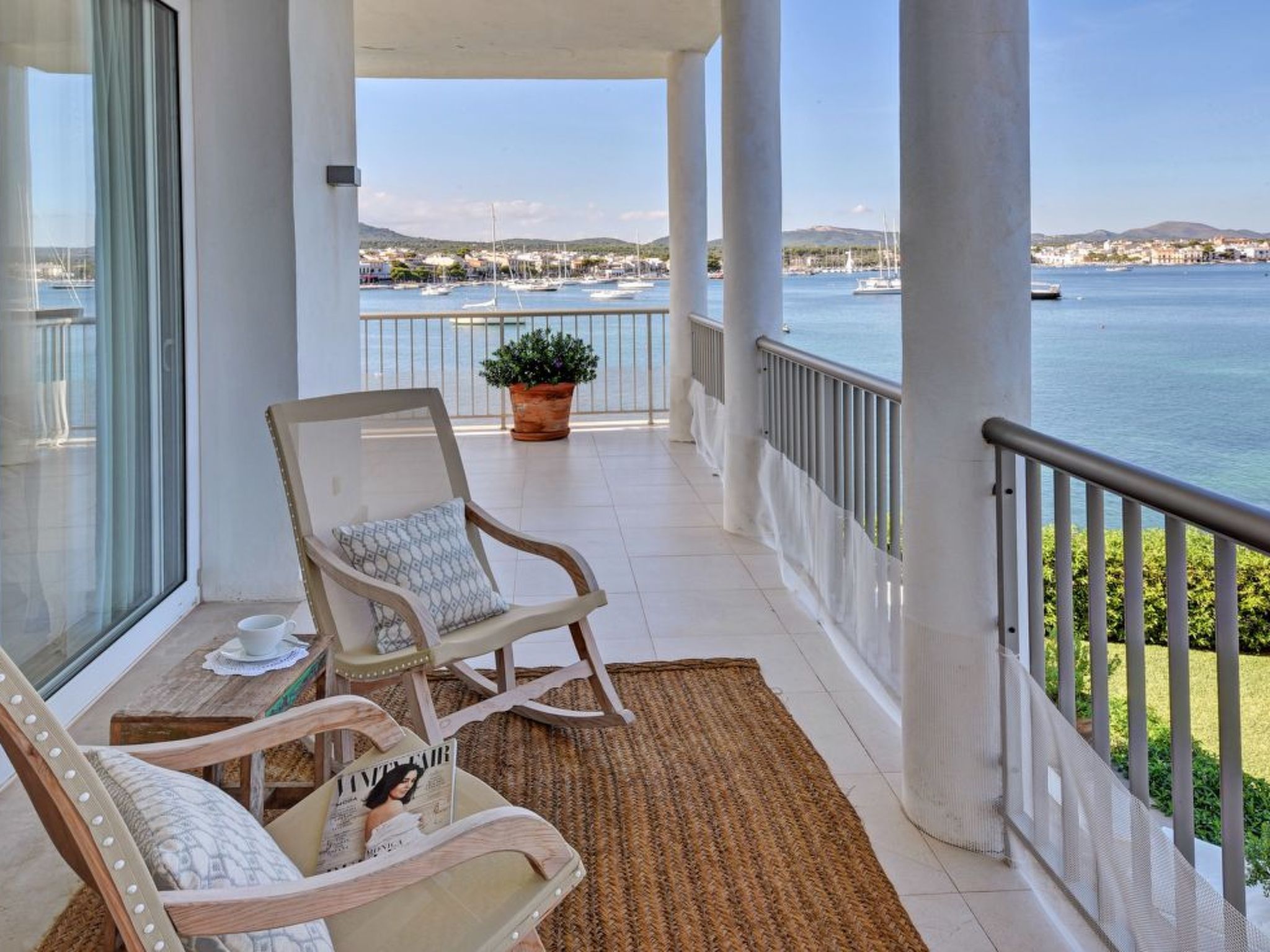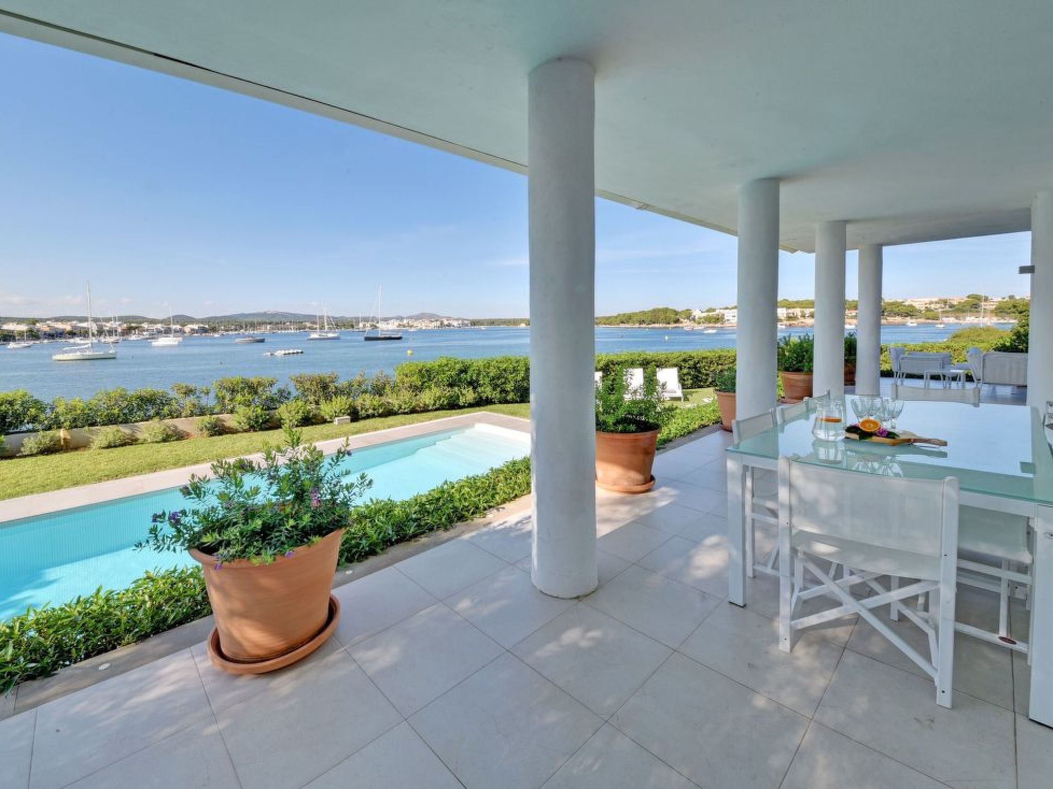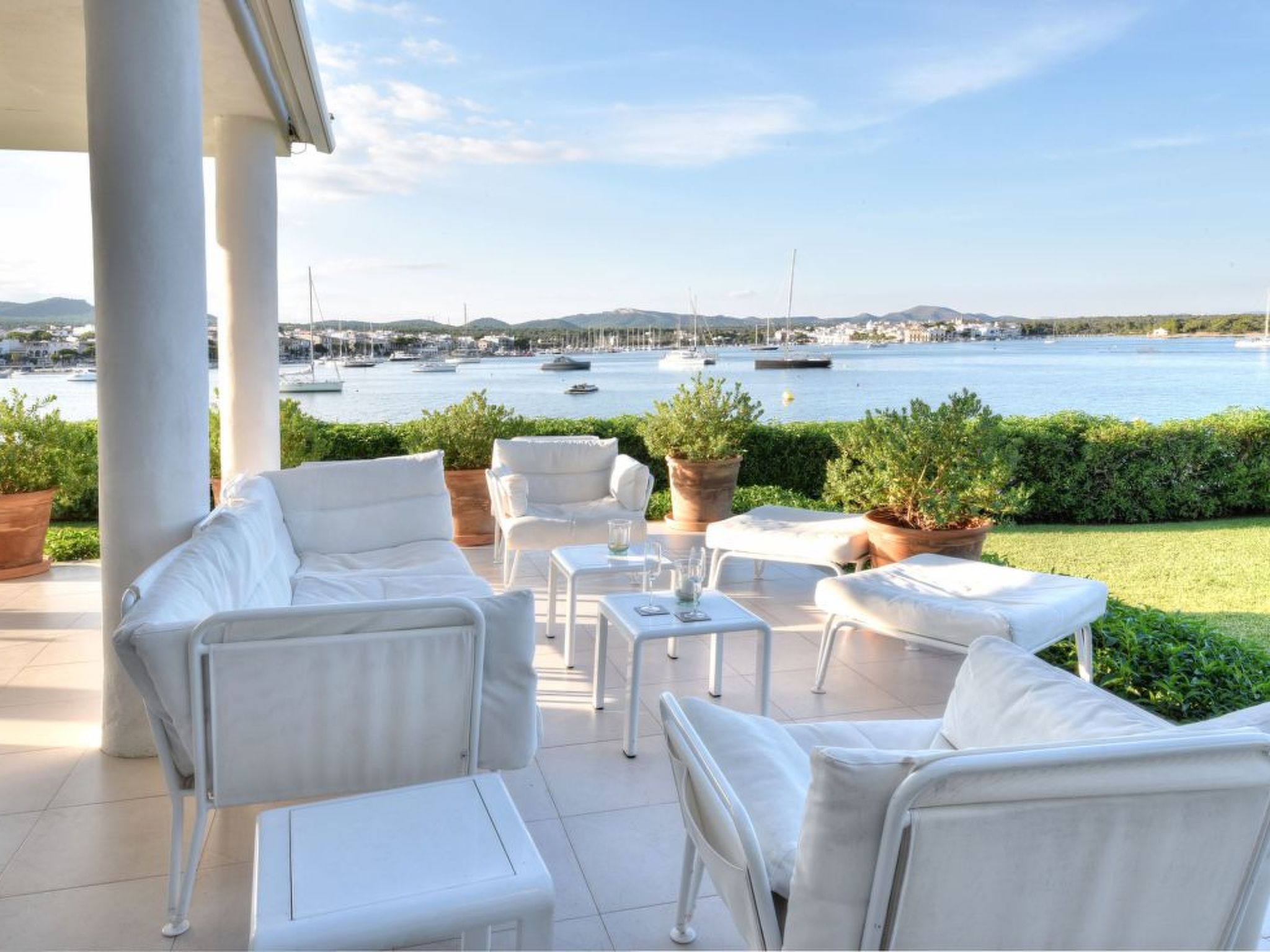 This luxury villa is situated in an unbeatable location on the seafront with fantastic views over the harbour of the picturesque fishing village of Porto Colom. The house offers a panoramic view from the harbour over the small sandy beaches of S'Arenal to the typical colourful fishermen's houses. Porto Colom is a charming, quiet fishing village, known for its unique and large natural inland harbour, where you can still watch the fishermen mending their nets on the pier. There are many excellent restaurants and bars along the harbour promenade, all with fantastic views of the harbour. Various sandy bays can be reached in a few minutes by car.