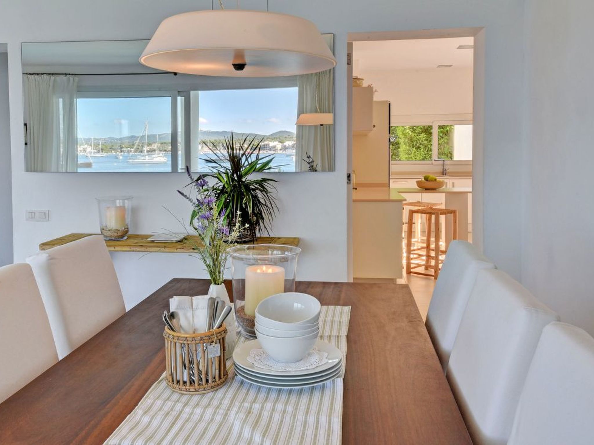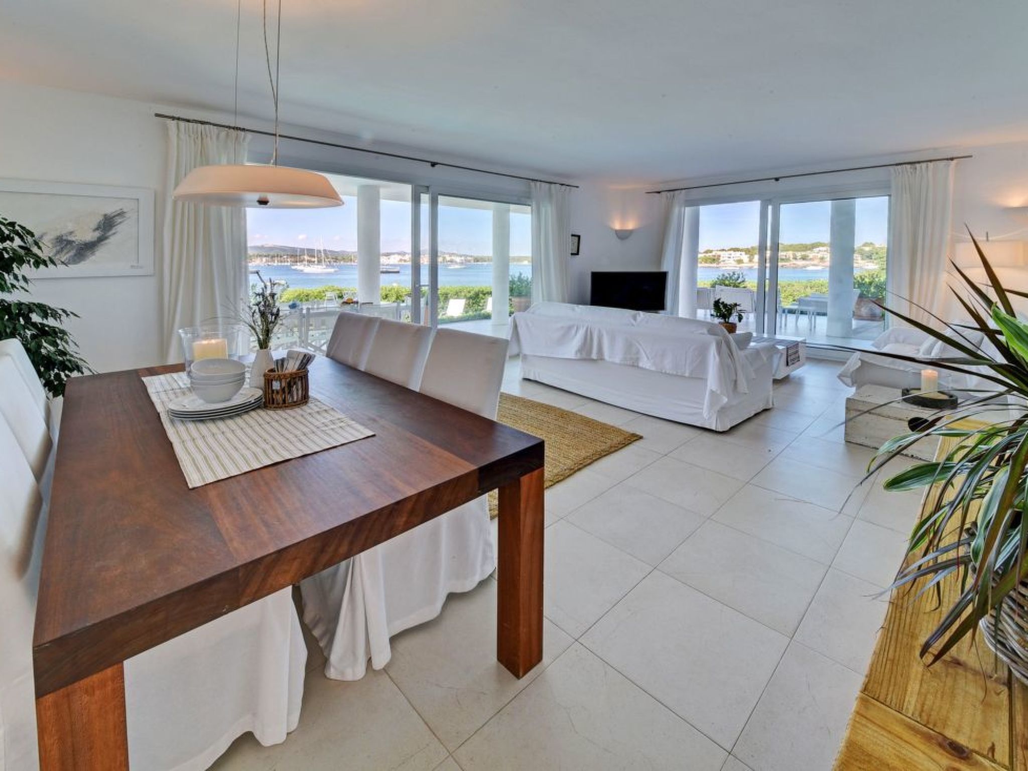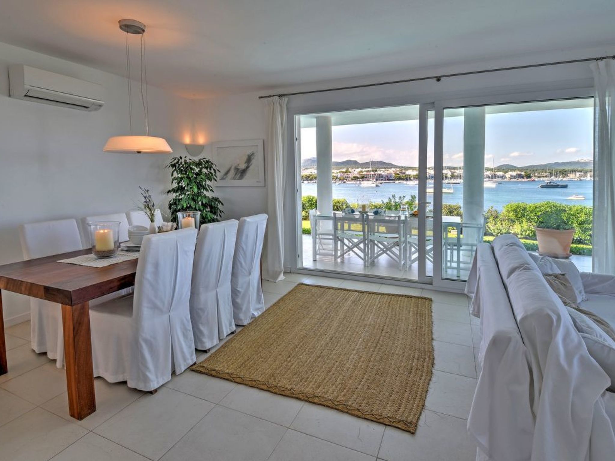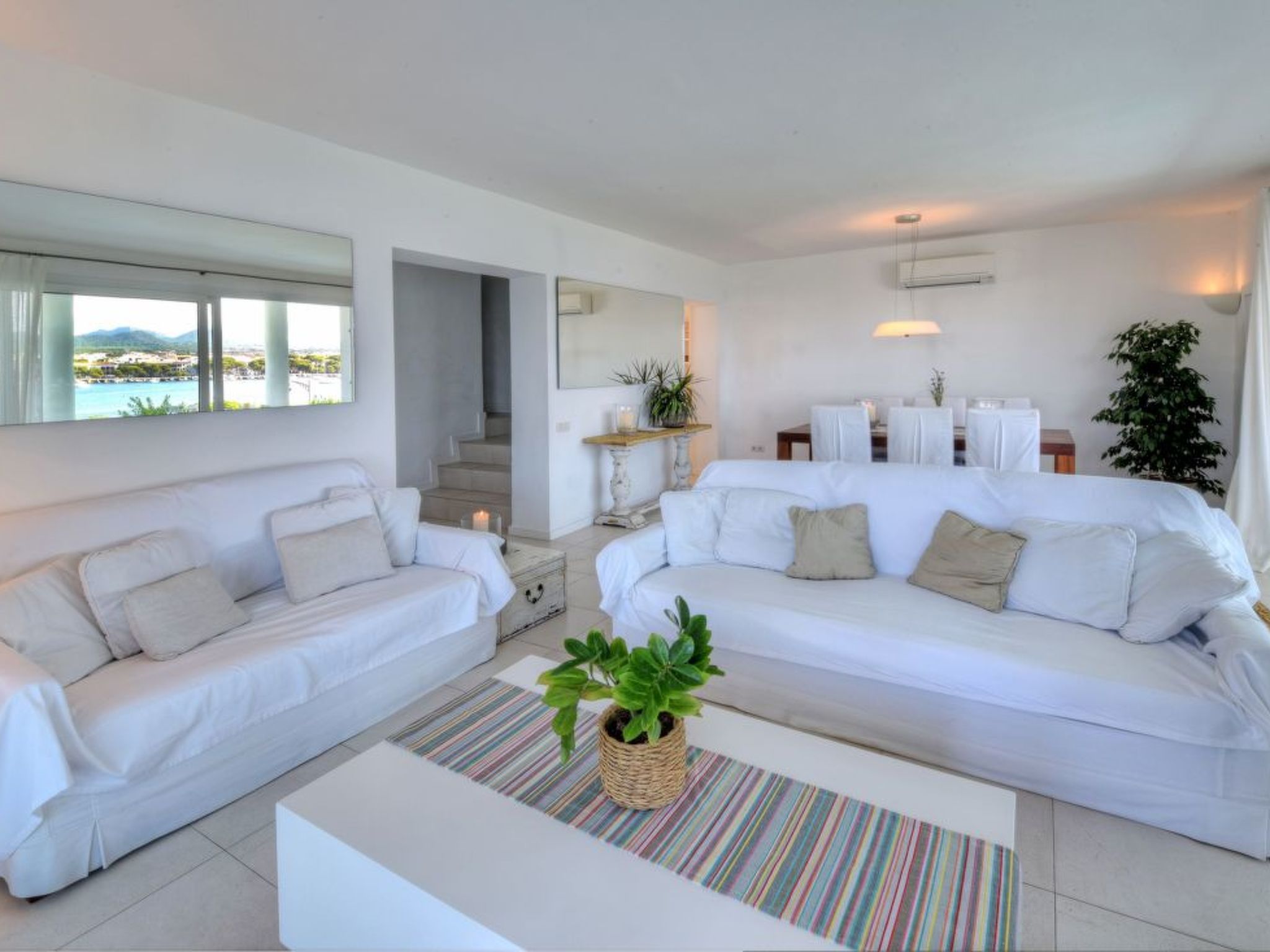 This luxury villa is situated in an unbeatable location on the seafront with fantastic views over the harbour of the picturesque fishing village of Porto Colom. The house offers a panoramic view from the harbour over the small sandy beaches of S'Arenal to the typical colourful fishermen's houses. Porto Colom is a charming, quiet fishing village, known for its unique and large natural inland harbour, where you can still watch the fishermen mending their nets on the pier. There are many excellent restaurants and bars along the harbour promenade, all with fantastic views of the harbour. Various sandy bays can be reached in a few minutes by car.