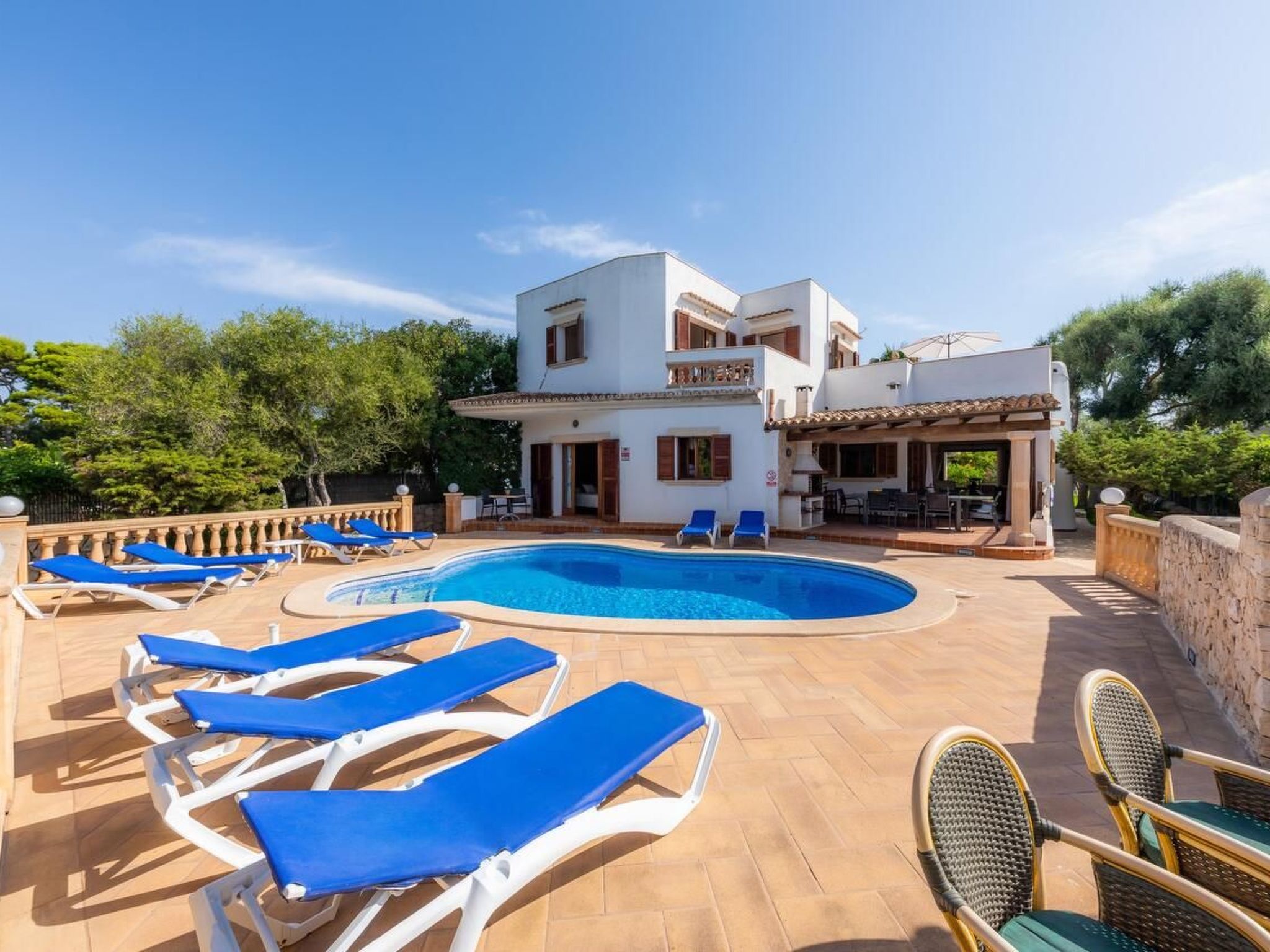 Marta is a beautiful villa located in a quiet residential area in Cala D'Or. The beaches of Cala Esmeralda and Cala Gran are only a few 100 metres away and can be reached on foot in 5 minutes, the centre of Cala D'Or is about a 10-minute walk away.