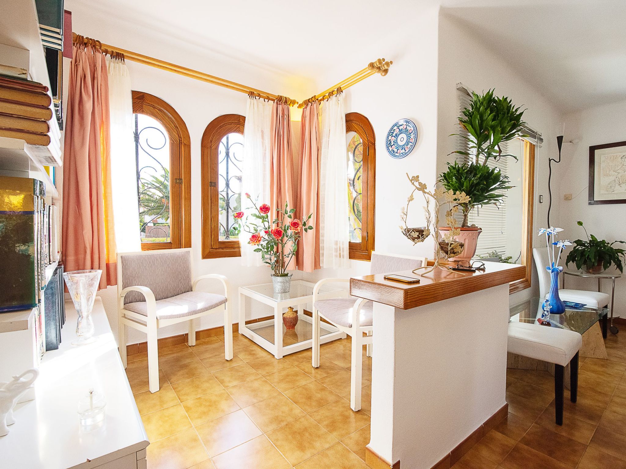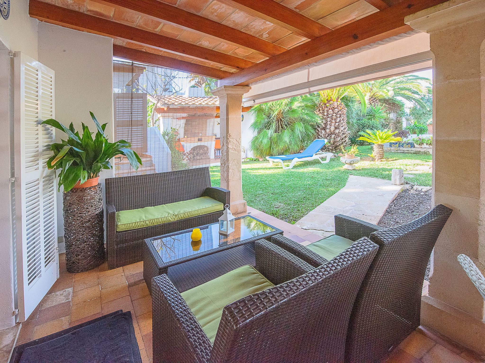 Behind the house there is a small garden with a covered barbecue area and a lovely veranda with a dining table and chill-out area.