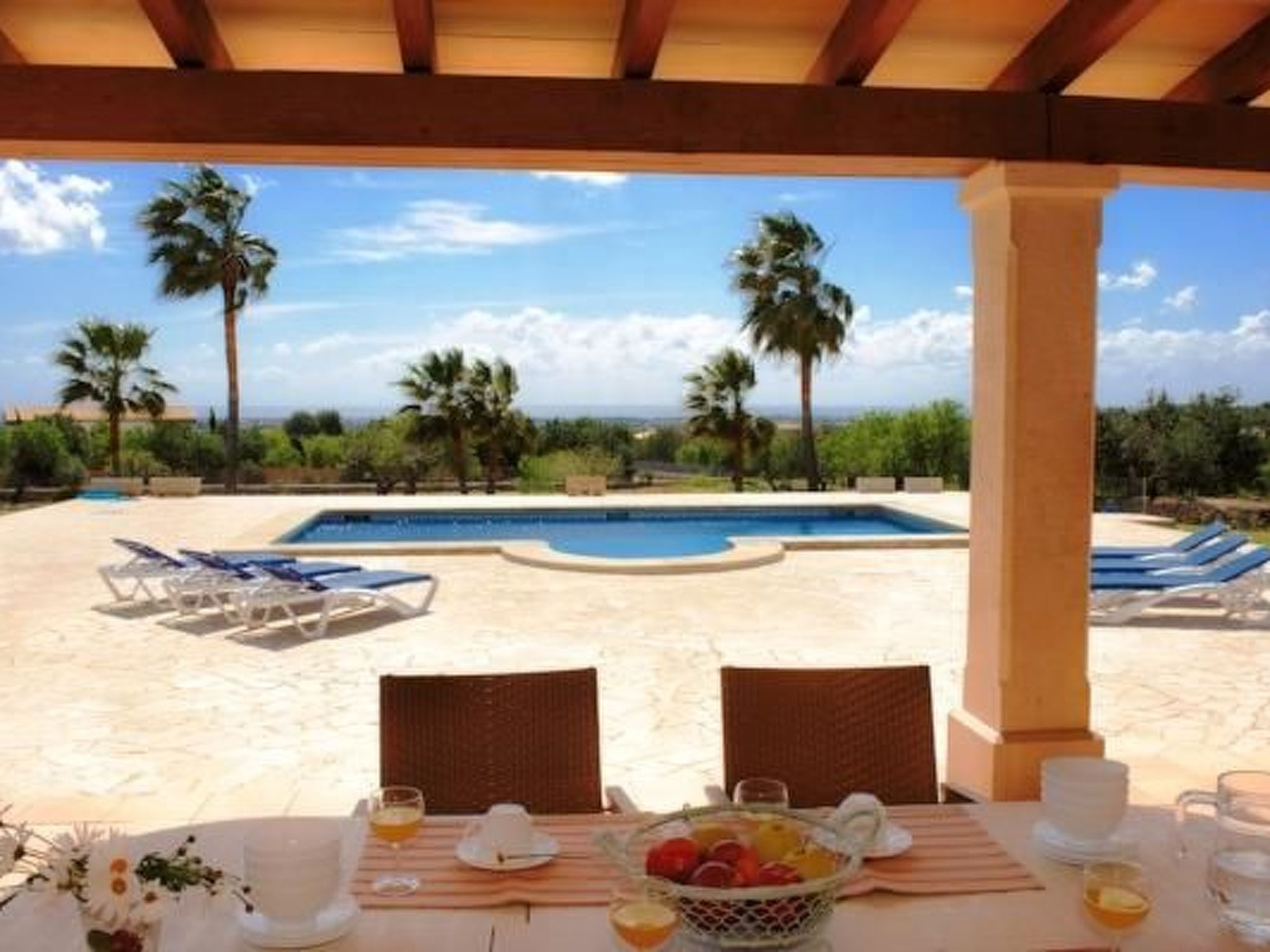 Location The finca is located between the two villages of Calonge and S'Horta and has fantastic views over the surrounding area to the sea. The beautiful sandy bay of Cala Sanau or the well-known holiday resort of Cala d'Or with its international marina, shopping streets and a huge sn of restaurants and bars can be reached in a few minutes by car.