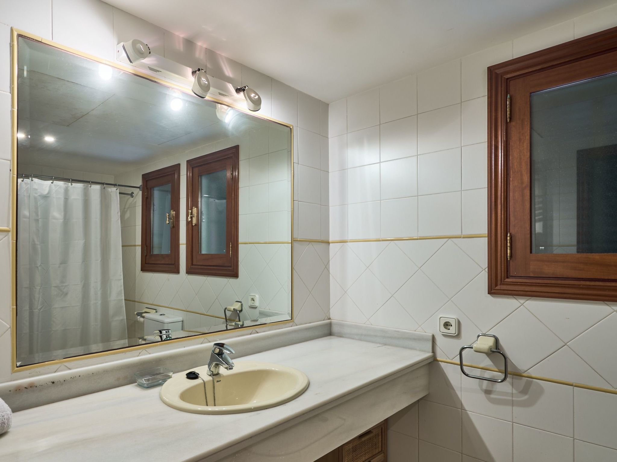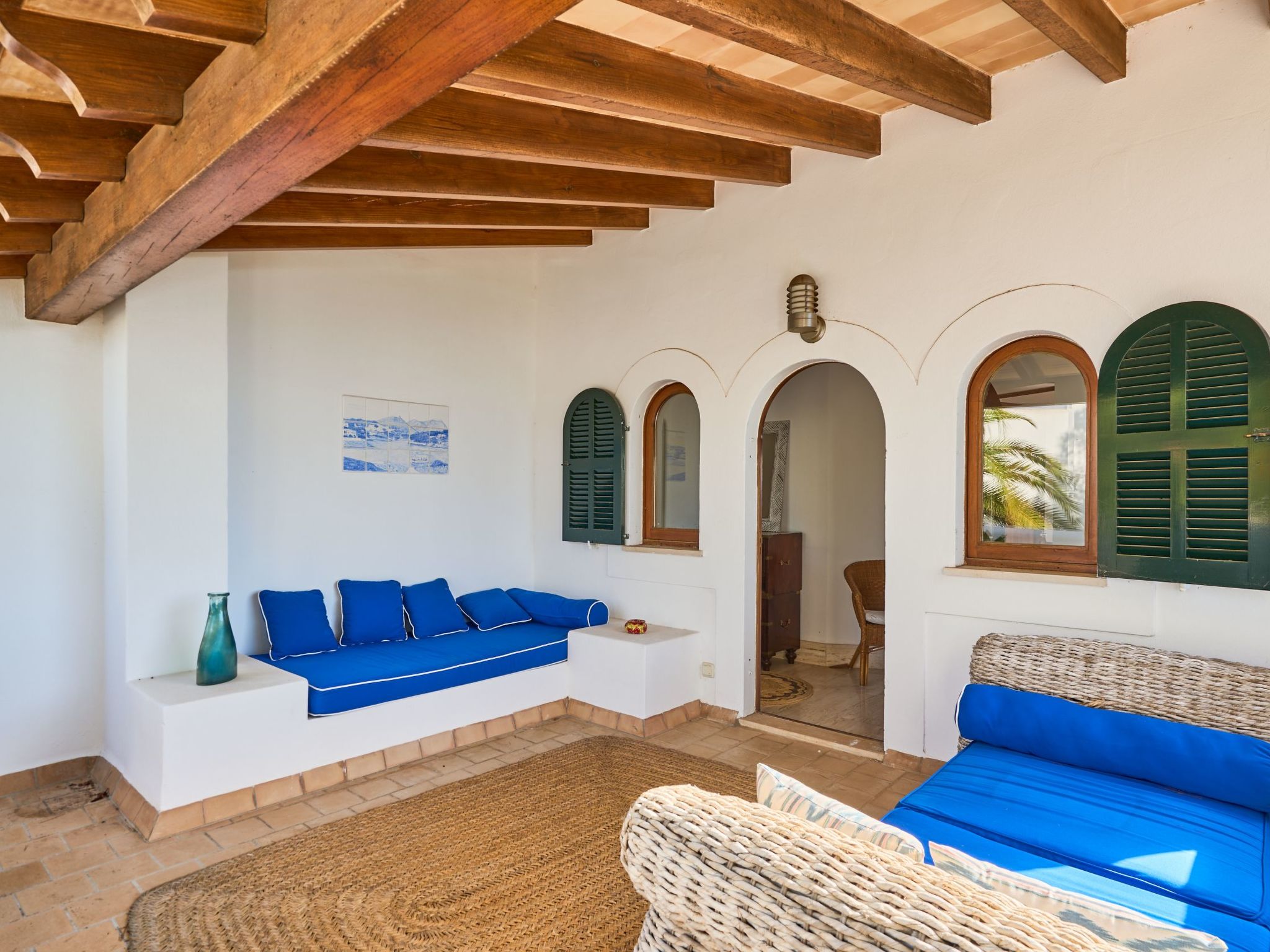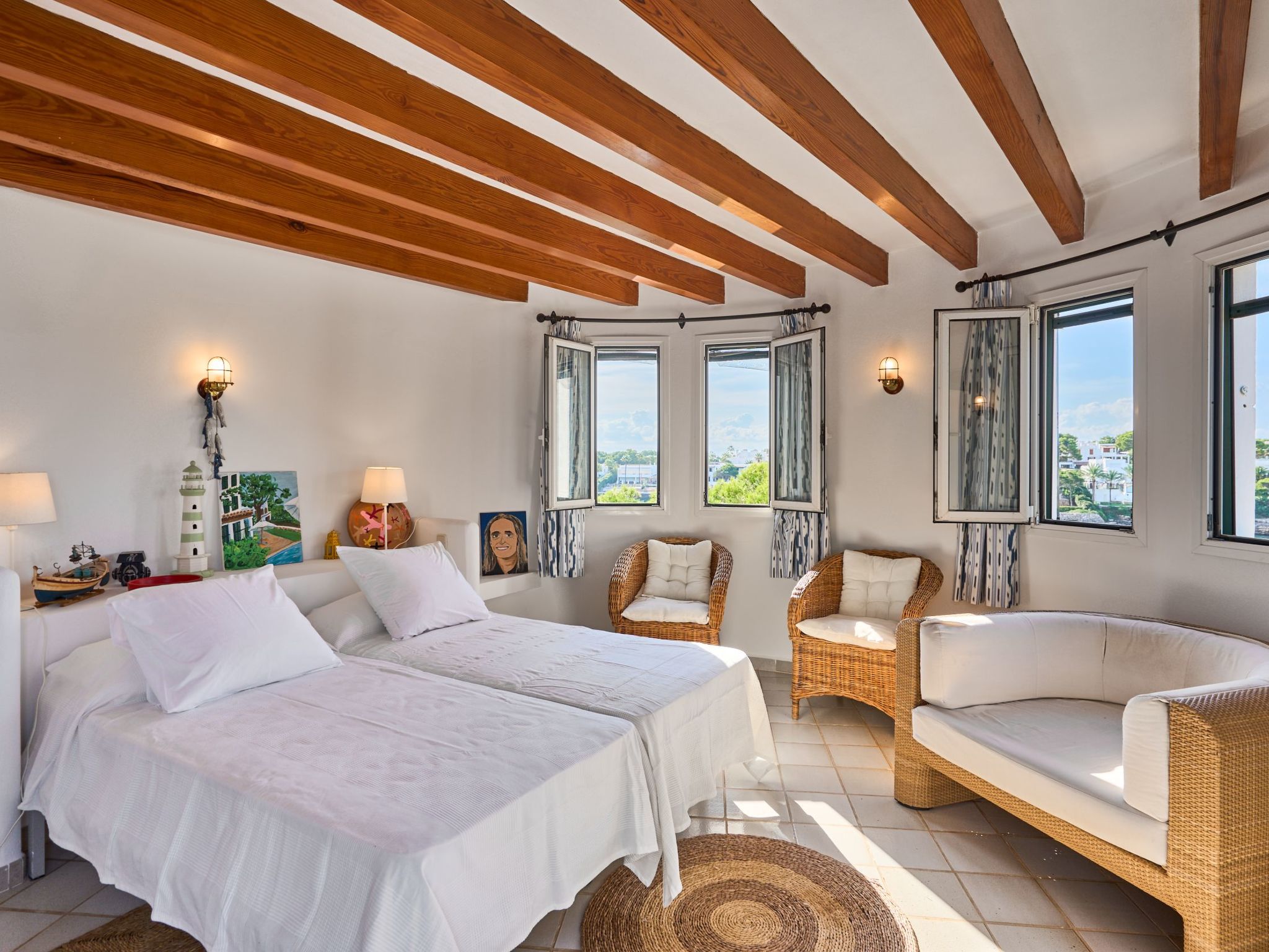 From this terrace, an external staircase leads to the top floor area with a terrace with spectacular views of the sea and Cala D'Or as well as a bedroom with two single beds and an en-suite bathroom.