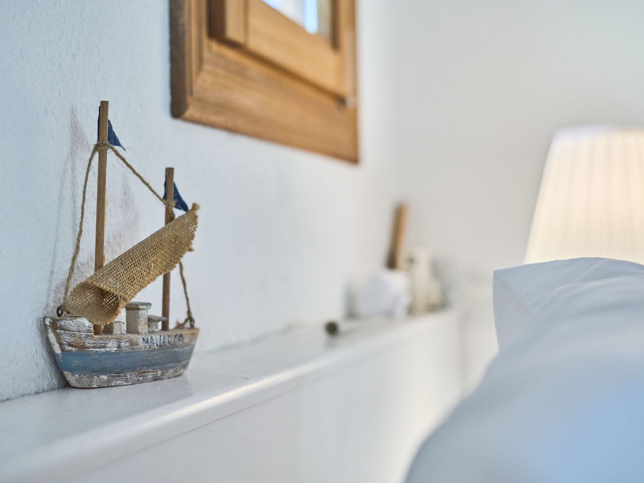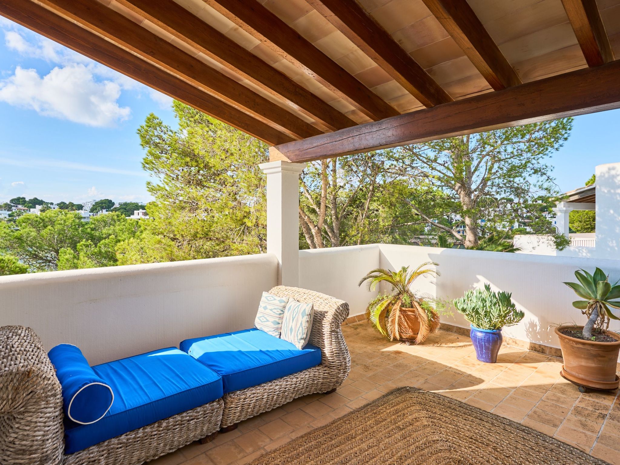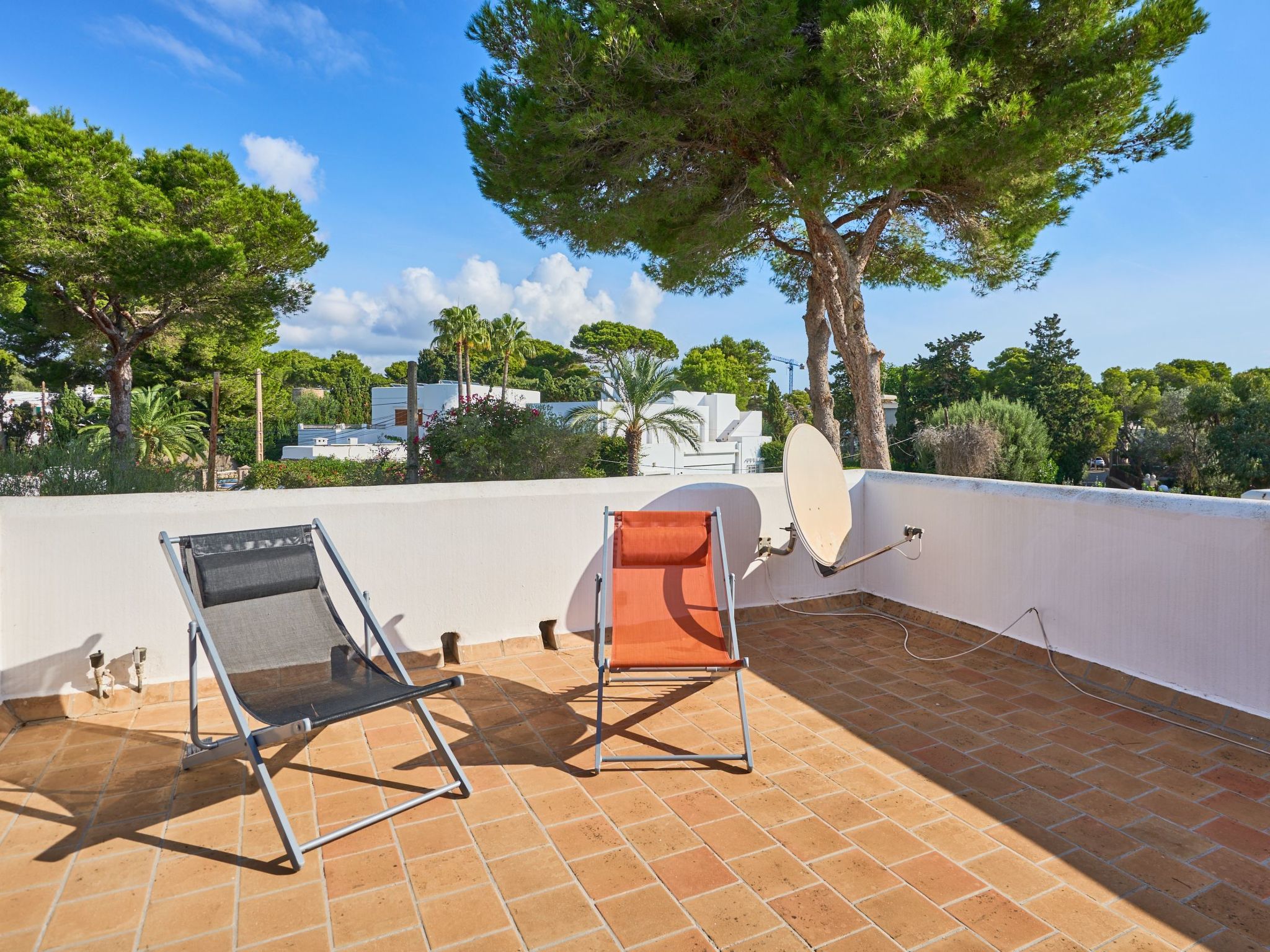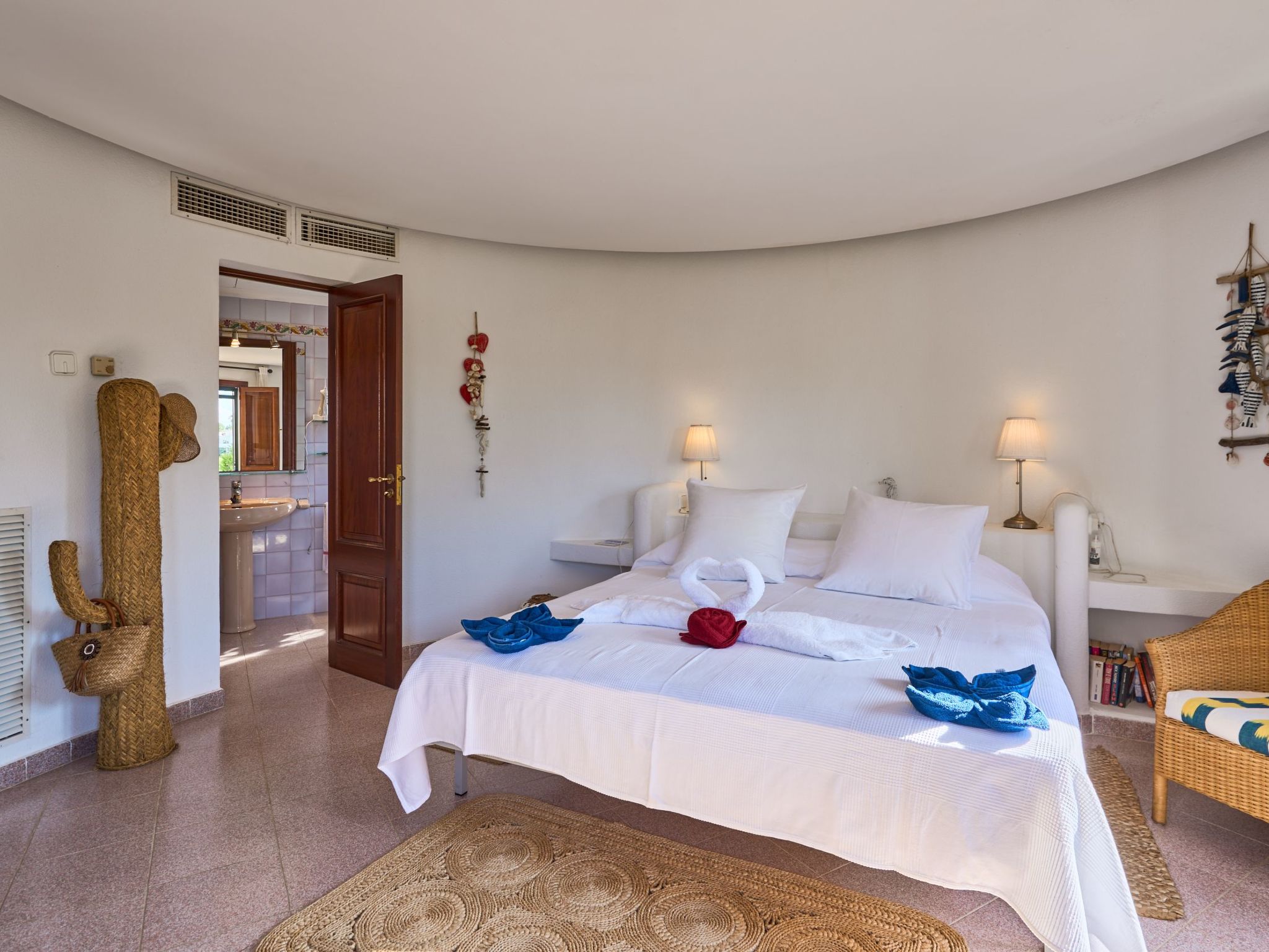 From this terrace, an external staircase leads to the top floor area with a terrace with spectacular views of the sea and Cala D'Or as well as a bedroom with two single beds and an en-suite bathroom.