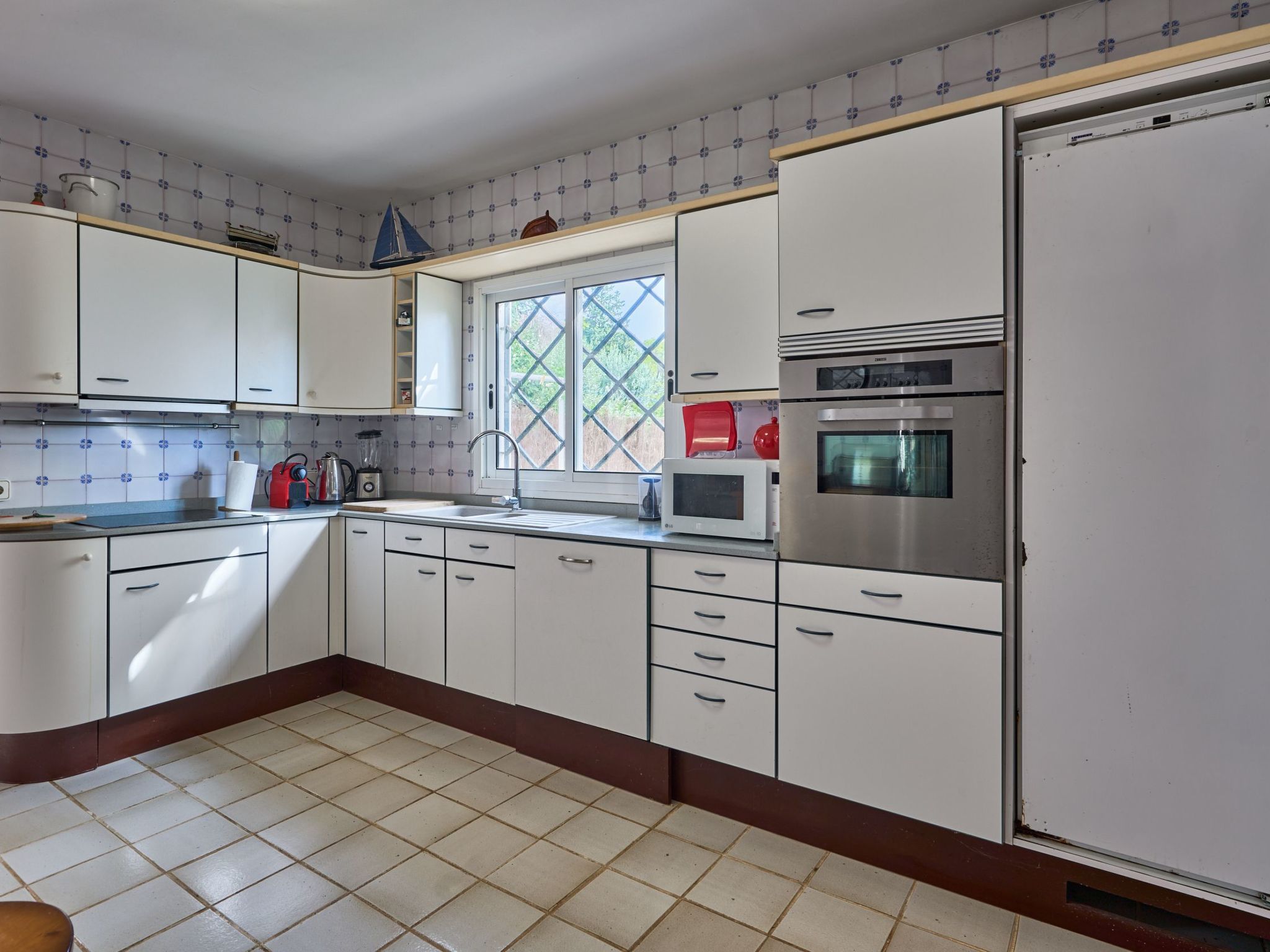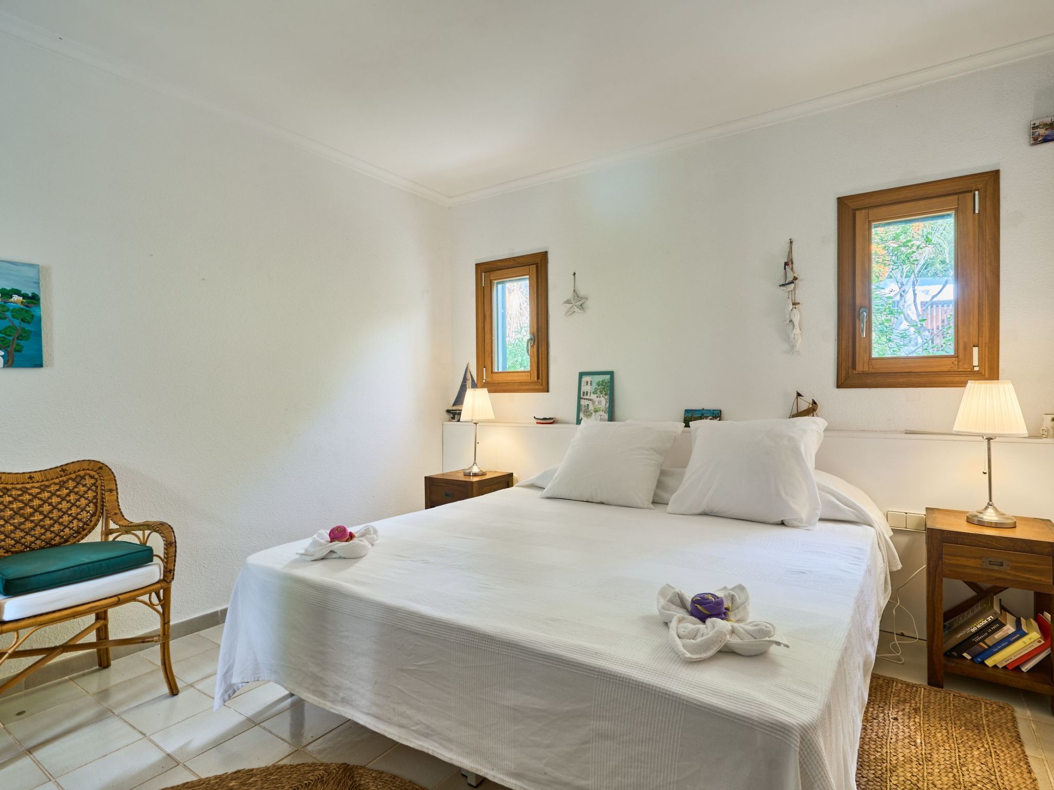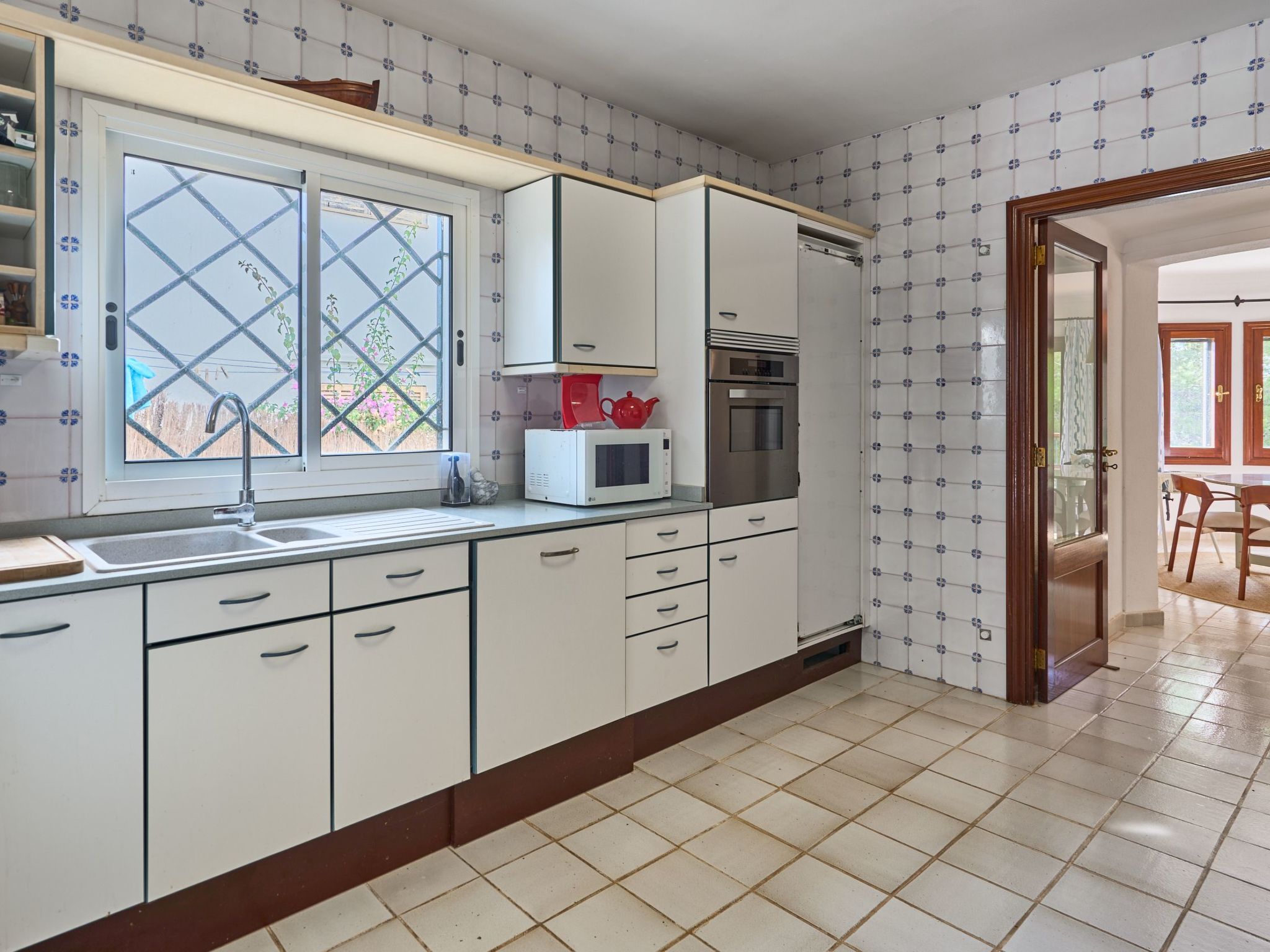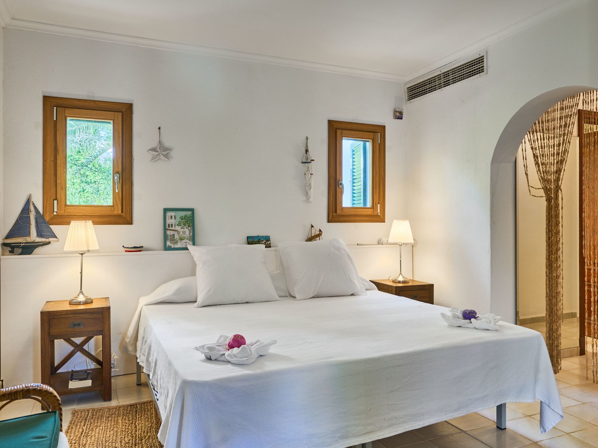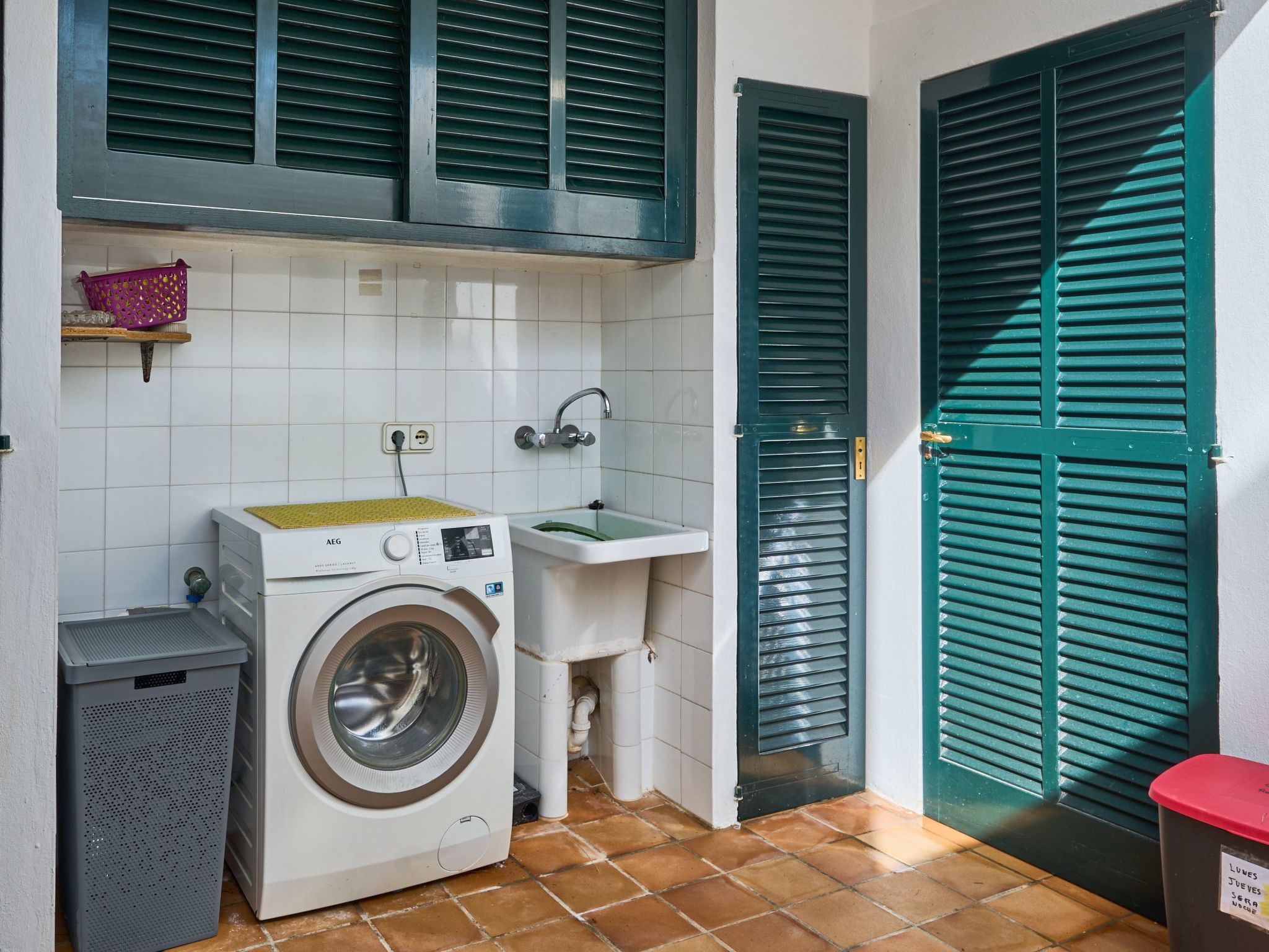 On the ground floor there is a living room with access to a veranda with a dining table and views of the pool and the sea. Also on this floor is a spacious kitchen with pantry and access to the utility room. The dining room, located between the kitchen and living room, also opens onto the veranda. A double bedroom with en-suite bathroom leads to a small terrace with sea views. There is a guest WC next to the kitchen.