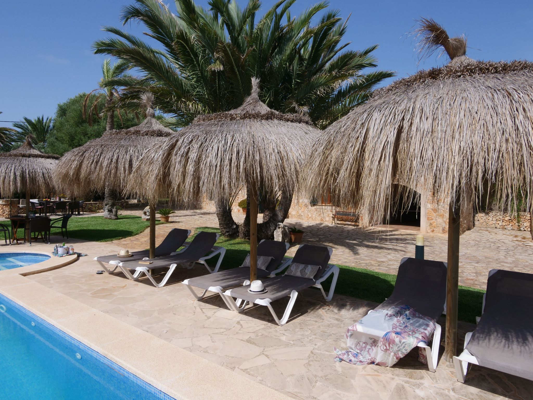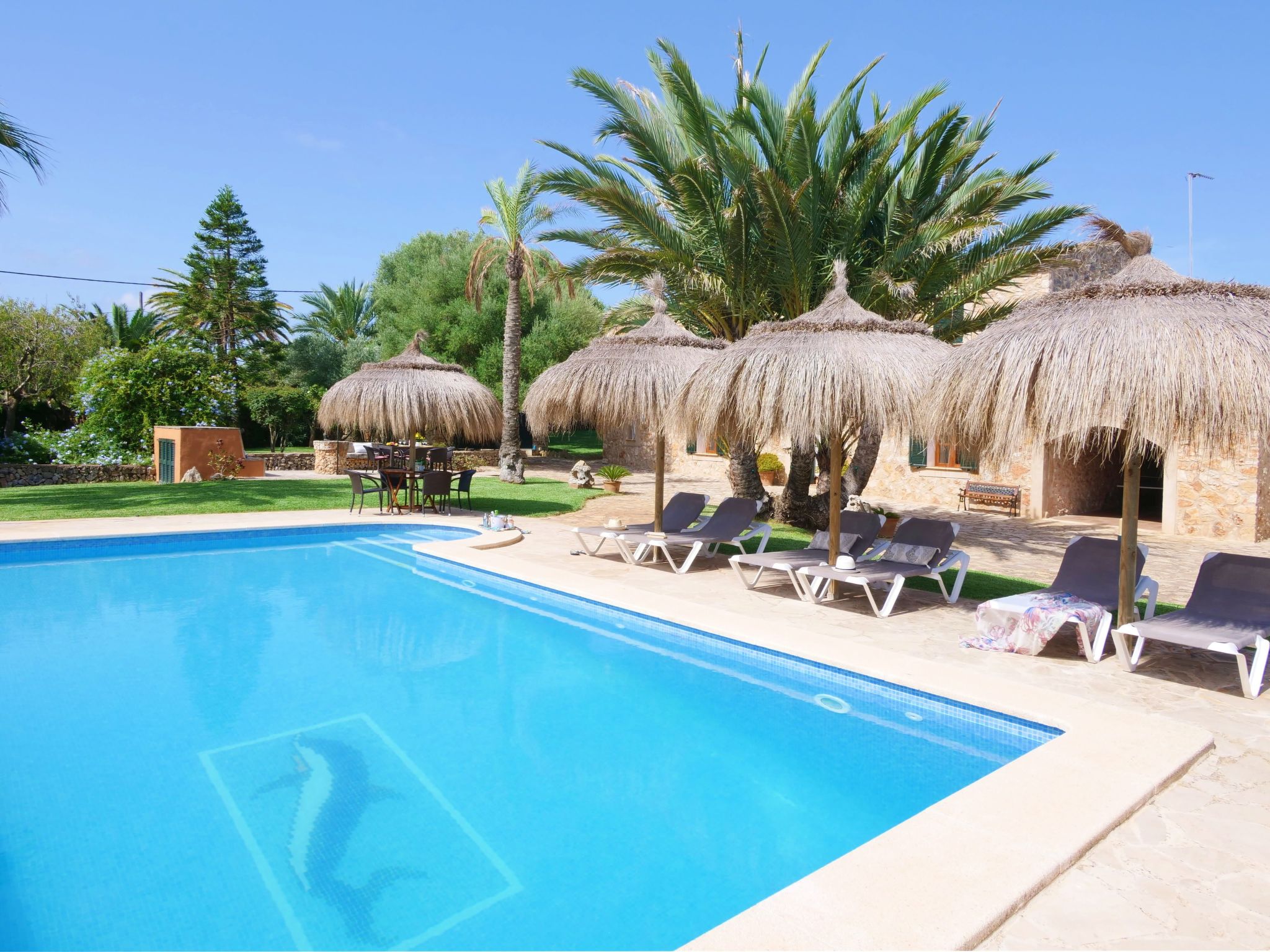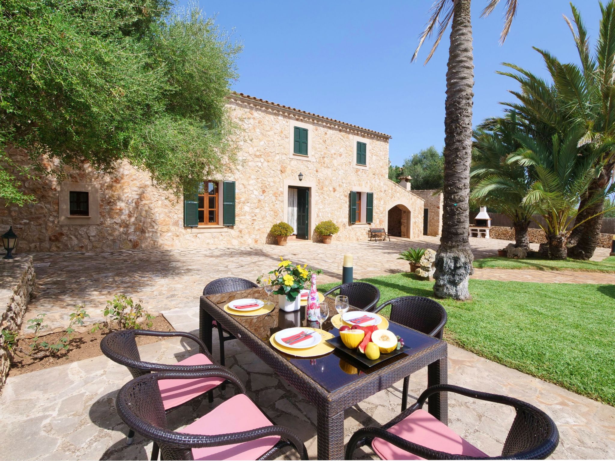 The Finca Corso de Shorta is a bit outside of the small, Mallorcan village of S'Horta with a few shops, bars and restaurants. In 5 minutes you can reach the beautiful sandy bay of Cala Sanau and the golf course Vall d´Or Golf is also nearby. The well-known holiday resort of Cala d´Or with shopping streets, bars, restaurants, nightlife and its glamorous marina is only approx. 5 km away. The beautiful 9 x 5 m pool with sun terrace invites you to cool off and sunbathe. Enjoy your meals outdoors on the cozy terrace - of course there is also an outside grill at your disposal.