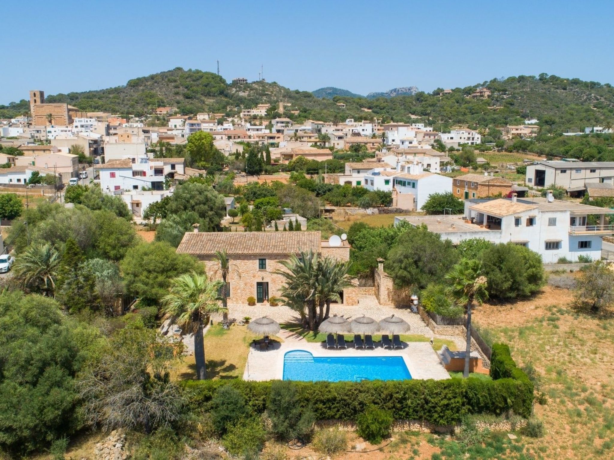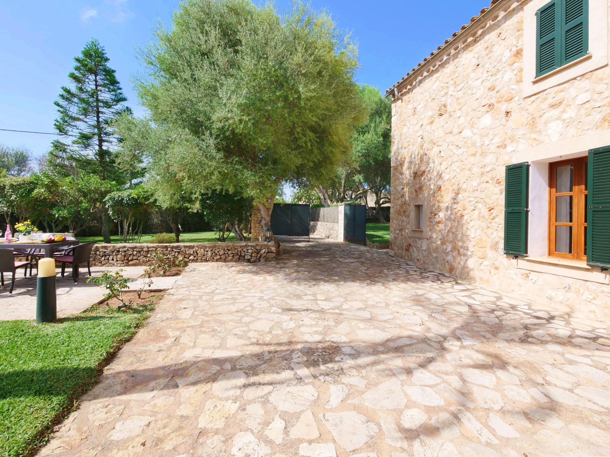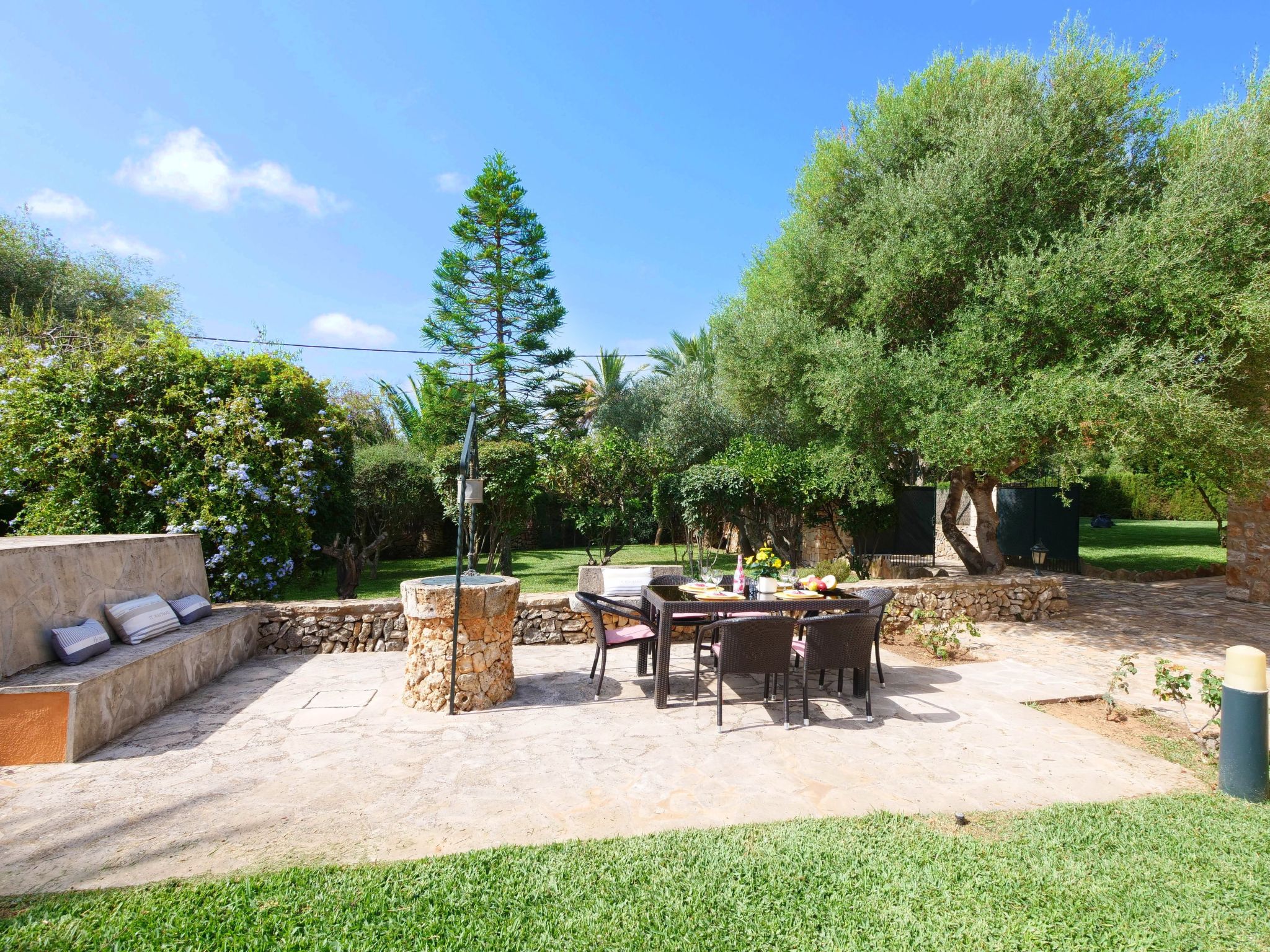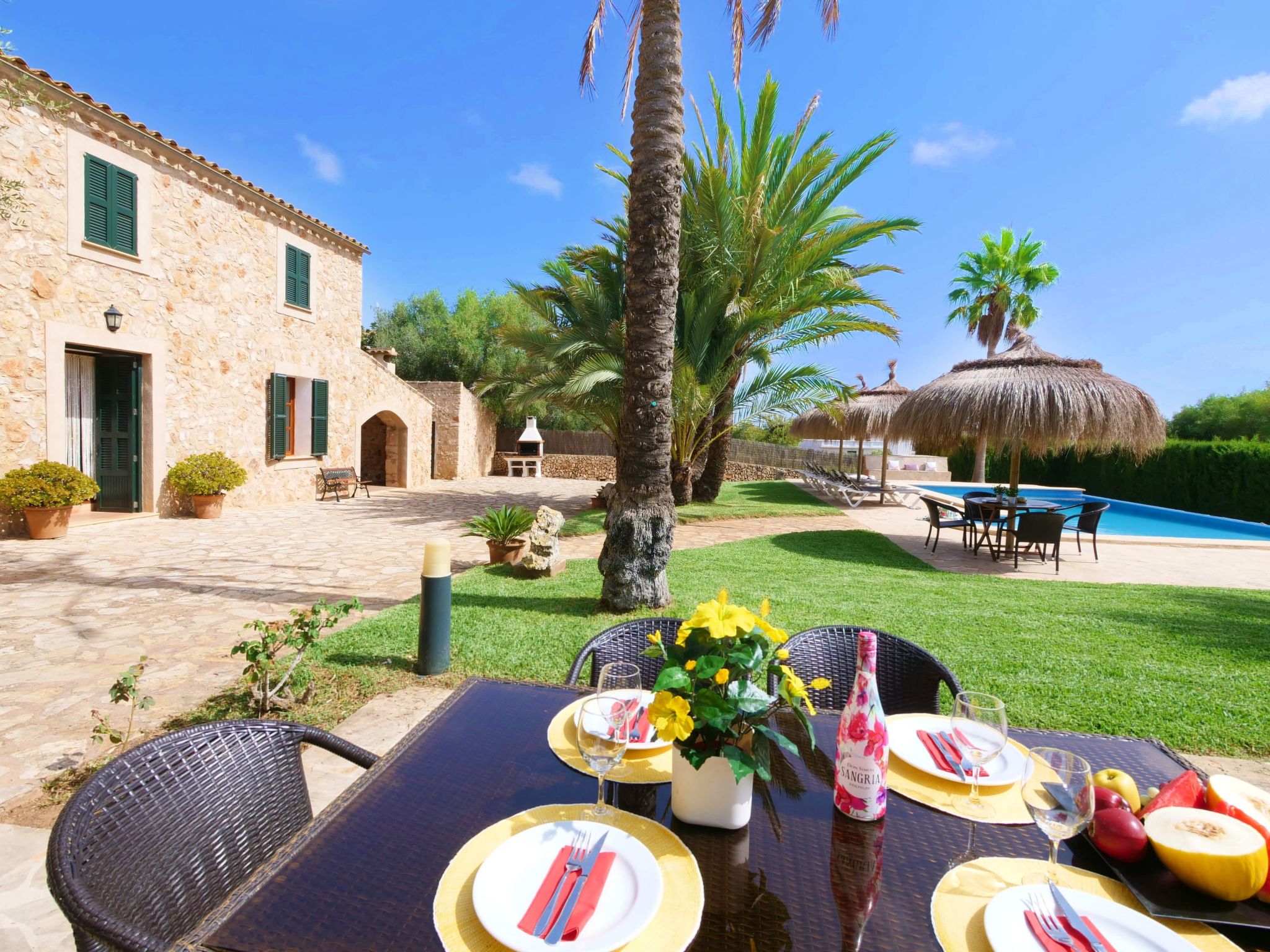 The Finca Corso de Shorta is a bit outside of the small, Mallorcan village of S'Horta with a few shops, bars and restaurants. In 5 minutes you can reach the beautiful sandy bay of Cala Sanau and the golf course Vall d´Or Golf is also nearby. The well-known holiday resort of Cala d´Or with shopping streets, bars, restaurants, nightlife and its glamorous marina is only approx. 5 km away. The beautiful 9 x 5 m pool with sun terrace invites you to cool off and sunbathe. Enjoy your meals outdoors on the cozy terrace - of course there is also an outside grill at your disposal.