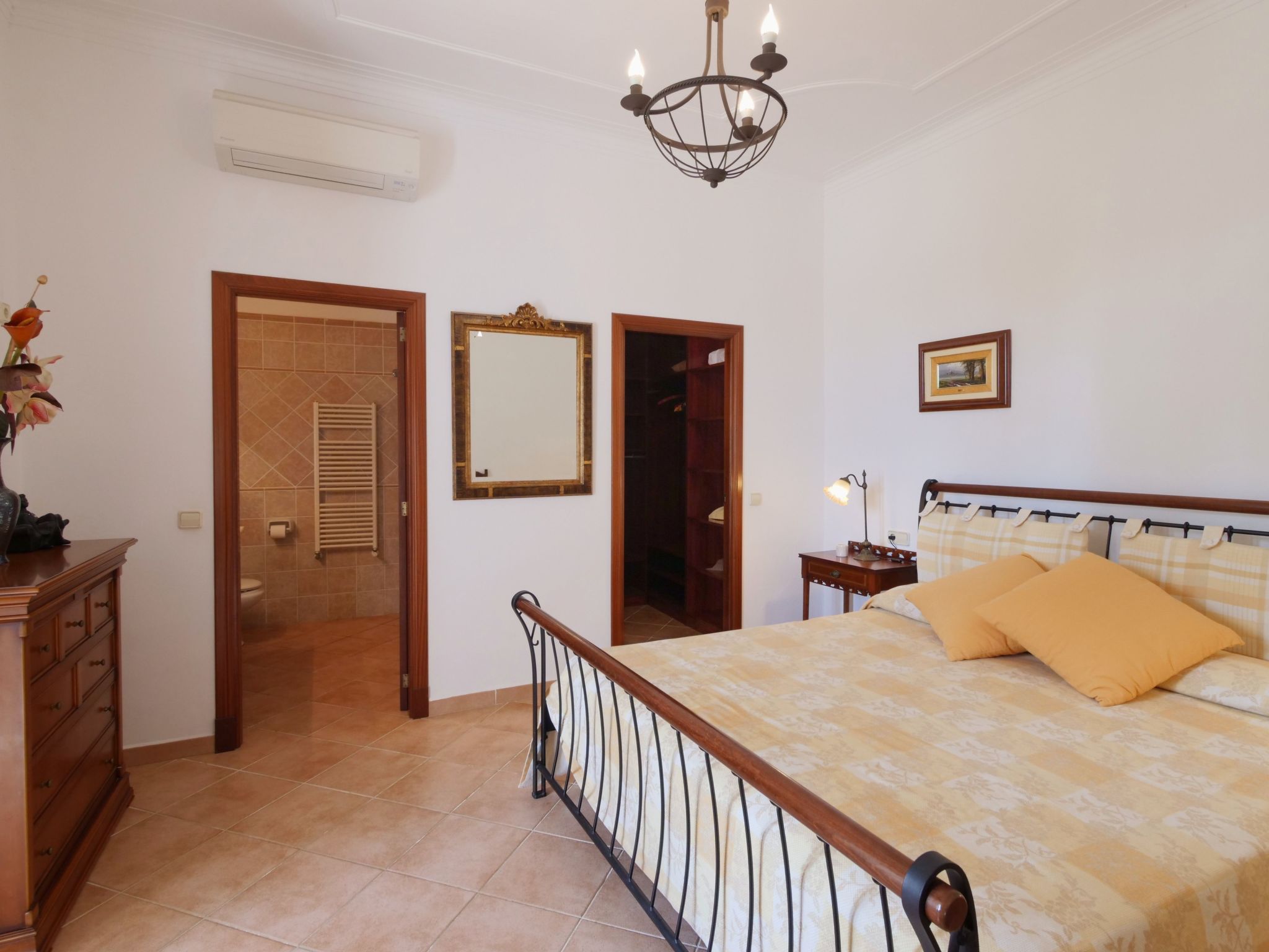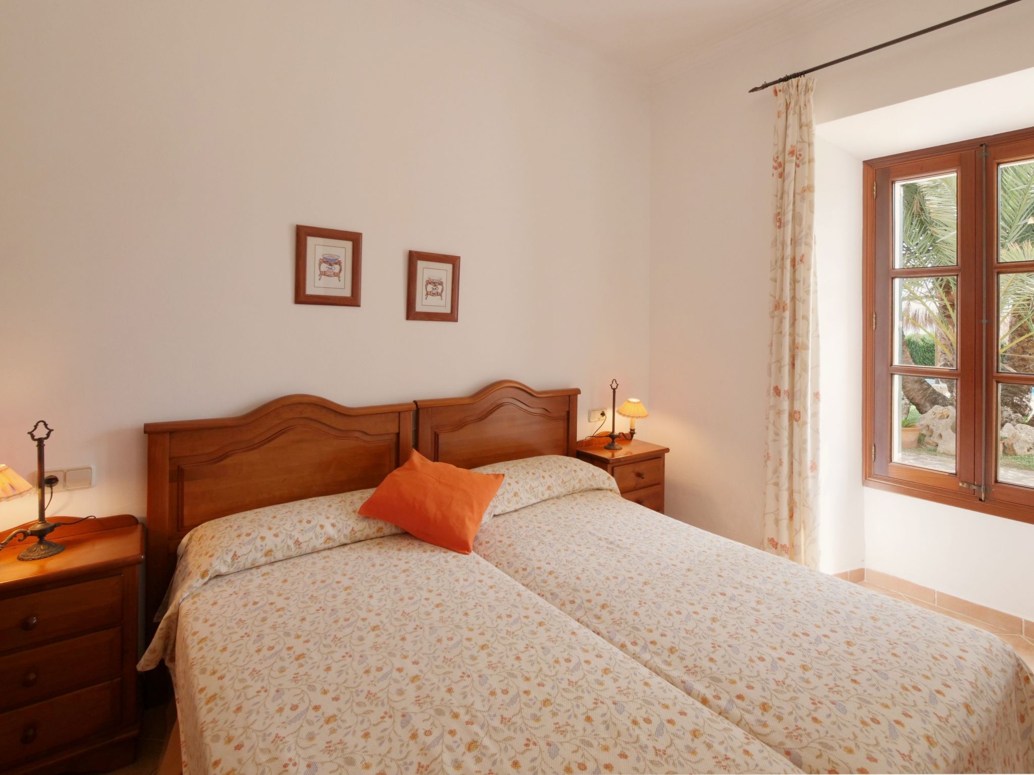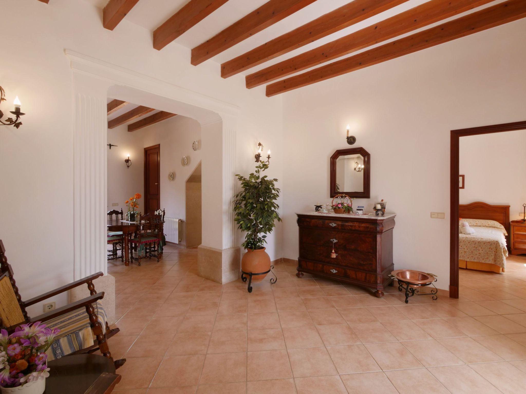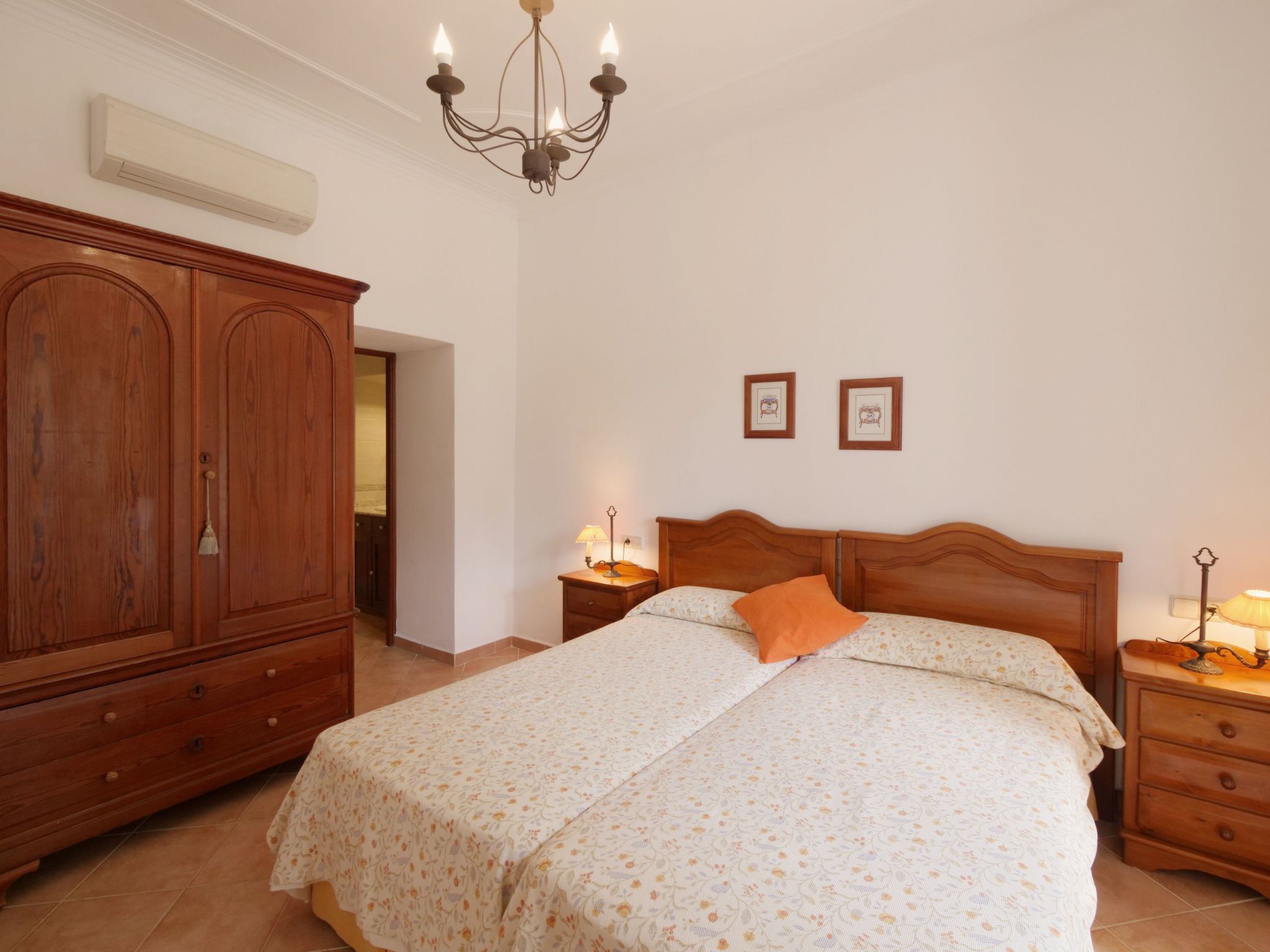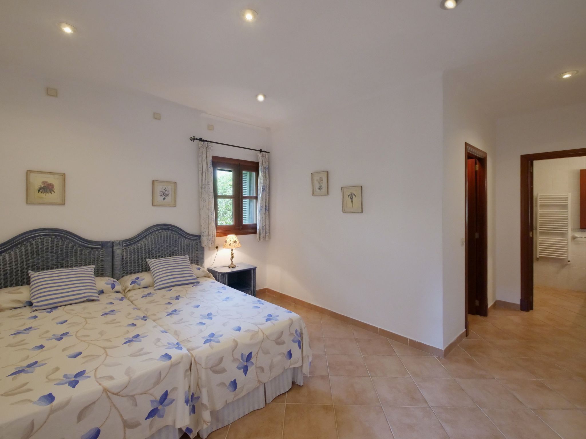 The spacious, one-story finca has been renovated and brought up to a modern standard. The cozy living / dining room has satellite TV / DVD and has access to the terrace - a quiet place that invites you to relax. The rustic kitchen is superbly equipped. The master bedroom with a large double bed has its own dressing area and en-suite bathroom. The other two bedrooms, each with two single beds and one of them with a dressing room, also have en-suite bathrooms. The bedrooms are very individually and lovingly furnished. The washing machine is in a separate service room and there is also a separate guest toilet. Air conditioning with a fixed and limited schedule.