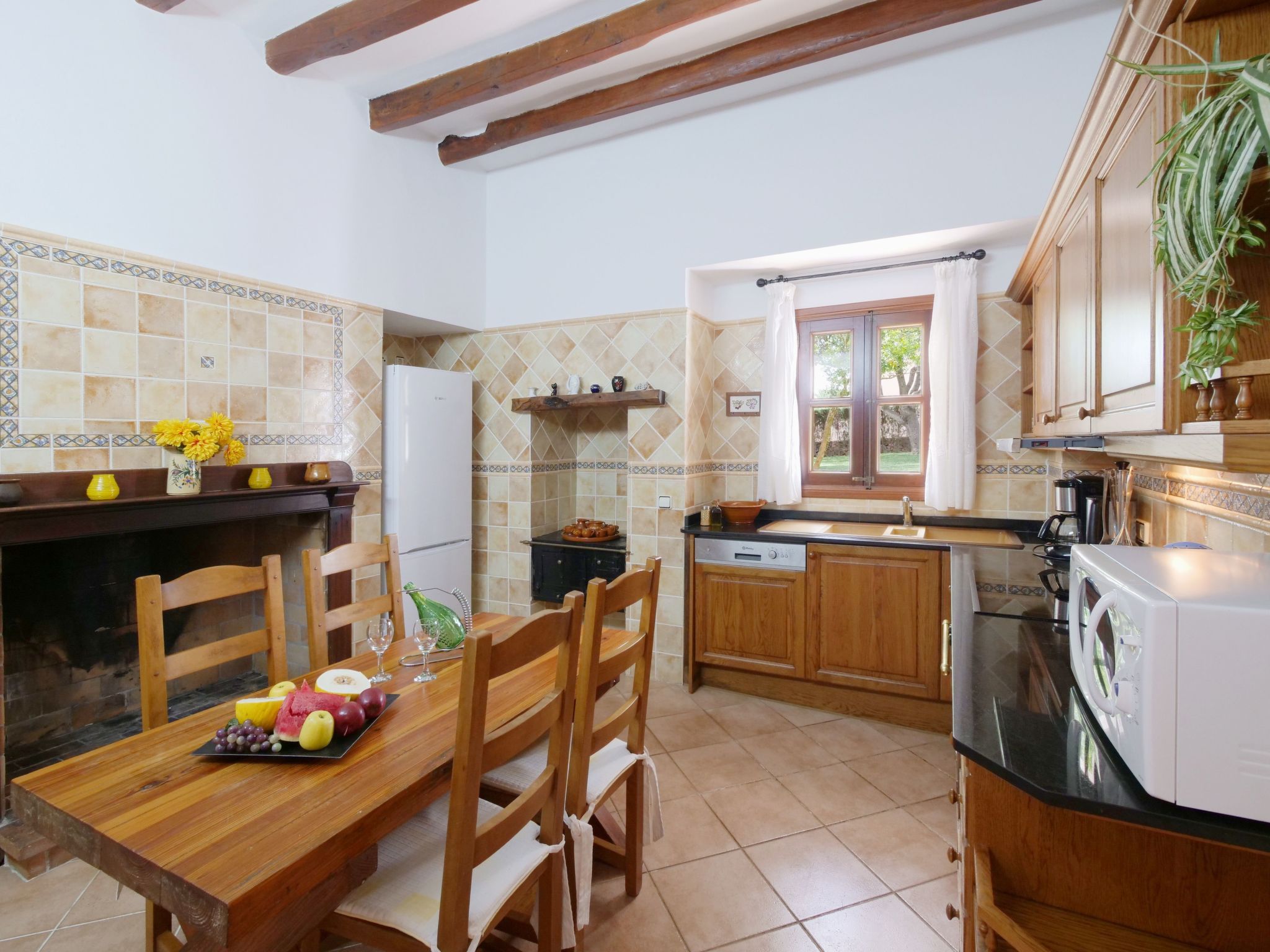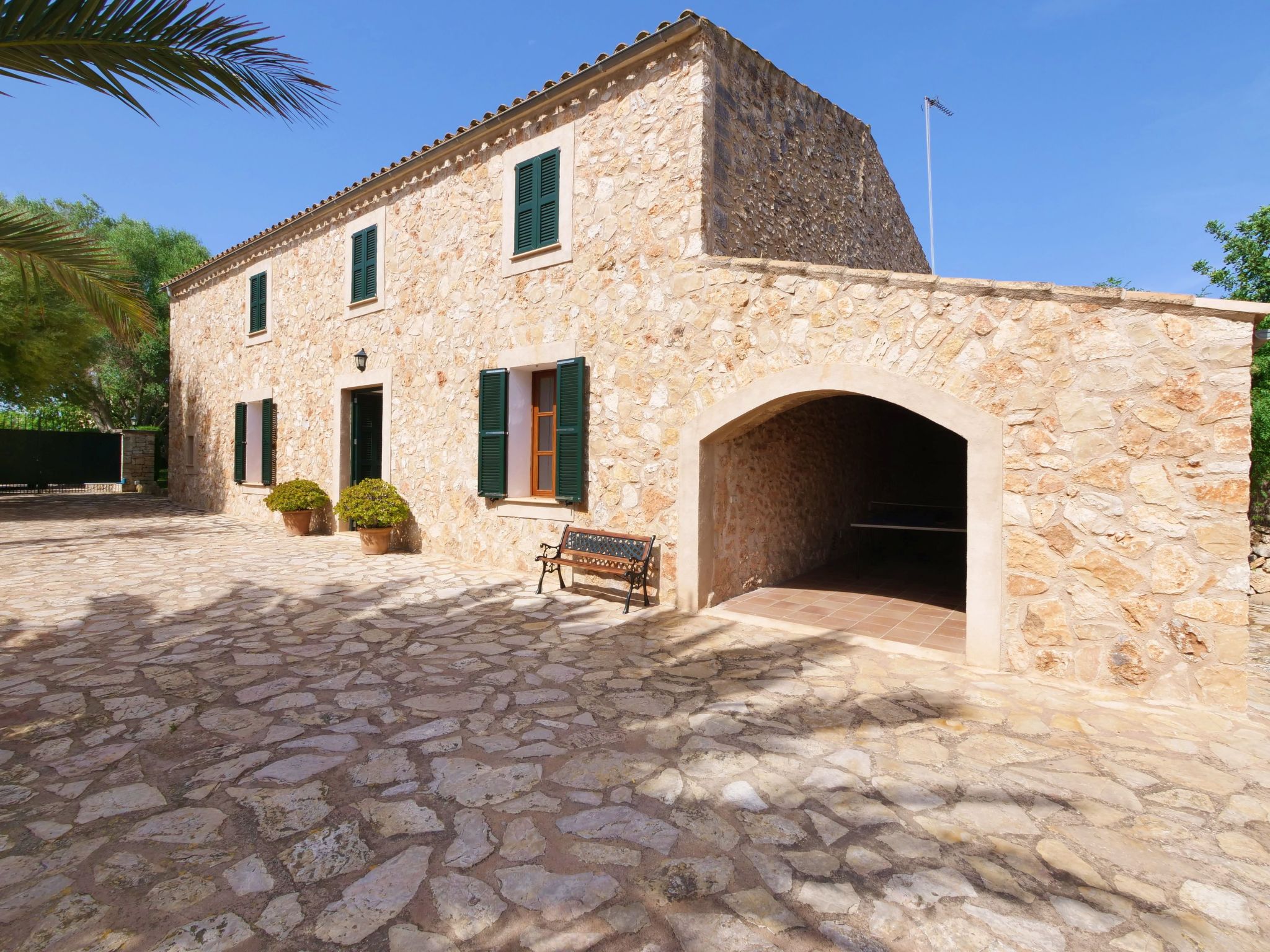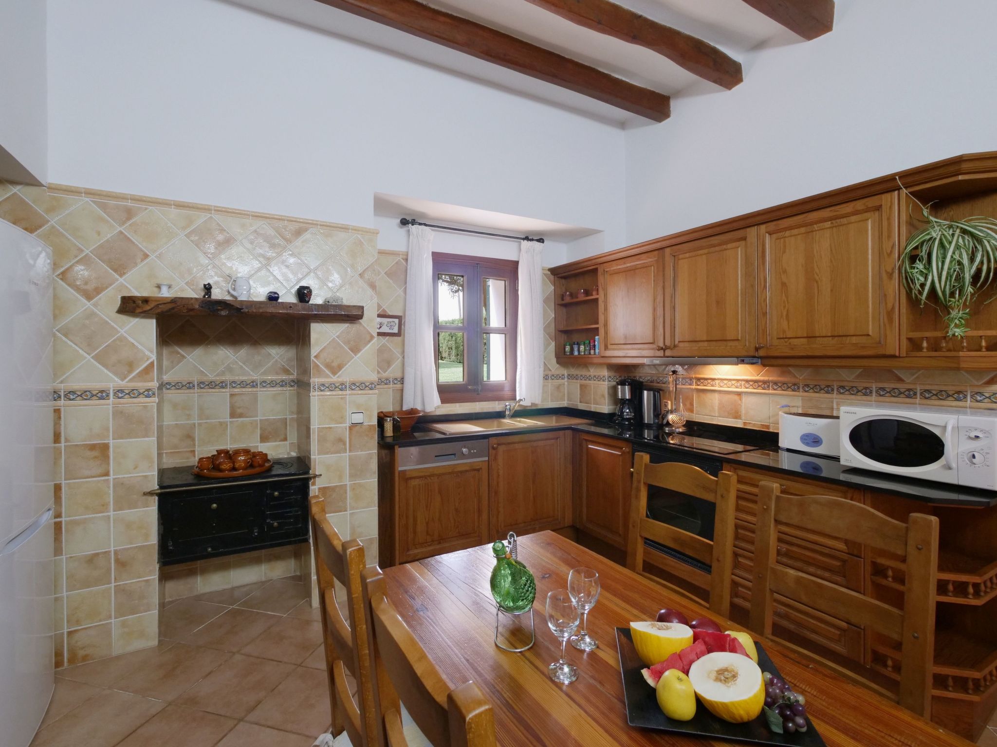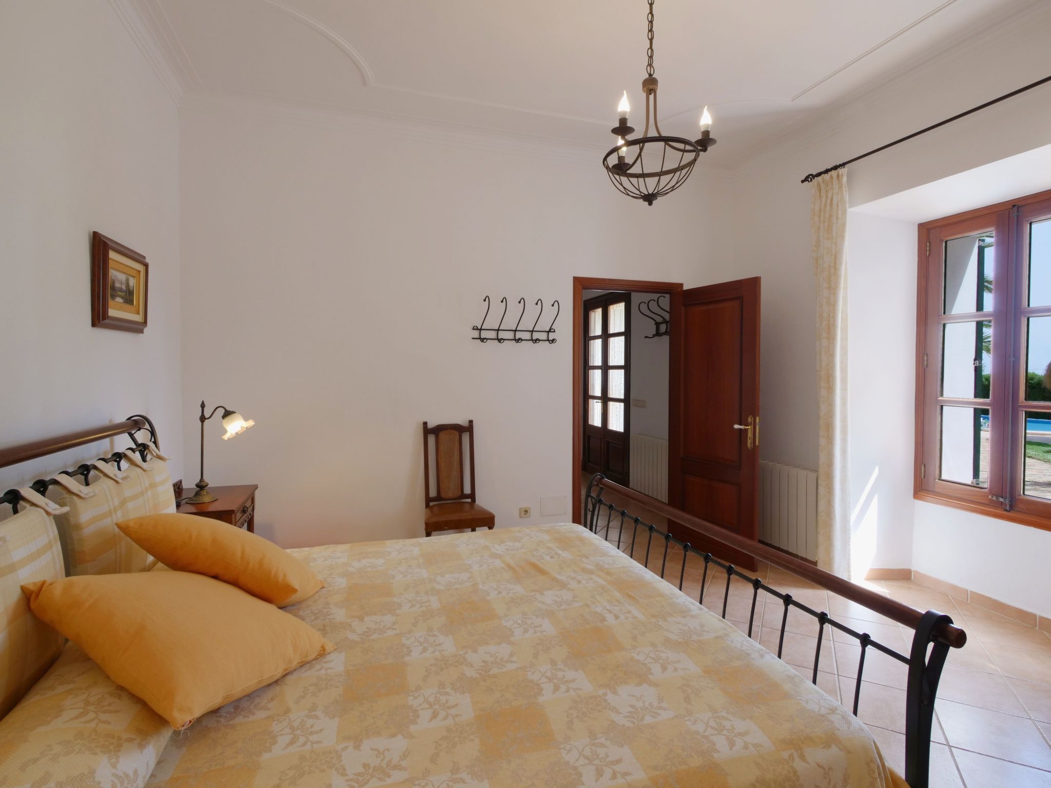 The spacious, one-story finca has been renovated and brought up to a modern standard. The cozy living / dining room has satellite TV / DVD and has access to the terrace - a quiet place that invites you to relax. The rustic kitchen is superbly equipped. The master bedroom with a large double bed has its own dressing area and en-suite bathroom. The other two bedrooms, each with two single beds and one of them with a dressing room, also have en-suite bathrooms. The bedrooms are very individually and lovingly furnished. The washing machine is in a separate service room and there is also a separate guest toilet. Air conditioning with a fixed and limited schedule.