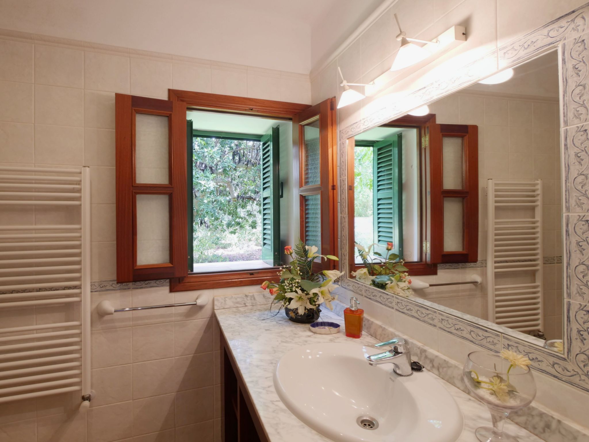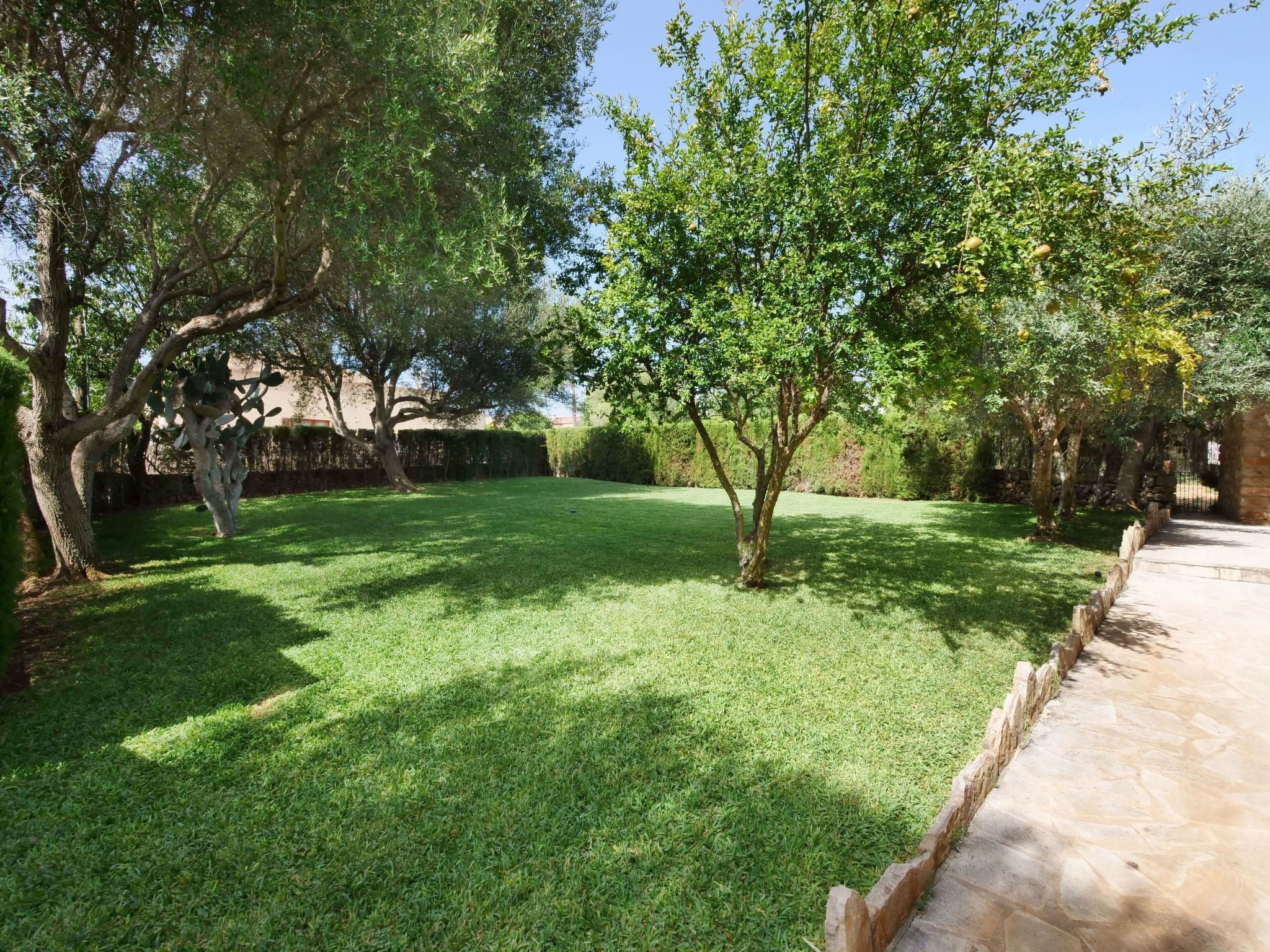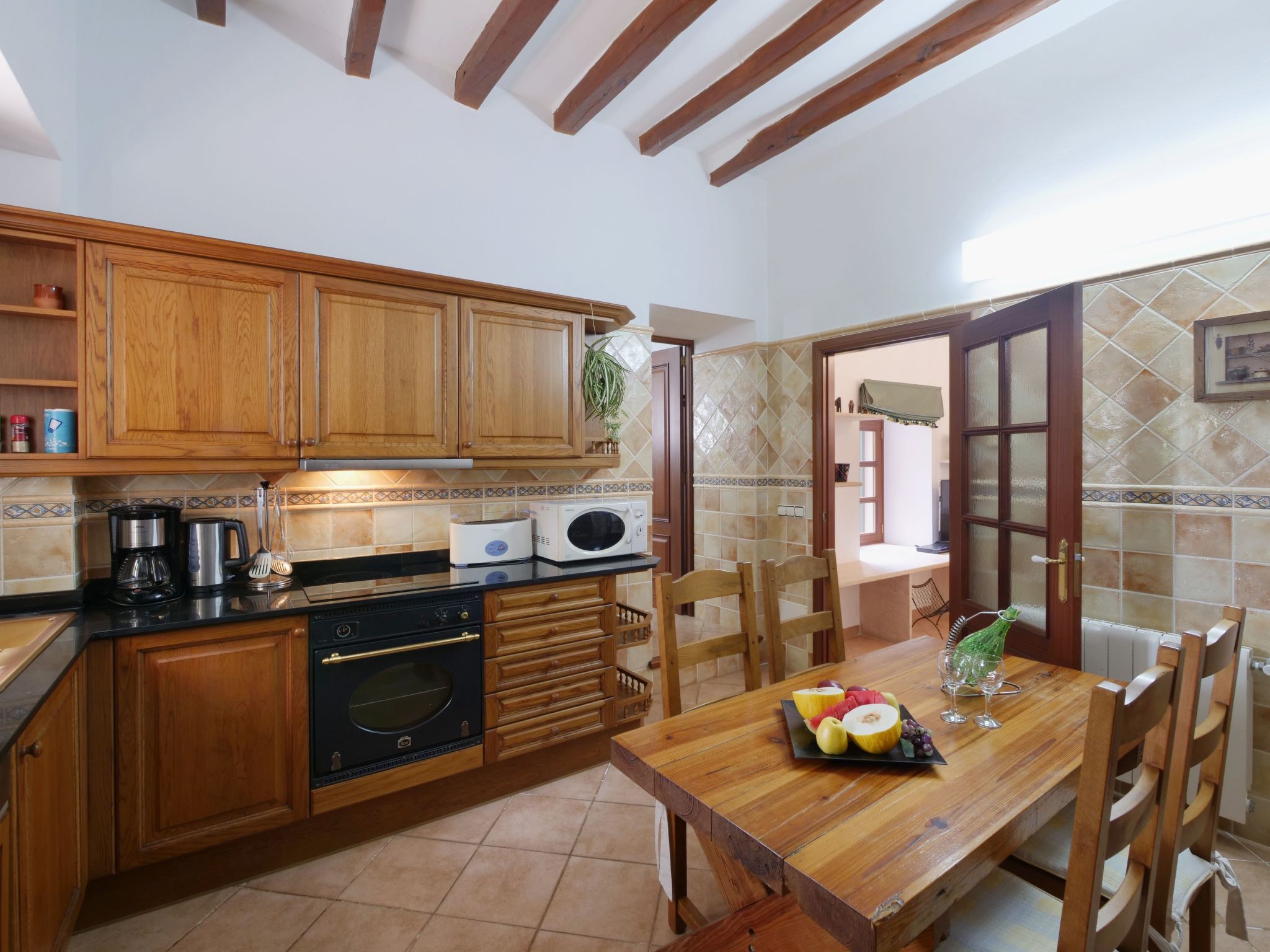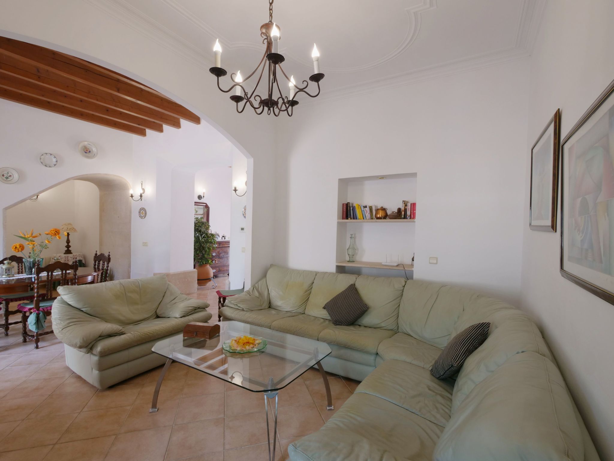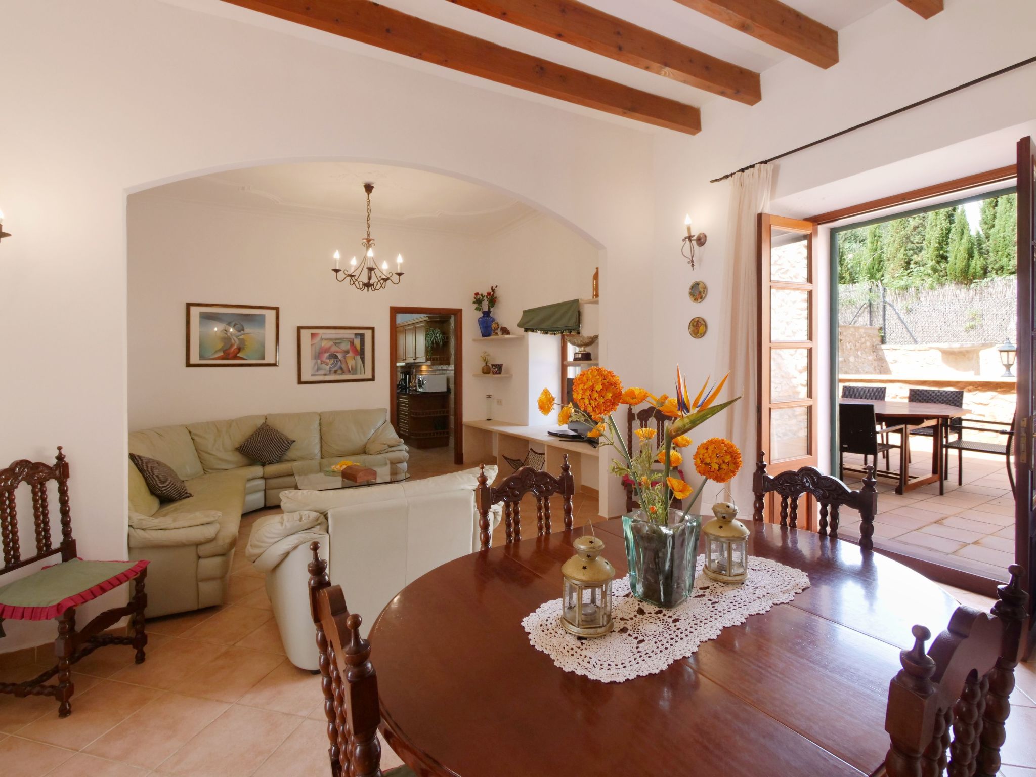 The spacious, one-story finca has been renovated and brought up to a modern standard. The cozy living / dining room has satellite TV / DVD and has access to the terrace - a quiet place that invites you to relax. The rustic kitchen is superbly equipped. The master bedroom with a large double bed has its own dressing area and en-suite bathroom. The other two bedrooms, each with two single beds and one of them with a dressing room, also have en-suite bathrooms. The bedrooms are very individually and lovingly furnished. The washing machine is in a separate service room and there is also a separate guest toilet. Air conditioning with a fixed and limited schedule.