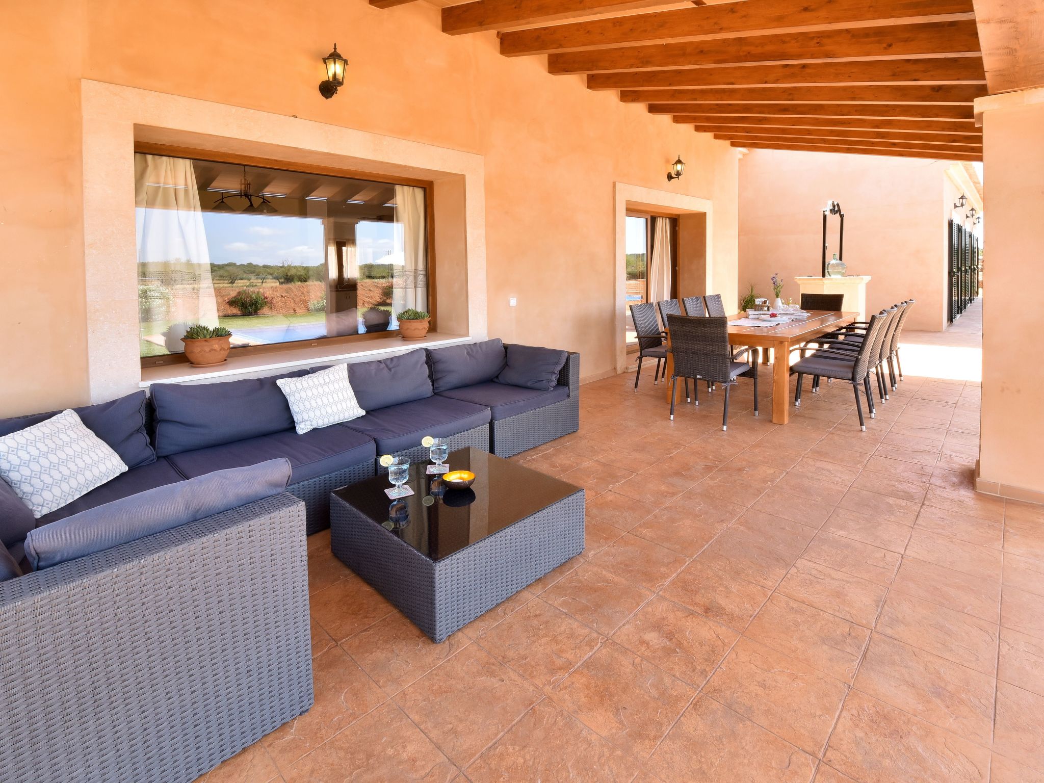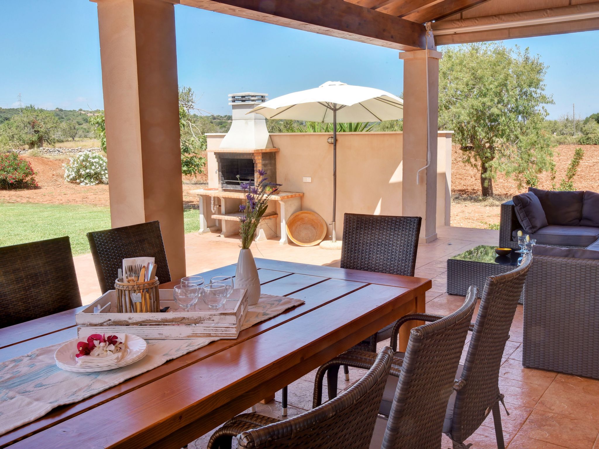 Holiday home for rent in Cas Concos, Mallorca, 5 km from the charming little town of Cas Concos. Here you will find a few small shops, a bakery and several cafés and restaurants. The lively tourist resort of Cala D'Or, with several sandy coves, an endless variety of restaurants and the exclusive yacht harbour can be reached in 25 minutes by car. The town of Santanyi, with a variety of shops, galleries and restaurants, is approx. 10 minutes away by car. A large, colourful weekly market is held here every Saturday and Wednesday morning.beautiful finca with 4 bedrooms, private pool and well-equipped covered terrace. Very quiet, rural location; ideal for relaxing and enjoying the peace and quiet of the countryside.