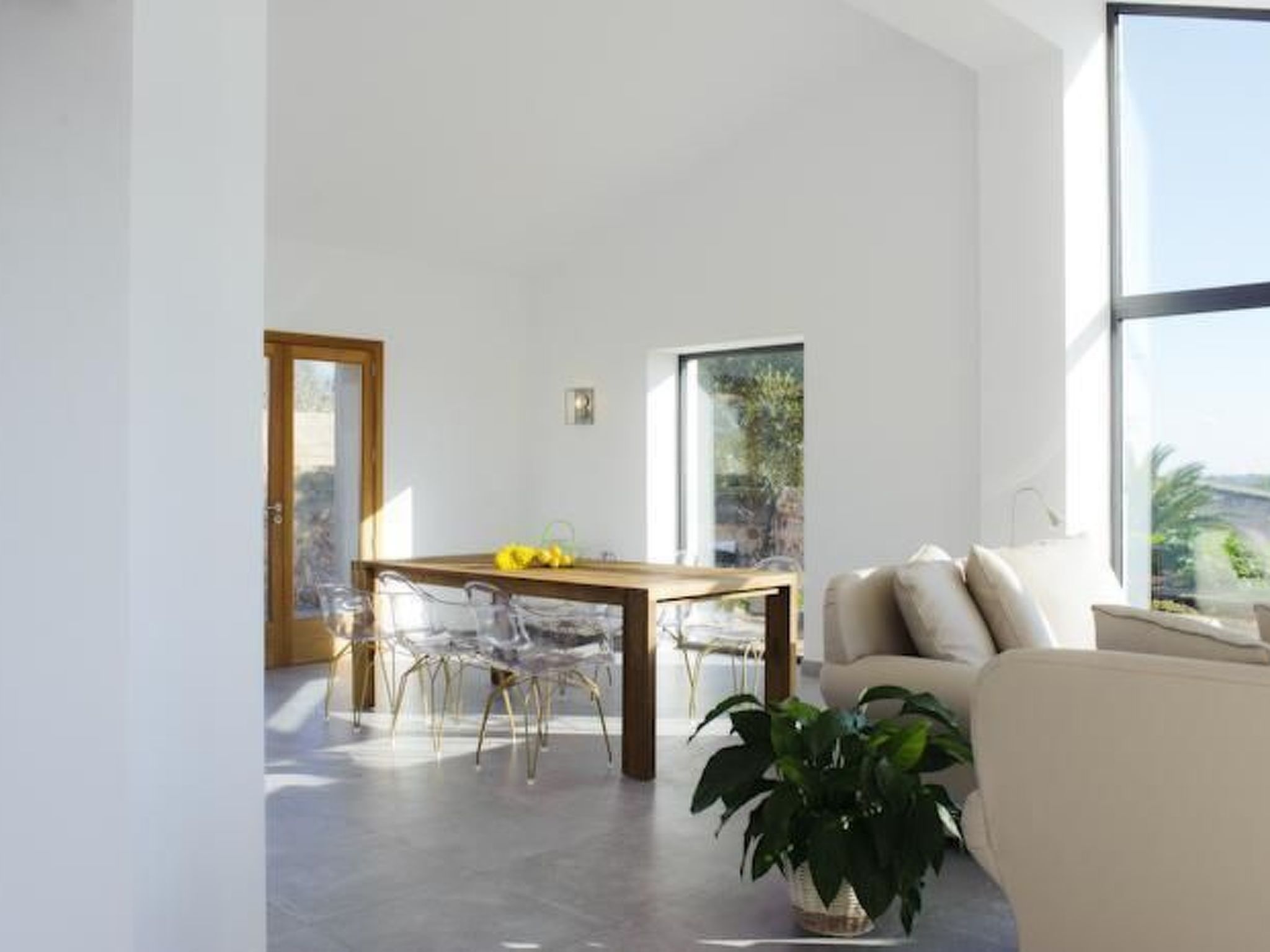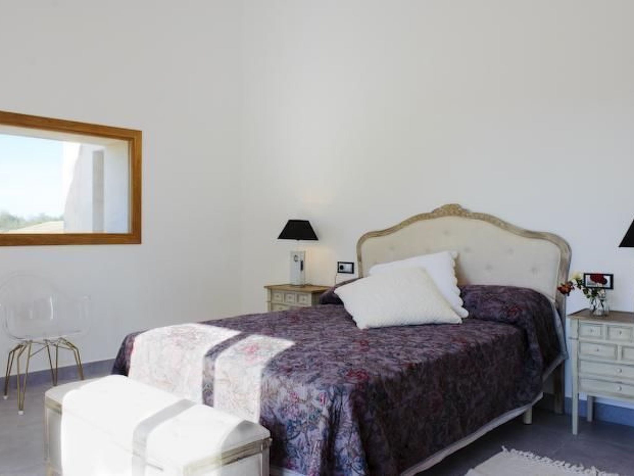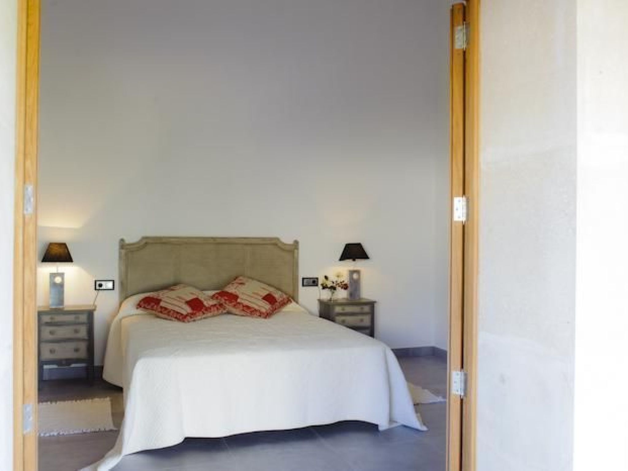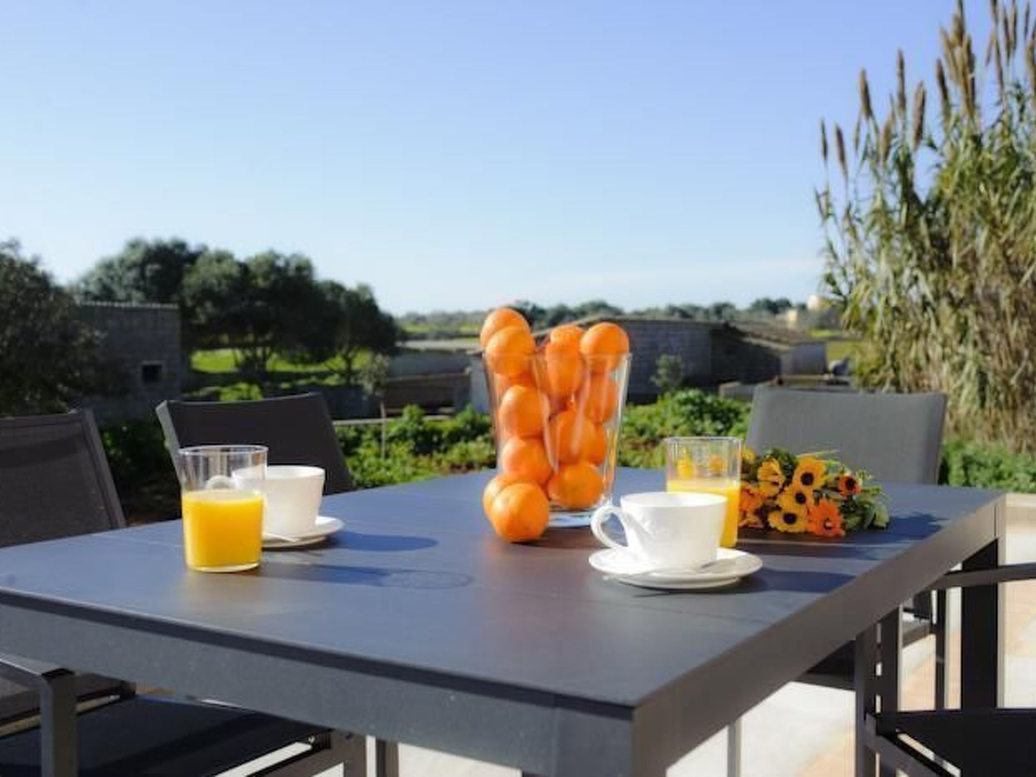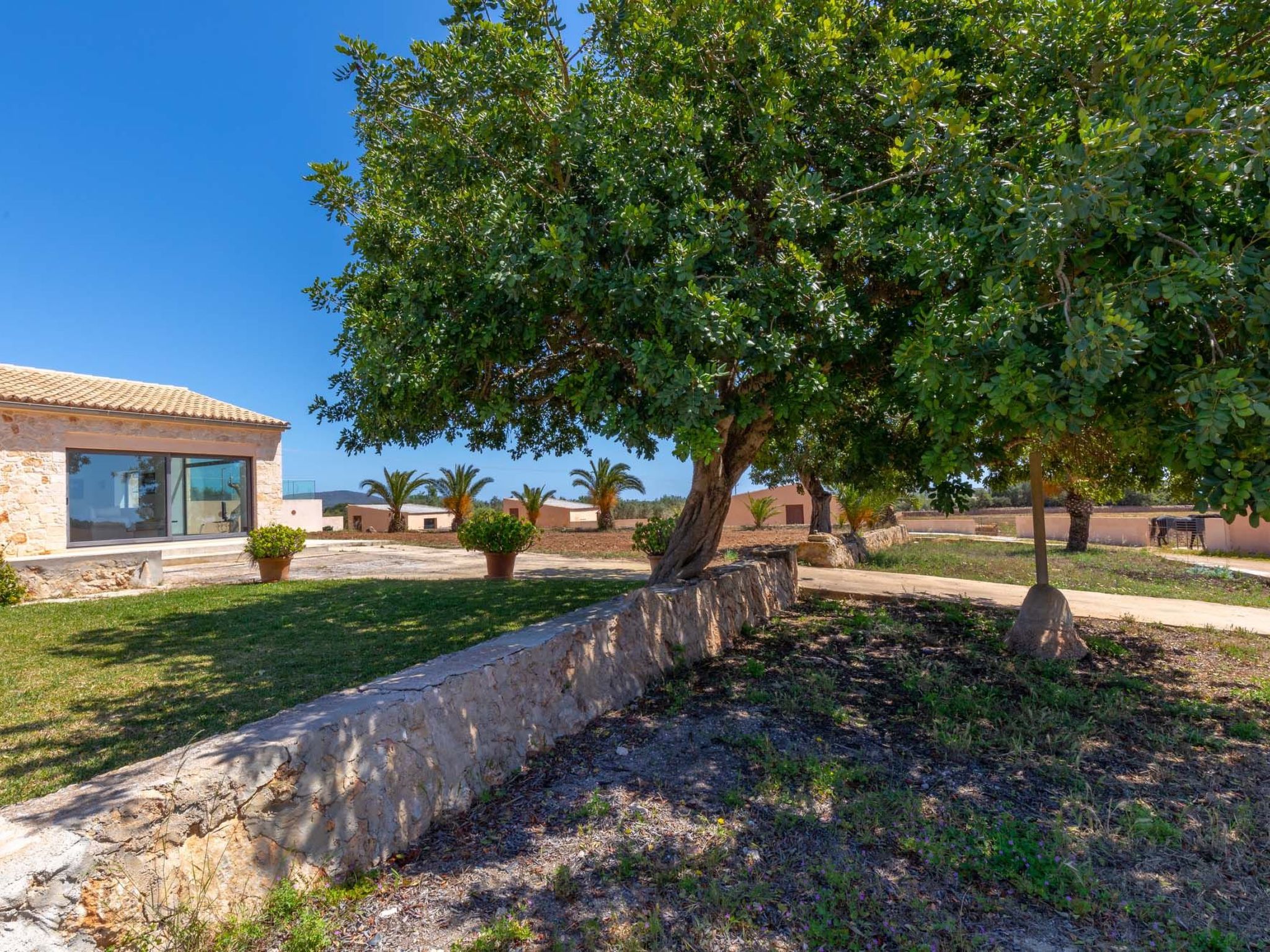 The old farmhouse has been completely renovated and transformed into a modern country house of 130m2. The house is tastefully furnished to a high standard. A door more than 200 years old welcomes the visitor. The entrance area leads to a bright, open-plan living and dining area and an open-plan kitchen. The living and dining area features an Italian teak designer table and cosy sofas. The entire area is flooded with light without being heated by the sunlight (special glazing) and offers a marvellous view of the surrounding area as far as the town of Santanyí in the distance. Large sliding glass doors lead out onto the front terrace. The dining area leads to the open-plan kitchen, which is equipped to a high standard. The house has two double bedrooms. One with walk-in shower en-suite and access to the rear, covered terrace, the other with en-suite bathroom and access to the front terrace.