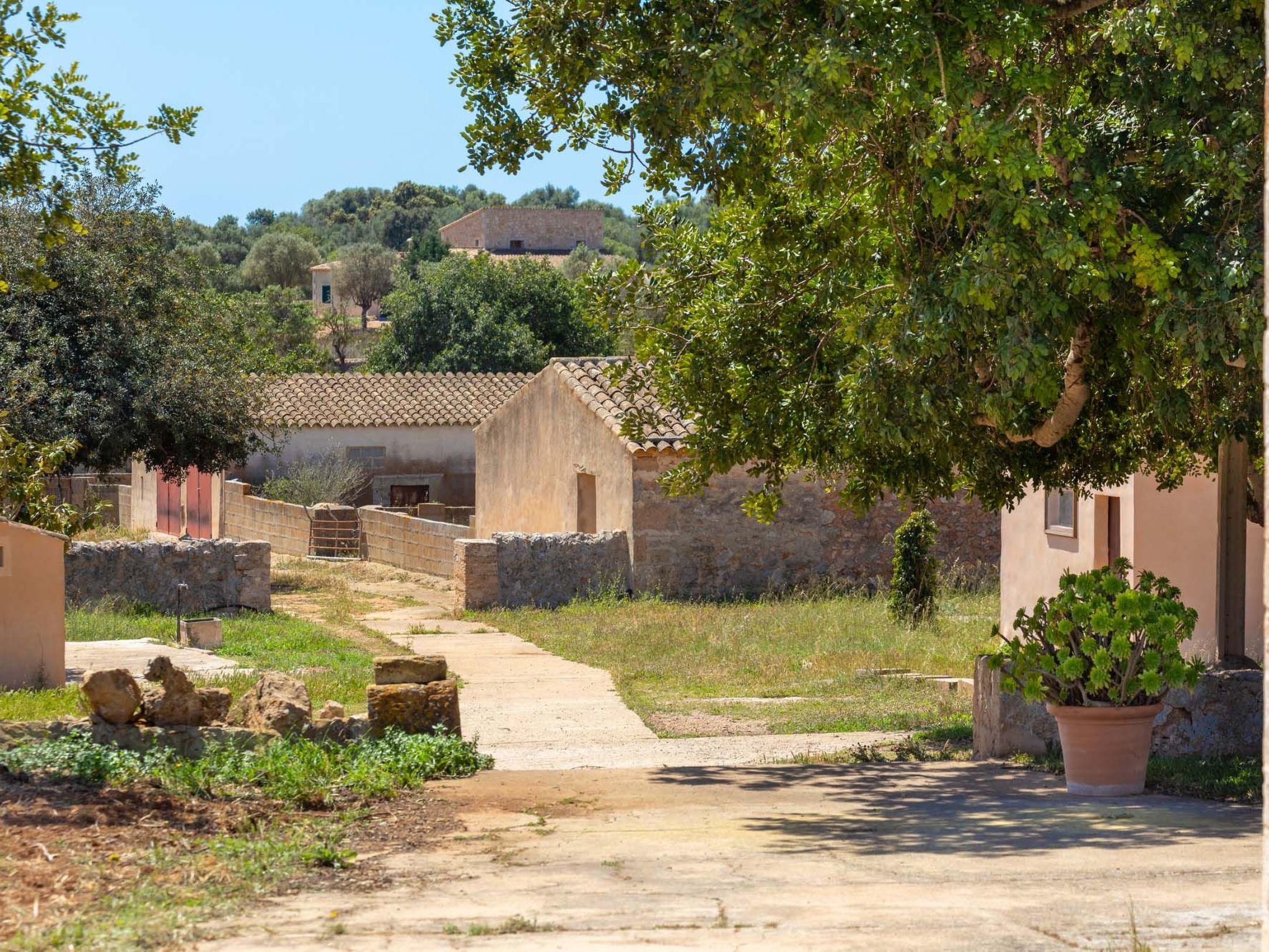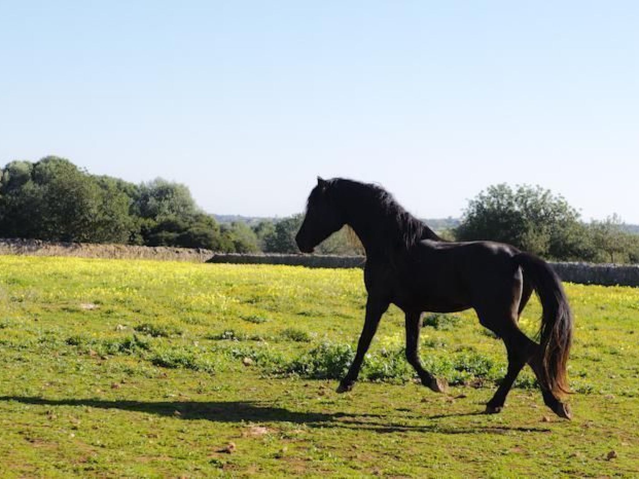 Salom Verd is a house on a former farm that is now entirely dedicated to breeding and revitalising the Mallorcan horse breed. It is a wonderful place to enjoy an unforgettable holiday. The house is surrounded by nature, nestled in a truly tranquil landscape and only 2 kilometres from the small village of Es Llombards. The picturesque village offers two cafes, a bakery and two restaurants. Santanyí, a typical Mallorcan small town with a beautiful, well-preserved town centre, is about 4 km away. Here you can linger in one of the cafés and restaurants undisturbed by the traffic, while the small boutiques with trendy to high-quality clothing tempt you to go shopping. On Saturdays and Wednesdays, a popular weekly market is held between the old town walls and the church. Locals meet here to buy fresh fruit and vegetables, as do German residents and holidaymakers. Handicrafts are on sale to the side of the historic church. Cala Santanyí, a popular beach to visit with children, and the beautiful beach of Cala Llombards can be reached in around 10 minutes by car.
