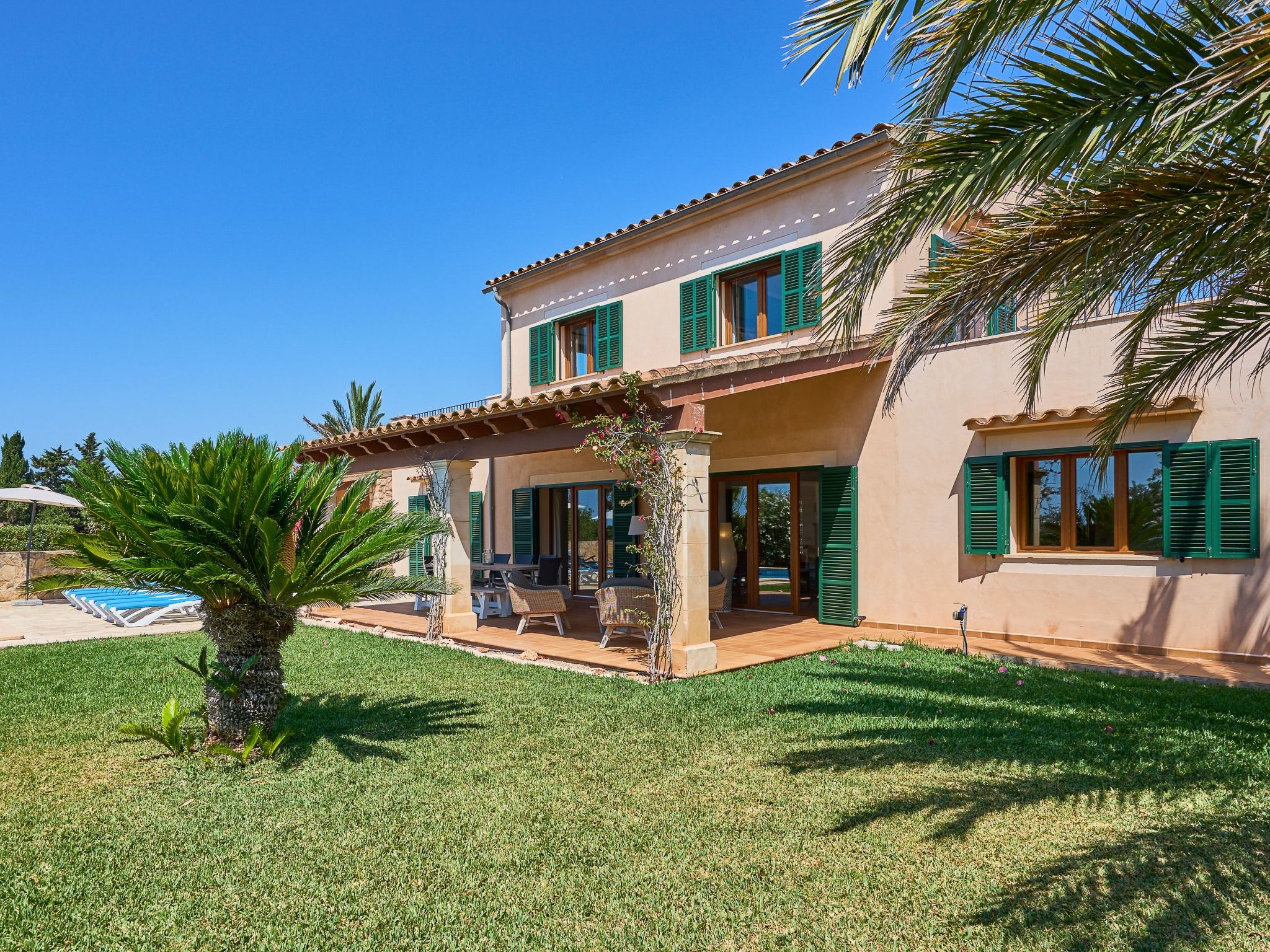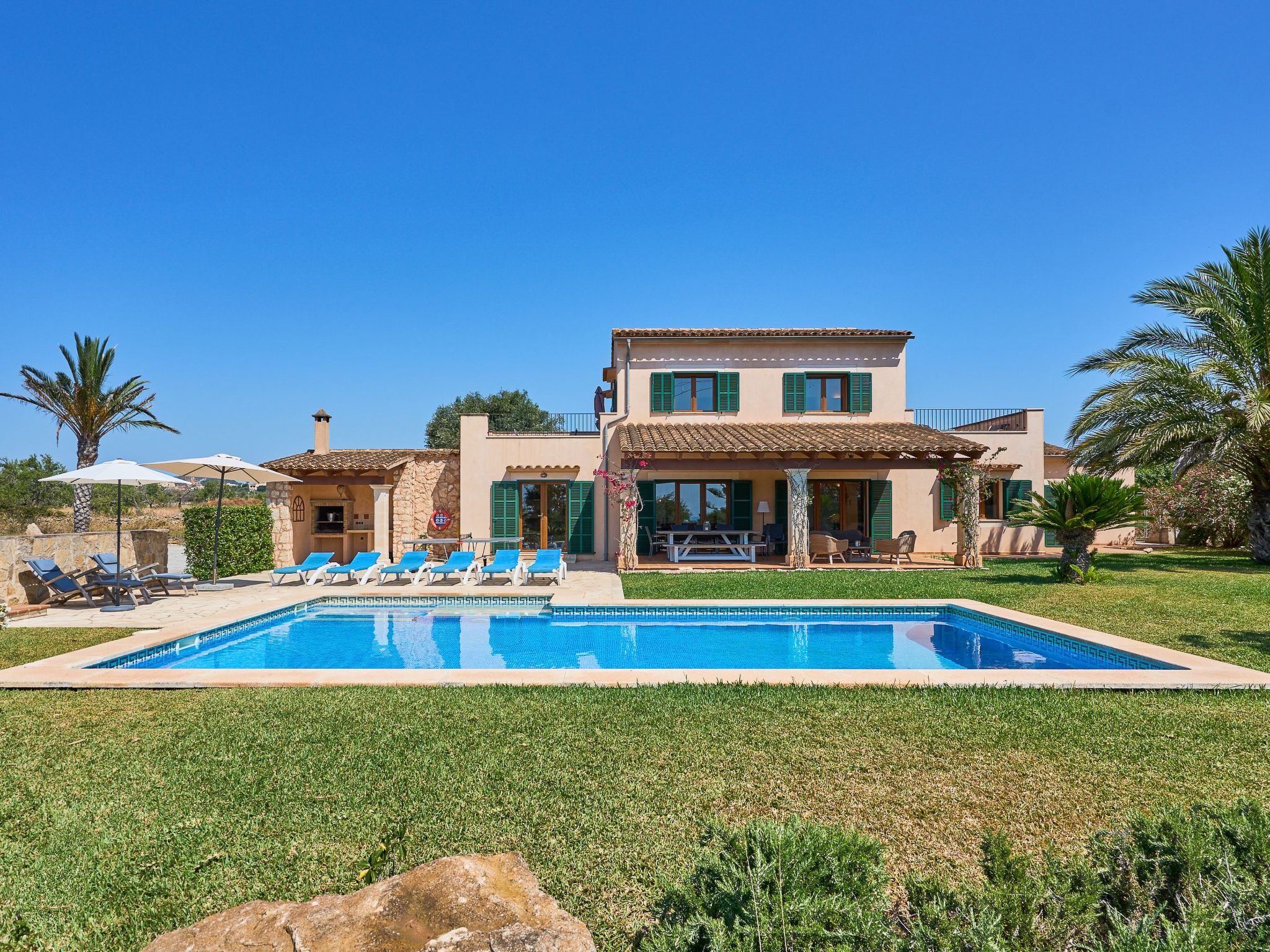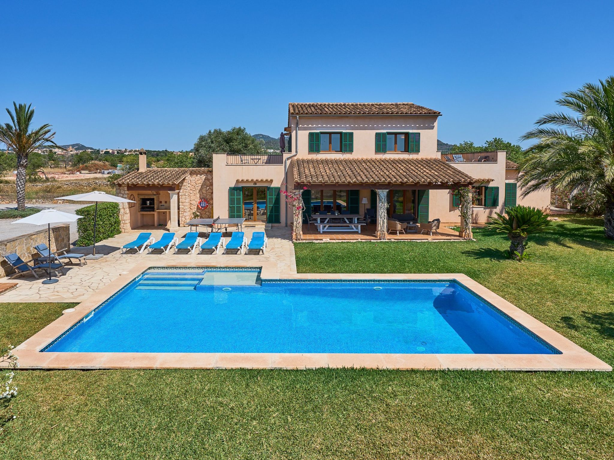 Discover the perfect holiday destination for your family or a larger group: a beautiful, spacious country house in an oasis of tranquillity. With space for up to 10 guests, a private pool and an idyllic lawned garden, it's the ideal retreat for those seeking relaxation. And best of all, you are only 2 km from the lively beaches and charm of Cala D'Ors on Mallorca.