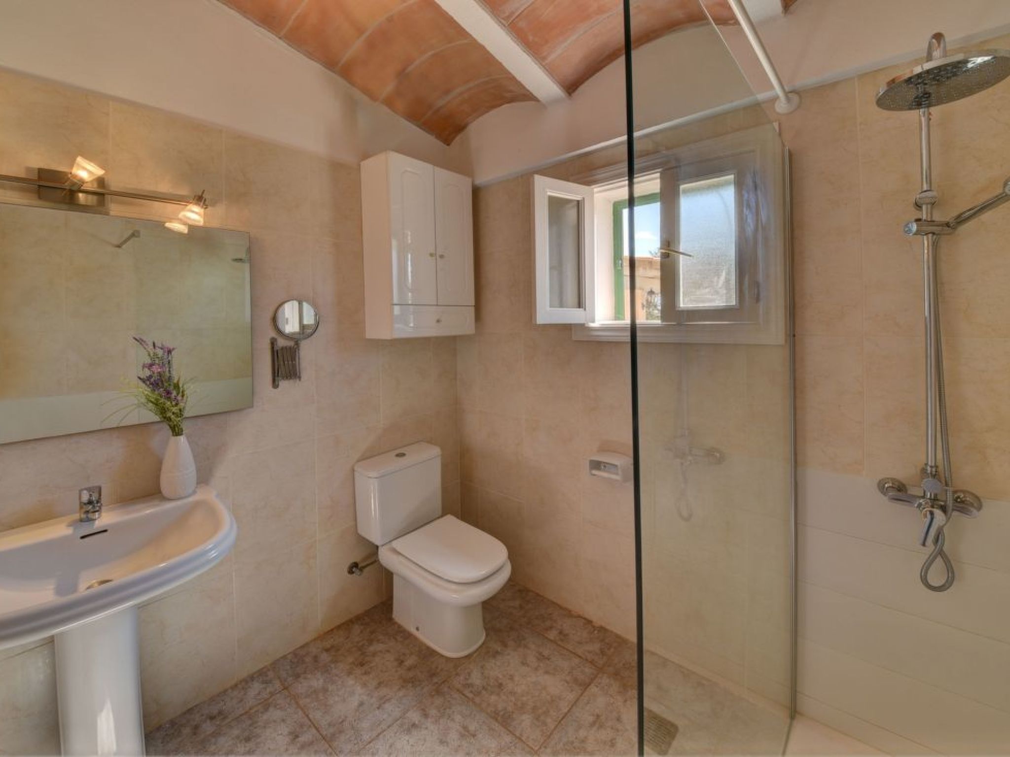 Calonge can be reached by car in about 3 minutes. There you will find local shops, a supermarket and really nice restaurants, next to a plaza with a small playground. Cala D'Or offers its visitors seven beaches, a pedestrianised area with a large sn of restaurants, bars and boutiques and a beautiful marina. Excursions can be made along the south-east coast of Mallorca by glass-bottom boat - a nice way of finding out which bays, harbours and sandy beaches might be visited again later by car. The beautiful golf course "Vall d'Or Golf" is just a 10-minute drive away in the direction of Porto Colom.