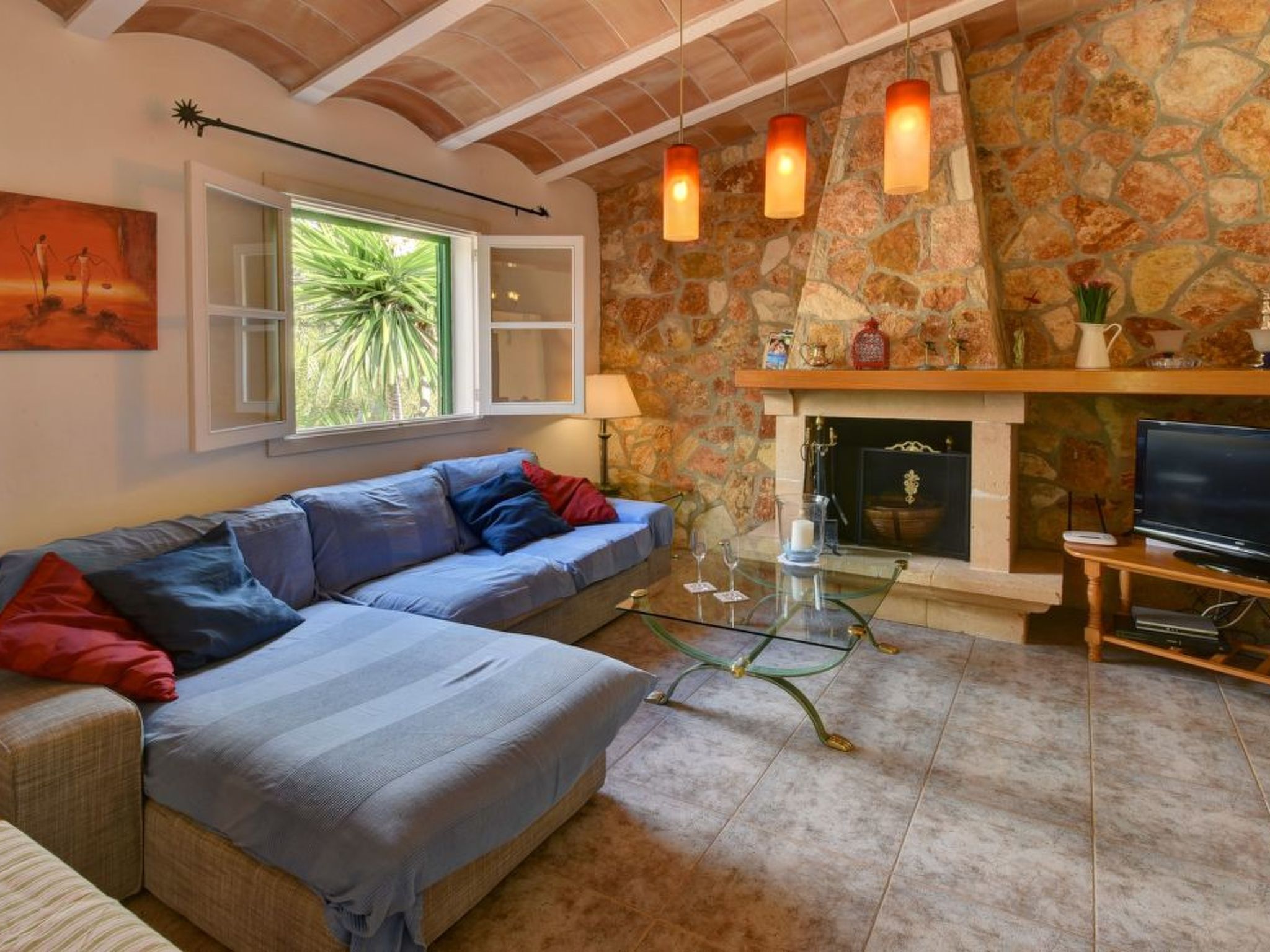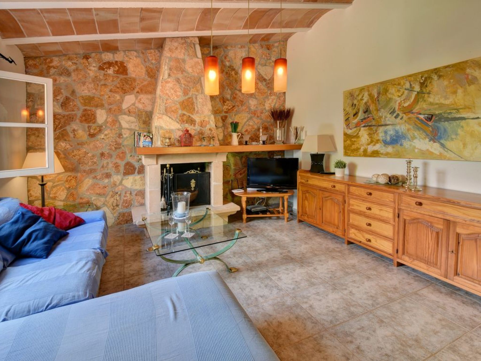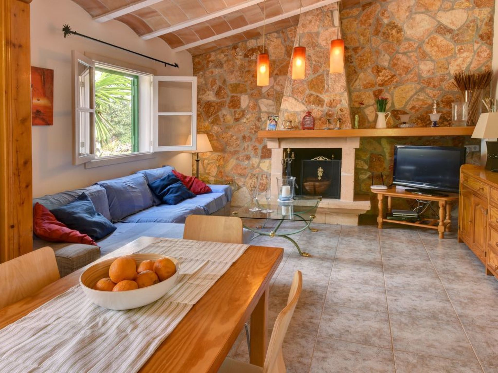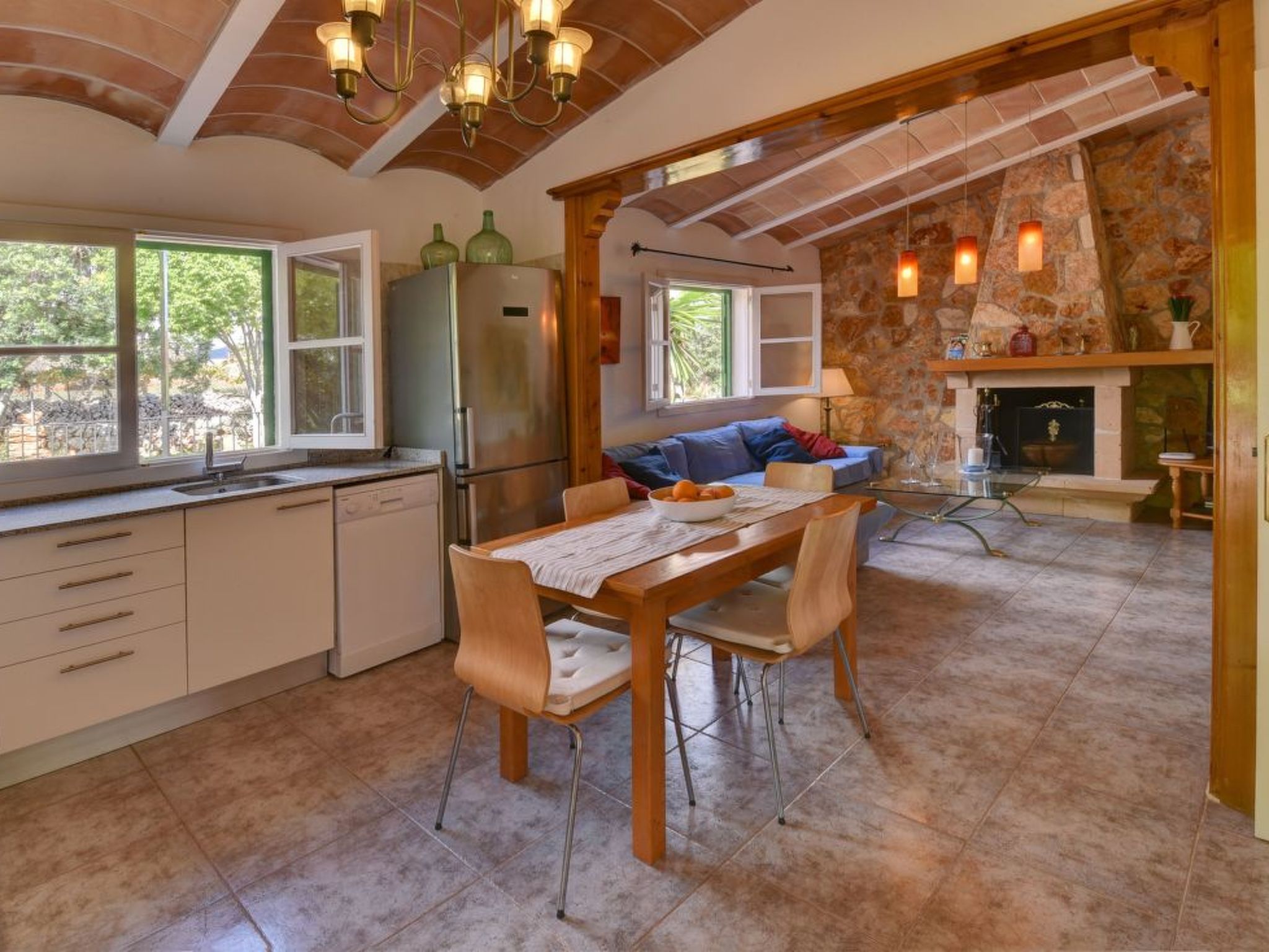 Casa Daniel is a pleasant, single-storey holiday home with an open-plan living room with fireplace, which includes a newly fitted and well-equipped kitchen area and dining table. Individual walls in natural stone cladding create a cosy ambience. It has two bedrooms and a family bathroom with shower. The bedrooms are equipped with hot/cold air conditioning with fixed hours of use from 18:00 - 08:00.