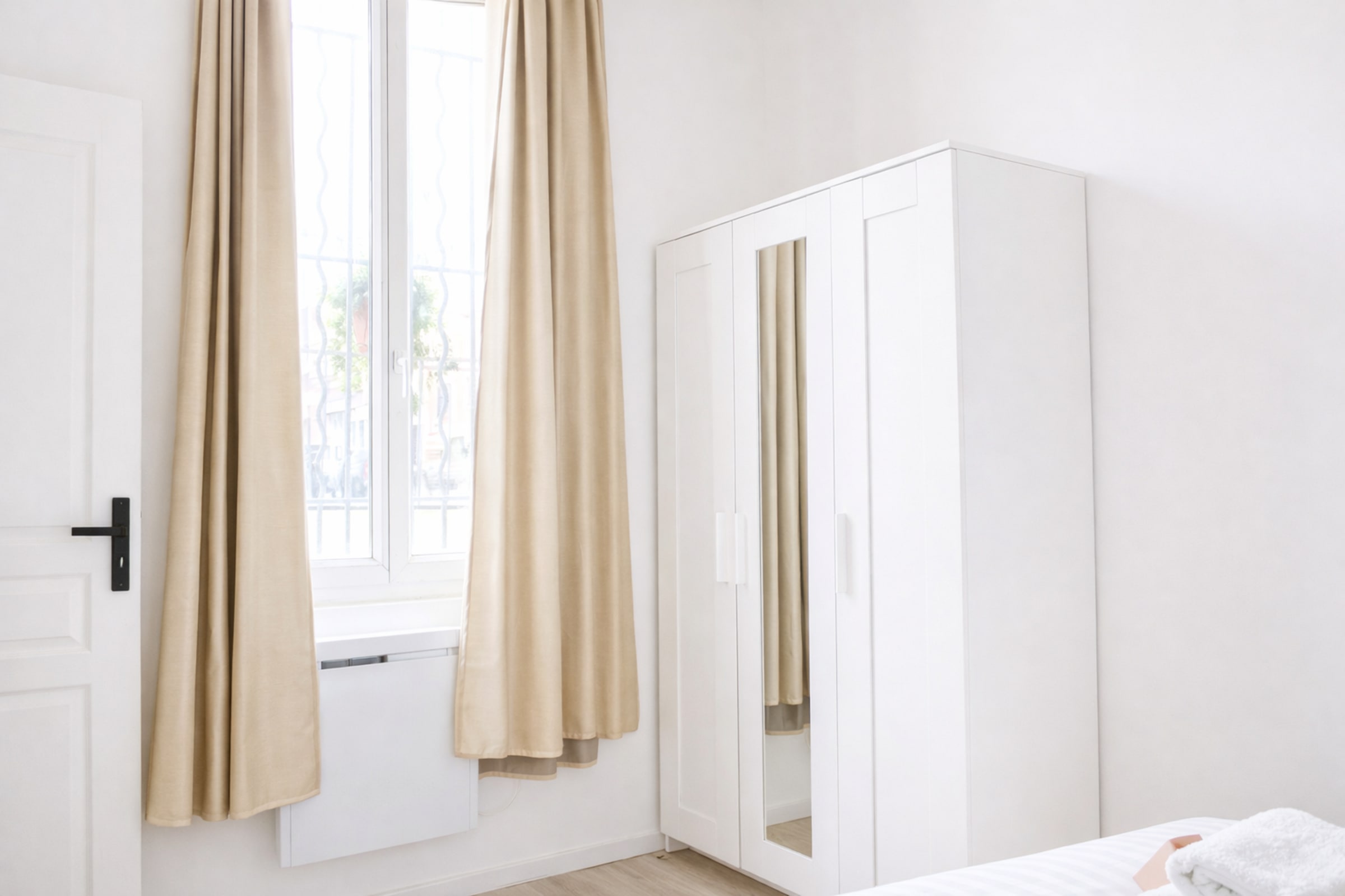 Welcome to this elegant, well-designed, and carefully prepared apartment located on the ground floor of a quiet Parisian building. Designed to offer a comfortable and hassle-free stay, the apartment includes a bright and cosy living room with a comfortable relaxation area, ideal after a day exploring Paris, a separate bedroom with a comfortable double bed and built-in storage, a fully equipped and functional kitchen suitable for both short and long stays, and a modern bathroom with shower and toilet, meticulously maintained. High-quality hotel linen is provided for every stay.