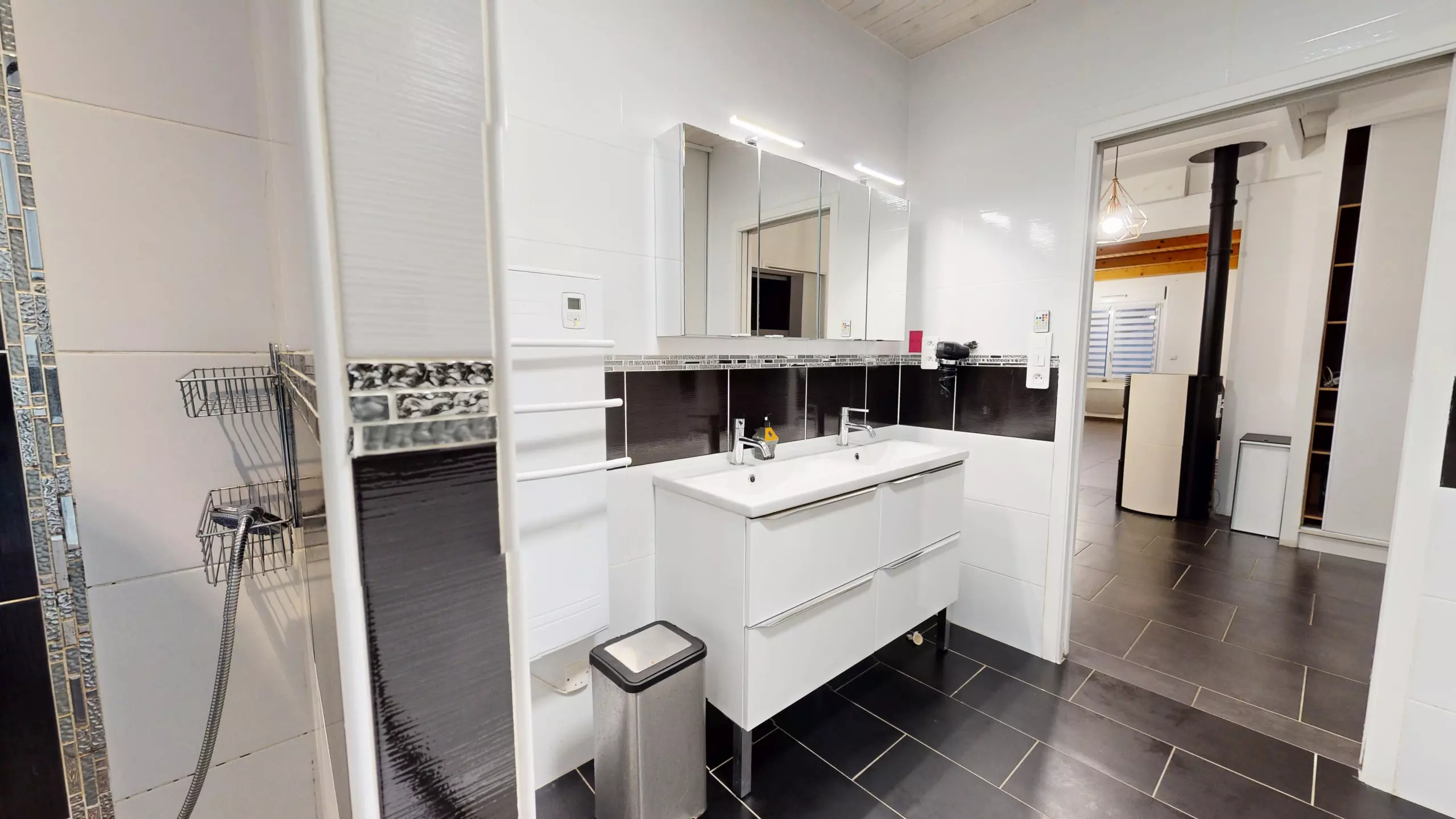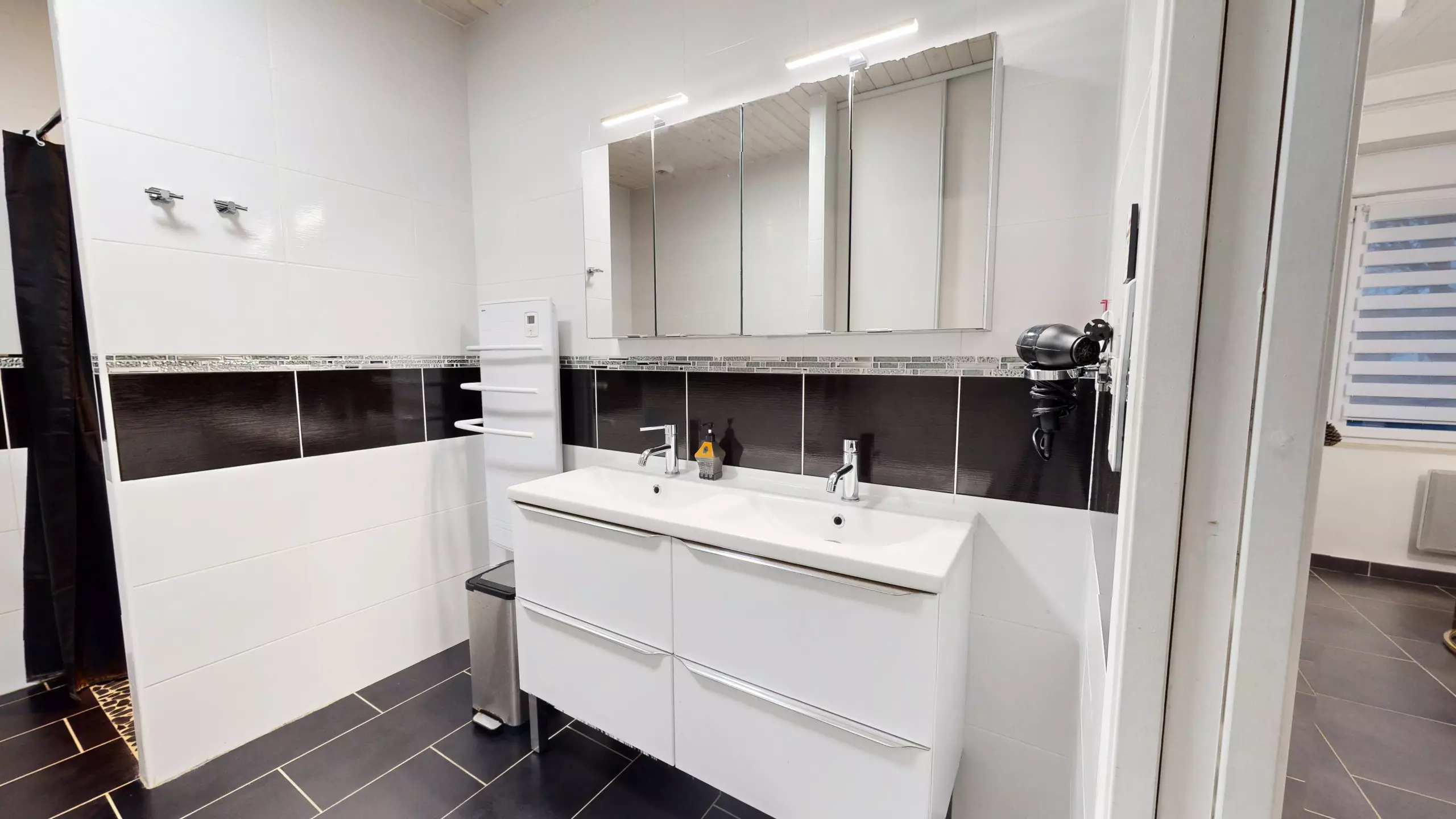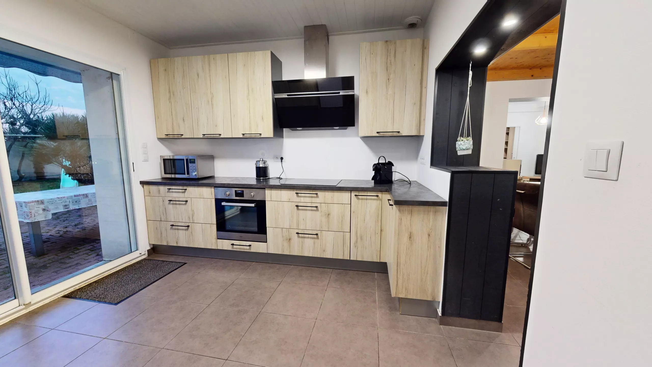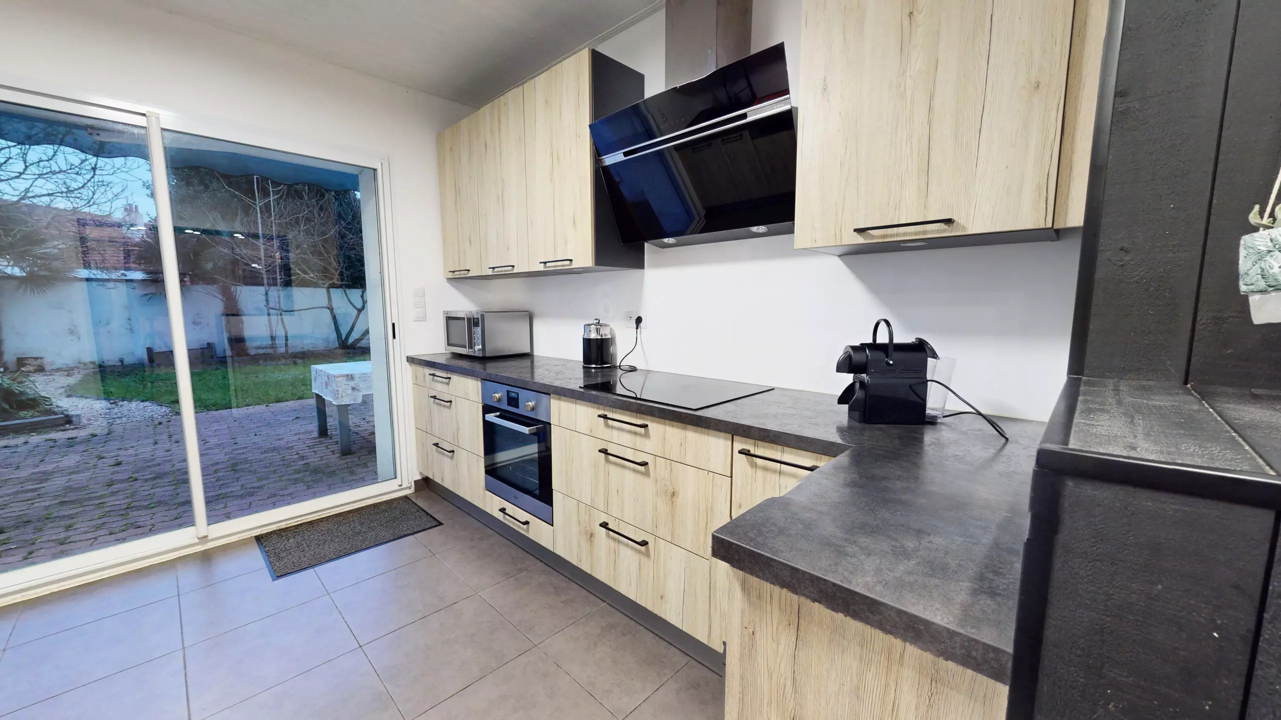 The separate kitchen, large, modern and very functional, is fully equipped with induction hobs and everything you need to cook like at home.