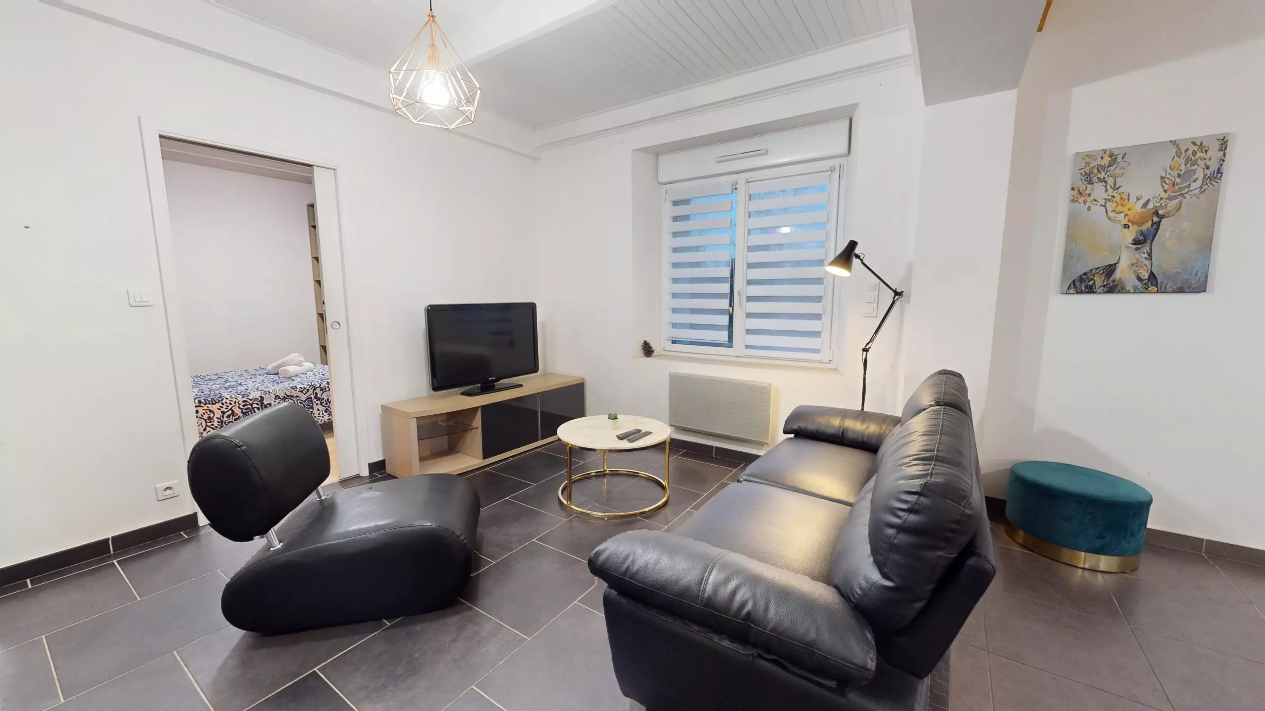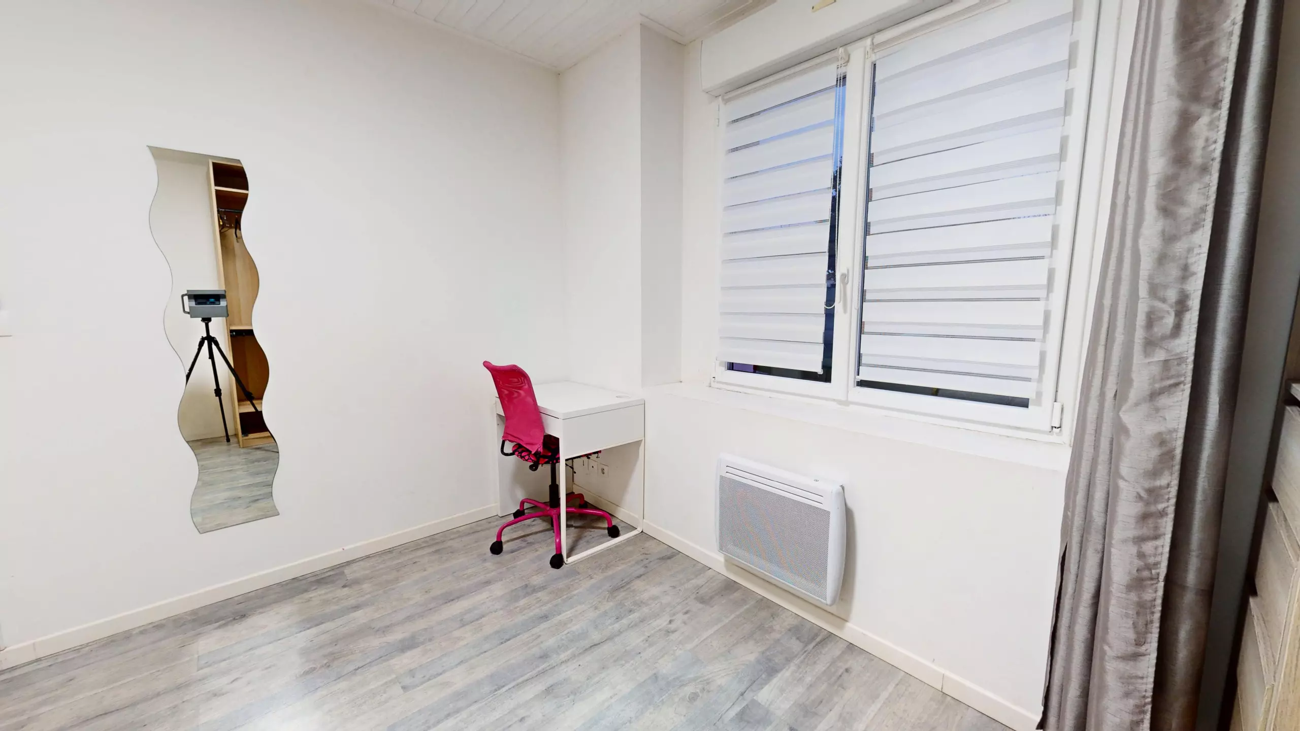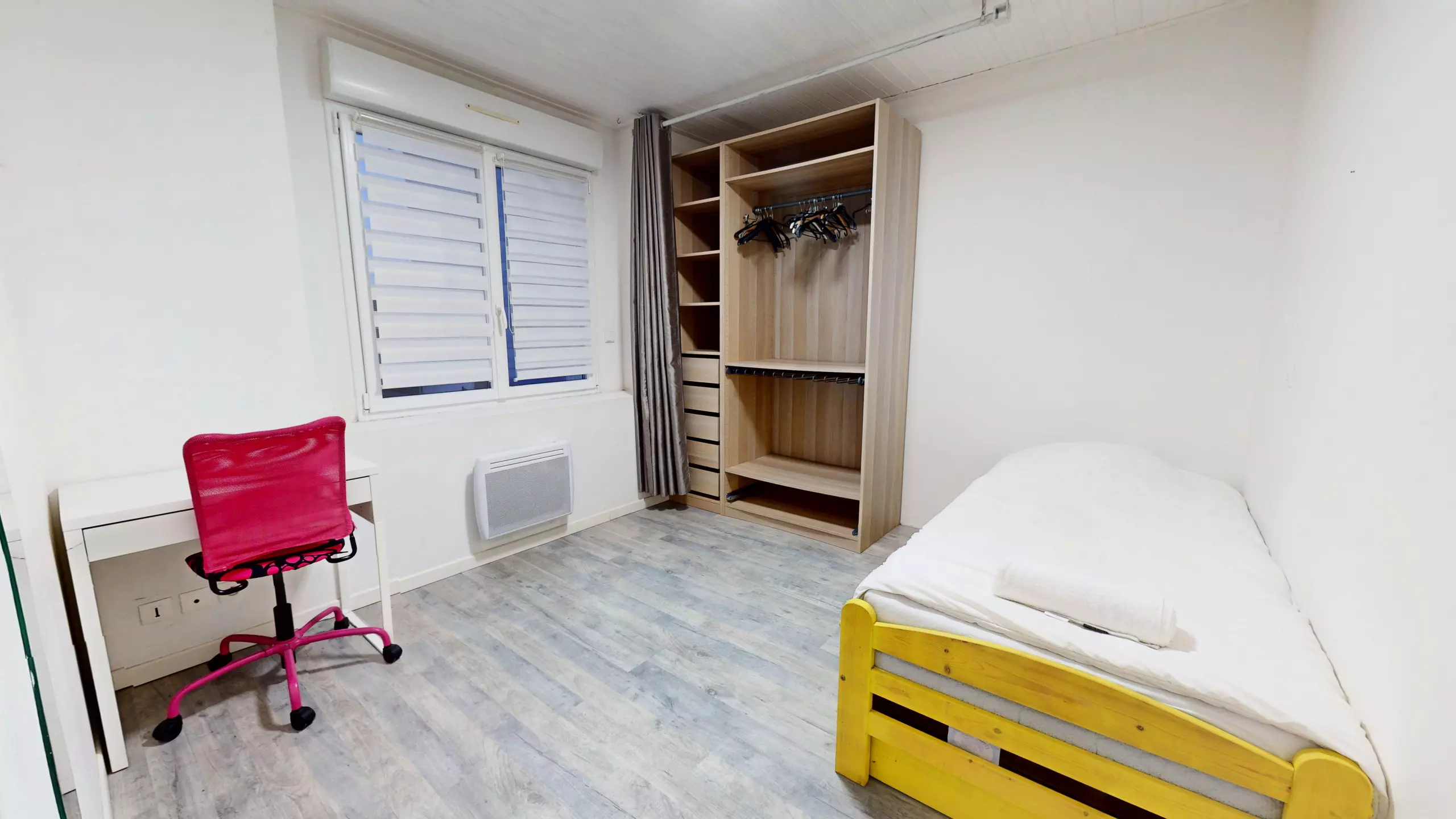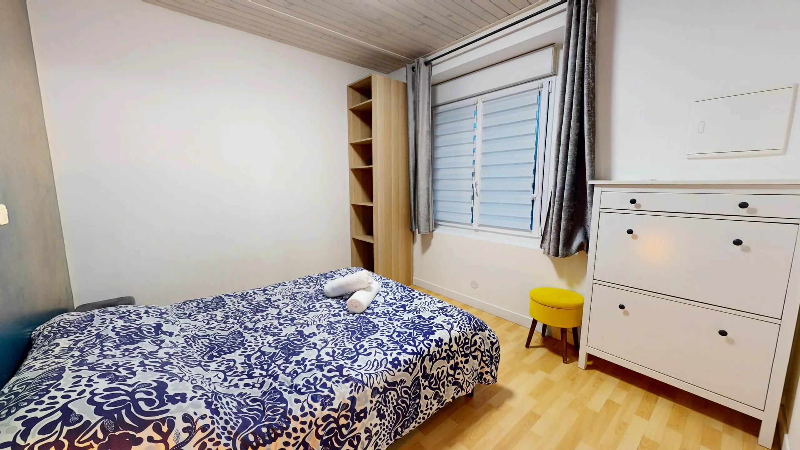 • A second bedroom with a single bed (90x190) and a desk.