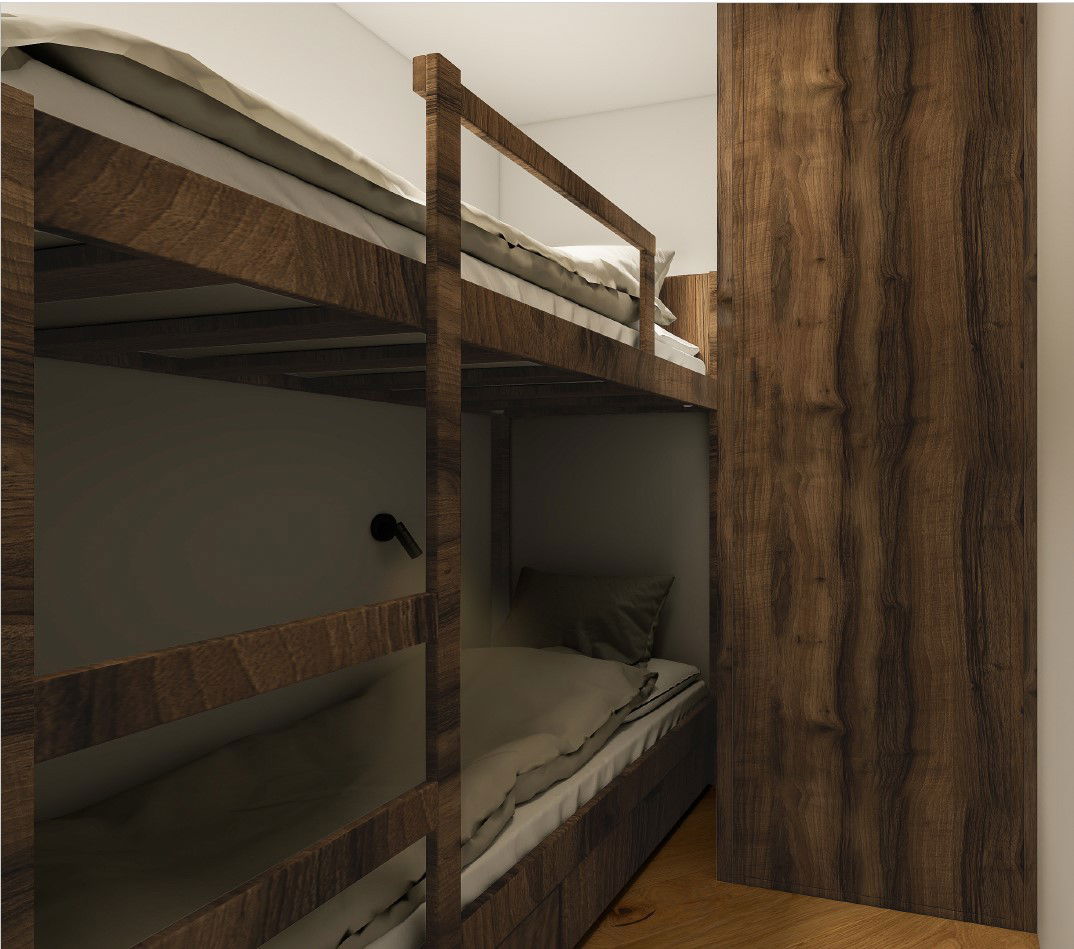 2 mountain alcoves: bunk beds for children under 12 + a 140 cm convertible sofa bed with 1 TV