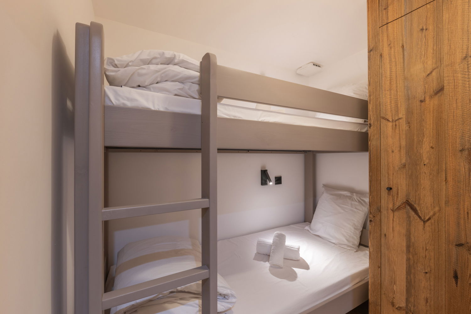 2 mountain alcoves: bunk beds for children under 12 + a 140x200 cm convertible sofa bed with 1 TV