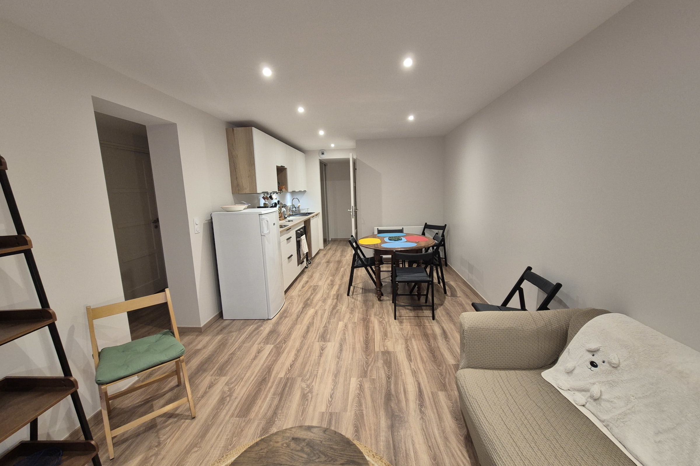 L'appartement se compose d’une entrée, d’un salon-séjour lumineux avec cuisine entièrement équipée, de deux chambres (chambre 1 équipée d’un lit double en 140, chambre 2 d’un canapé BZ en 140), d’une salle d’eau moderne et de WC séparés.