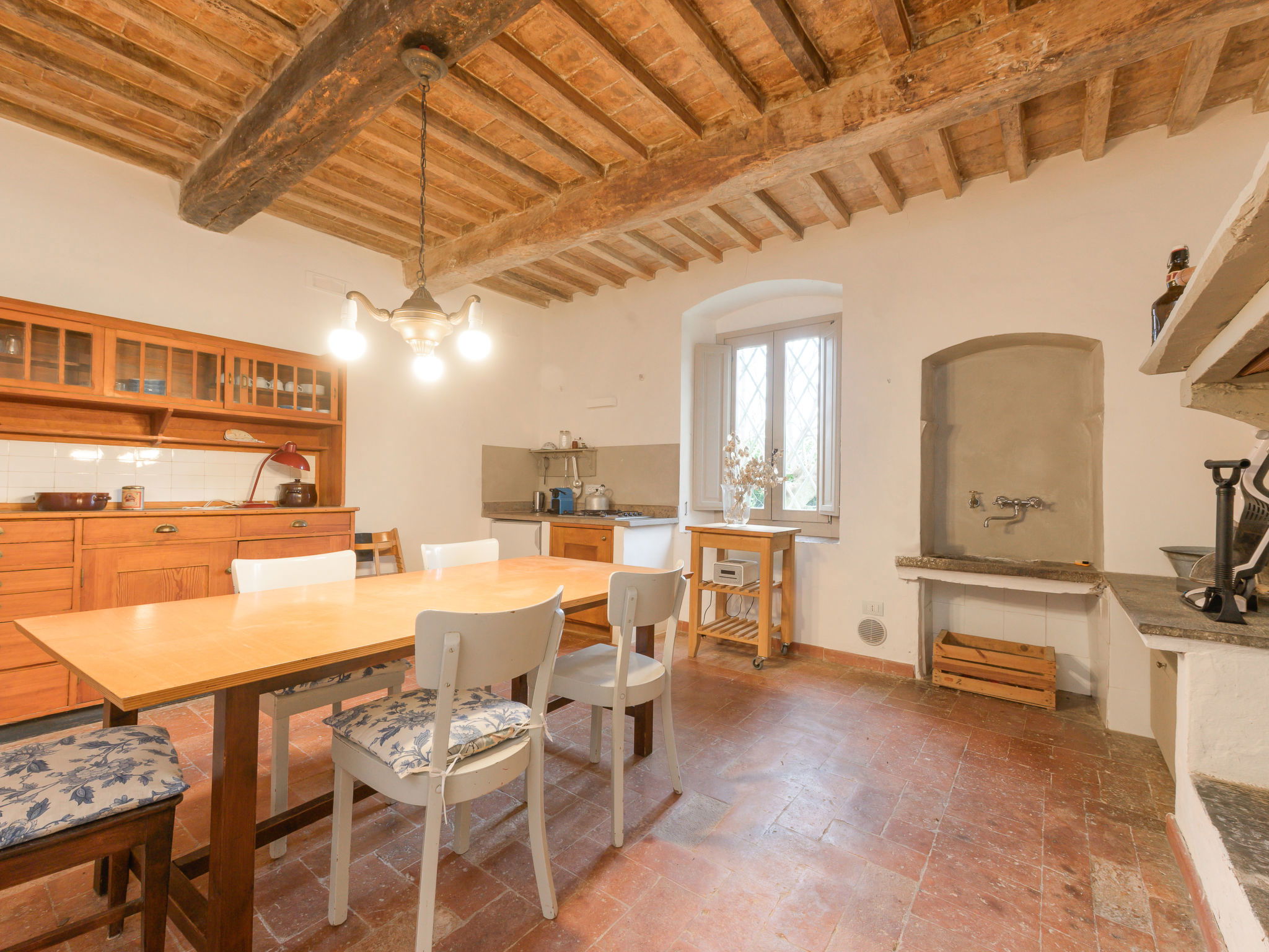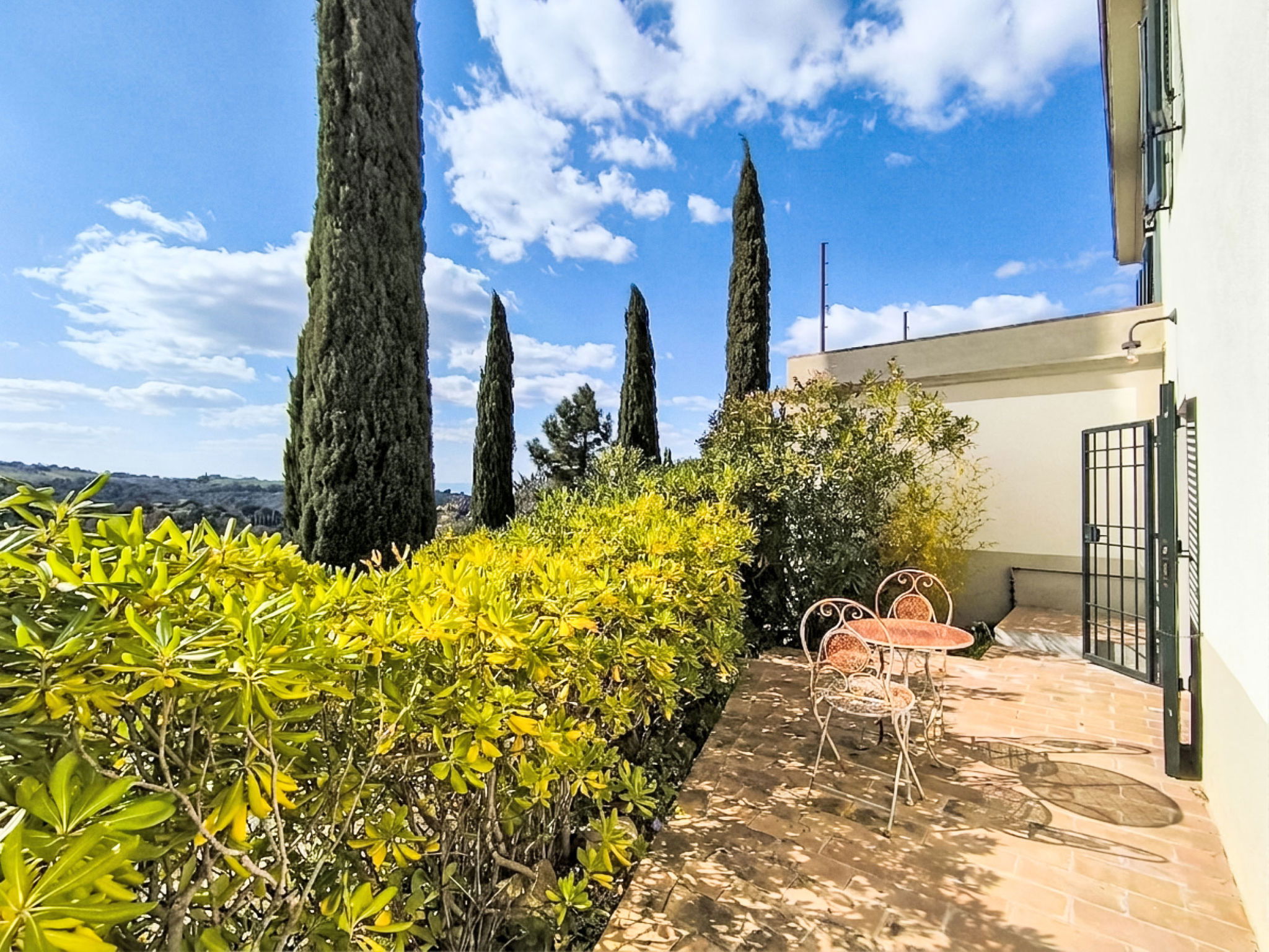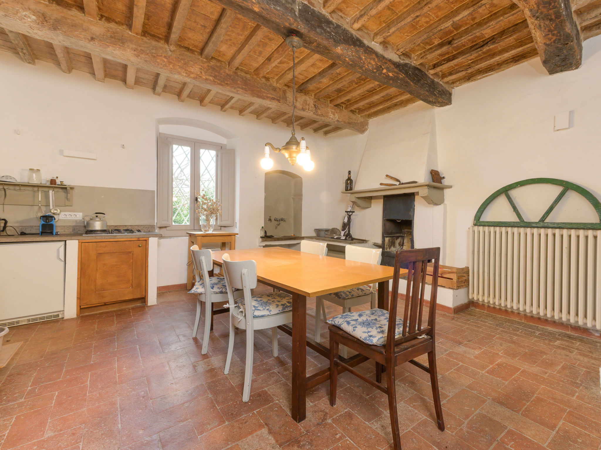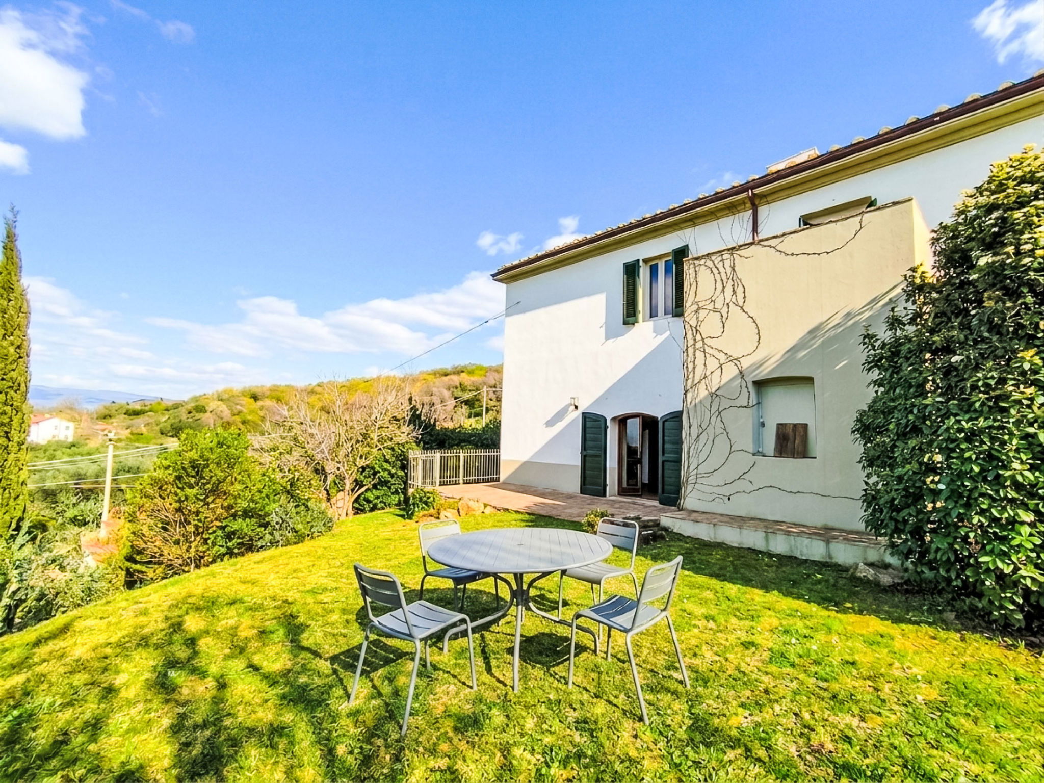 8-room villa 210 m2 on 2 levels. Tasteful and stylish furnishings: living room with TV. Exit to the garden, to the terrace. 1 double bedroom. 1 large double bedroom with sloping ceilings. Exit to the balcony. 1 double bedroom with shower/WC. Exit to the garden. Large kitchen (4 gas rings, pizza oven) with dining table. Shower/WC, double hand-basin. Upper floor: open large living/dining room with TV and wood-burning stove. Exit to the terrace. Living room. 1 double bedroom with wood-burning stove. 2 double bedrooms. Open kitchen (oven, dishwasher, 5 gas rings, toaster, kettle, microwave). Exit to the terrace. 2 showers/WC. Balcony, 2 terraces, patio. Terrace furniture. Marvellous panoramic view of the countryside. Facilities: washing machine, iron, hair dryer. Internet (WiFi, free). Parking (roofed). Please note: non-smokers only. Maximum 1 pet/ dog allowed. Private entrance, smoke alarm, fire extinguisher. IT053023C2T9WPGO9V