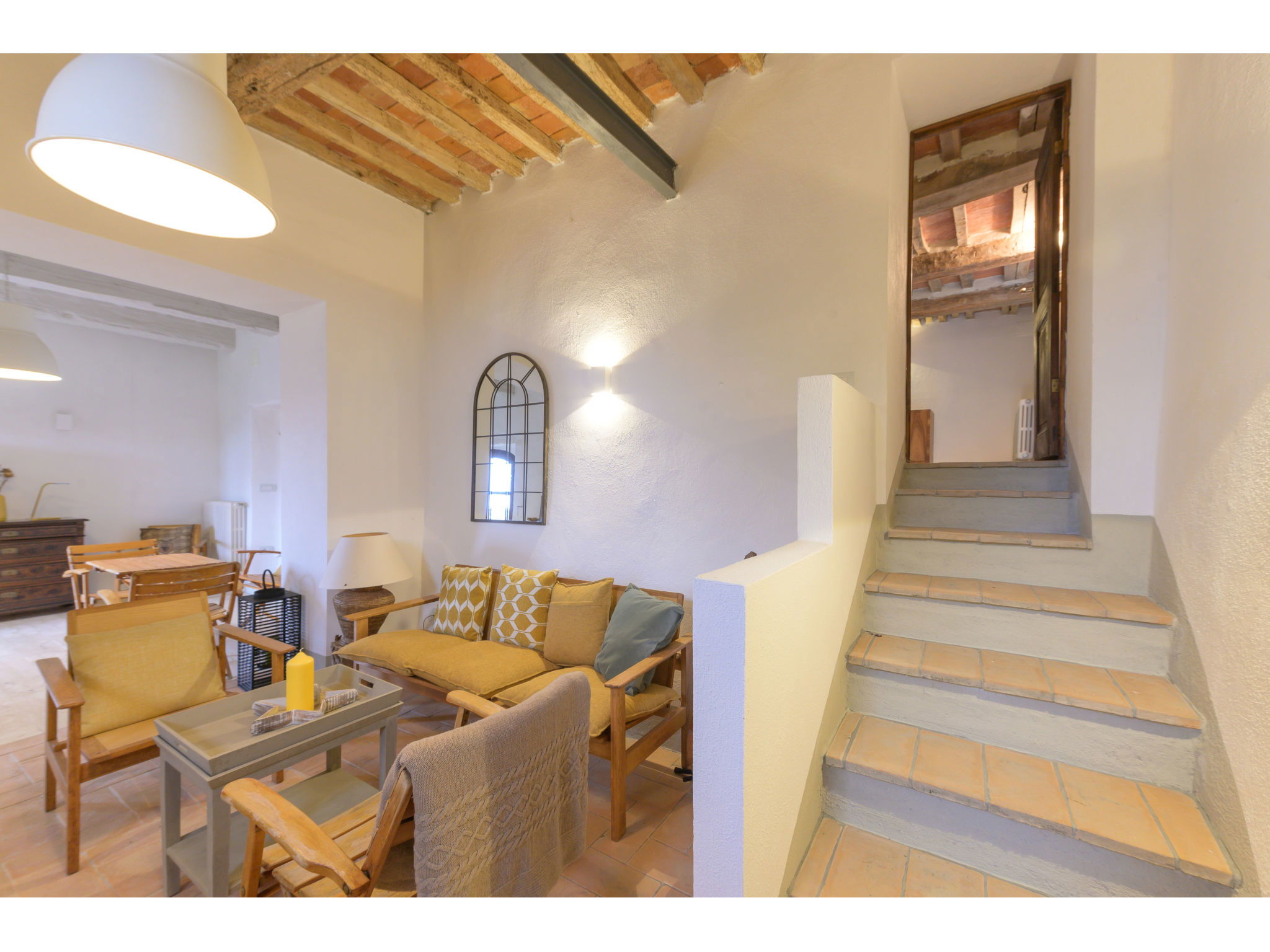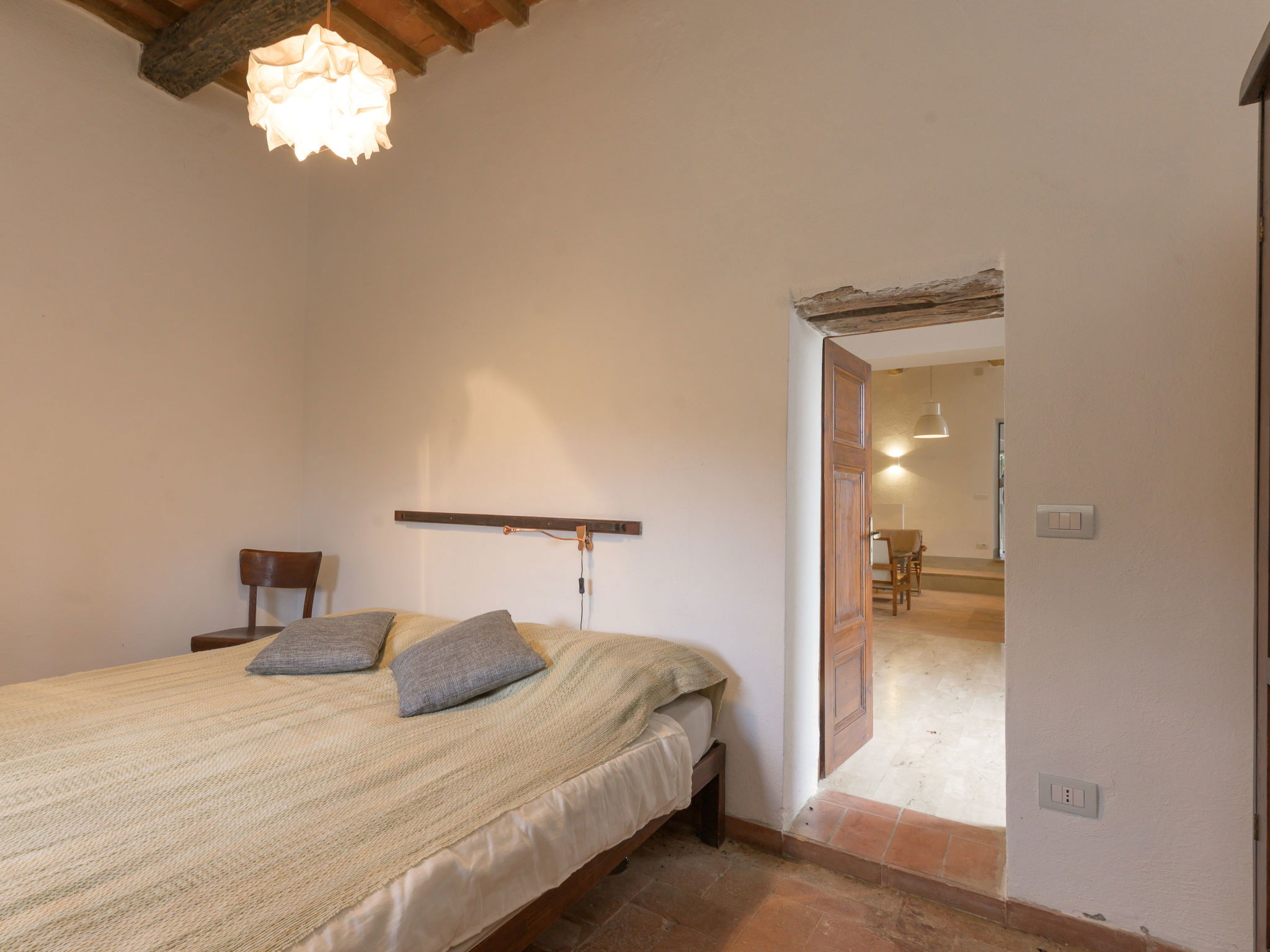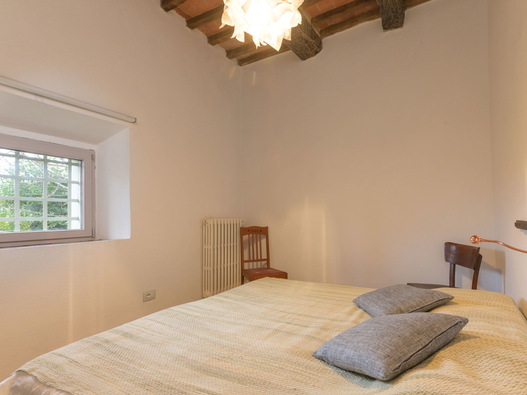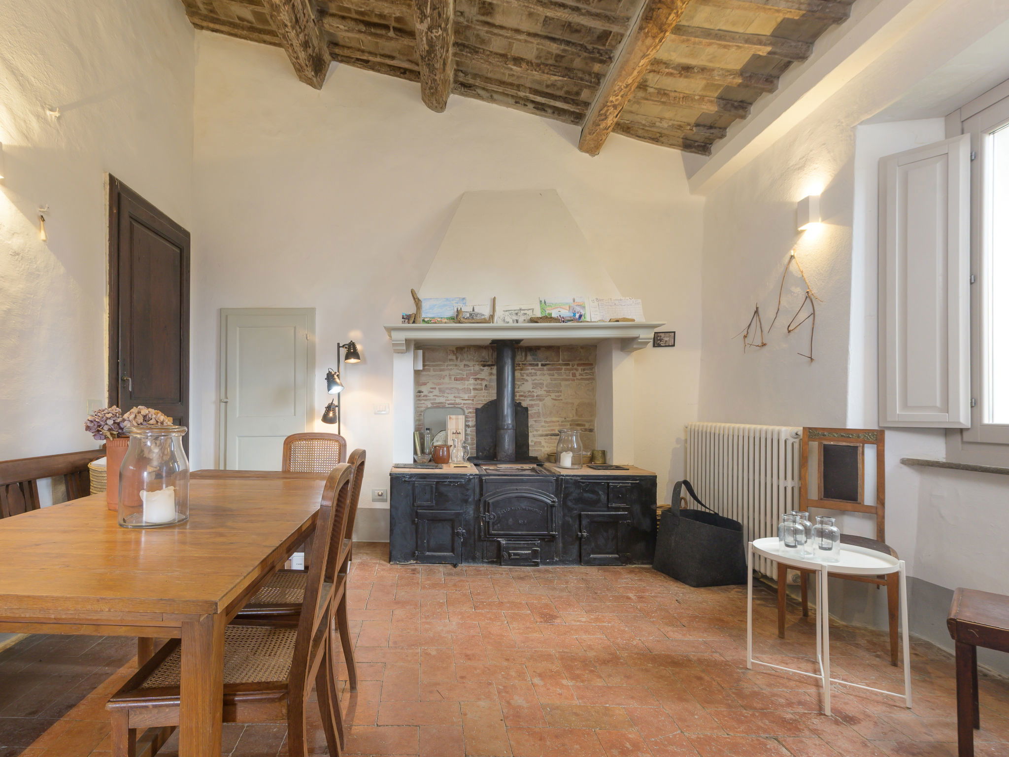 8-room villa 210 m2 on 2 levels. Tasteful and stylish furnishings: living room with TV. Exit to the garden, to the terrace. 1 double bedroom. 1 large double bedroom with sloping ceilings. Exit to the balcony. 1 double bedroom with shower/WC. Exit to the garden. Large kitchen (4 gas rings, pizza oven) with dining table. Shower/WC, double hand-basin. Upper floor: open large living/dining room with TV and wood-burning stove. Exit to the terrace. Living room. 1 double bedroom with wood-burning stove. 2 double bedrooms. Open kitchen (oven, dishwasher, 5 gas rings, toaster, kettle, microwave). Exit to the terrace. 2 showers/WC. Balcony, 2 terraces, patio. Terrace furniture. Marvellous panoramic view of the countryside. Facilities: washing machine, iron, hair dryer. Internet (WiFi, free). Parking (roofed). Please note: non-smokers only. Maximum 1 pet/ dog allowed. Private entrance, smoke alarm, fire extinguisher. IT053023C2T9WPGO9V