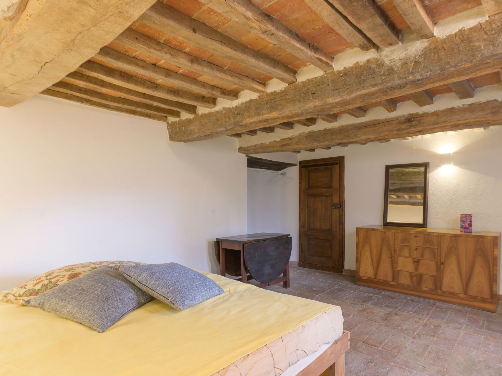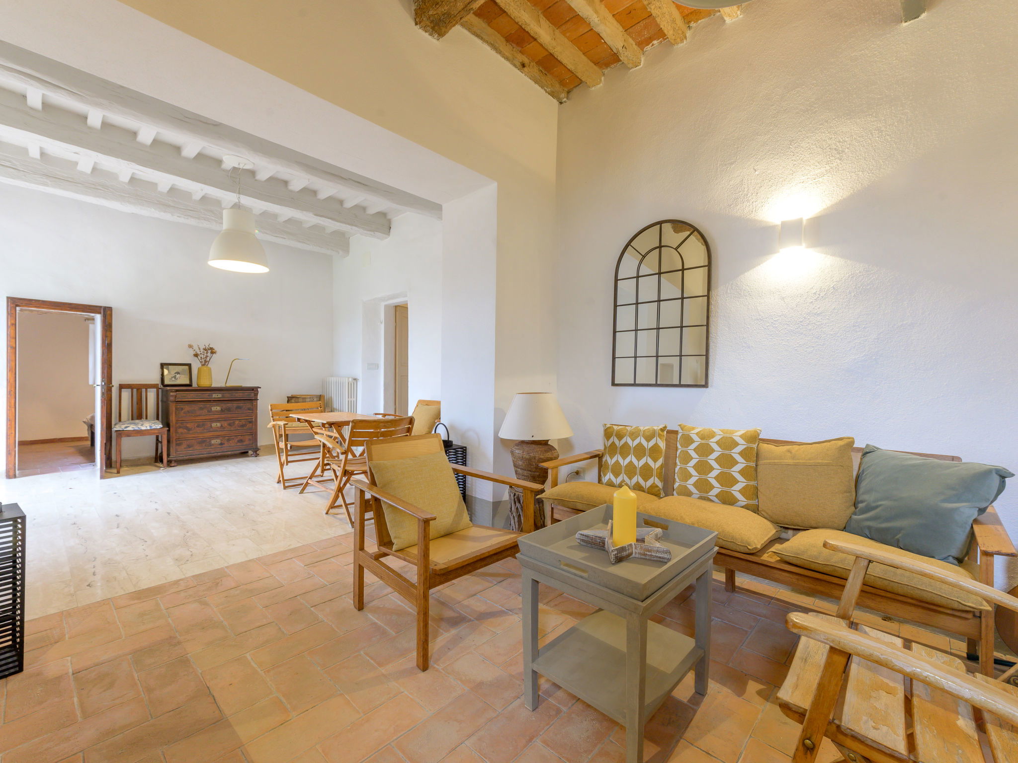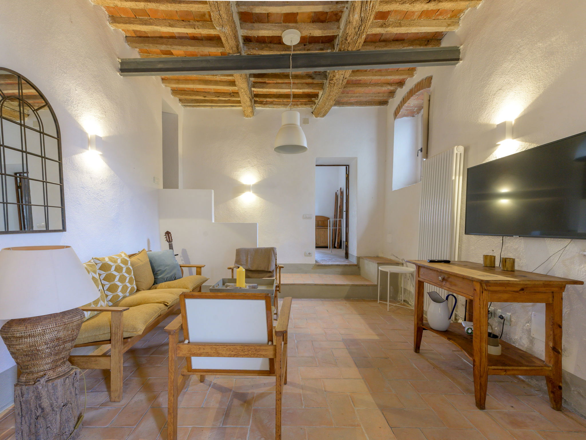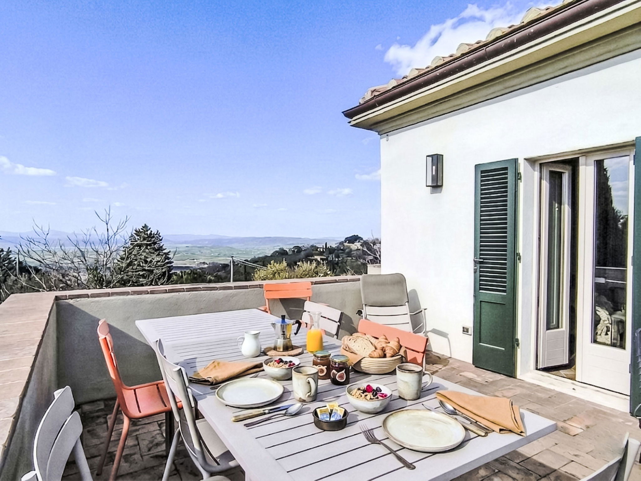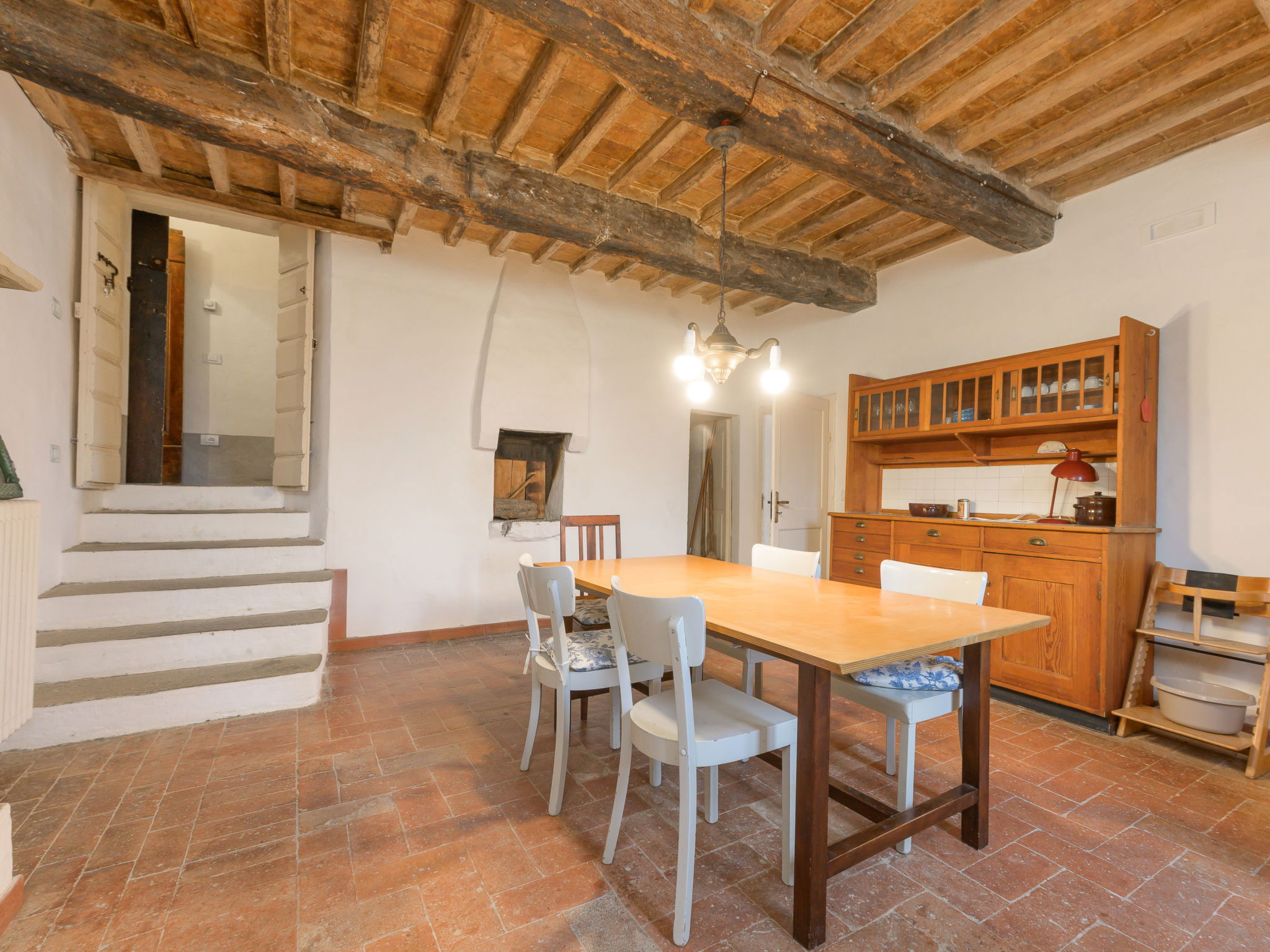 8-room villa 210 m2 on 2 levels. Tasteful and stylish furnishings: living room with TV. Exit to the garden, to the terrace. 1 double bedroom. 1 large double bedroom with sloping ceilings. Exit to the balcony. 1 double bedroom with shower/WC. Exit to the garden. Large kitchen (4 gas rings, pizza oven) with dining table. Shower/WC, double hand-basin. Upper floor: open large living/dining room with TV and wood-burning stove. Exit to the terrace. Living room. 1 double bedroom with wood-burning stove. 2 double bedrooms. Open kitchen (oven, dishwasher, 5 gas rings, toaster, kettle, microwave). Exit to the terrace. 2 showers/WC. Balcony, 2 terraces, patio. Terrace furniture. Marvellous panoramic view of the countryside. Facilities: washing machine, iron, hair dryer. Internet (WiFi, free). Parking (roofed). Please note: non-smokers only. Maximum 1 pet/ dog allowed. Private entrance, smoke alarm, fire extinguisher. IT053023C2T9WPGO9V