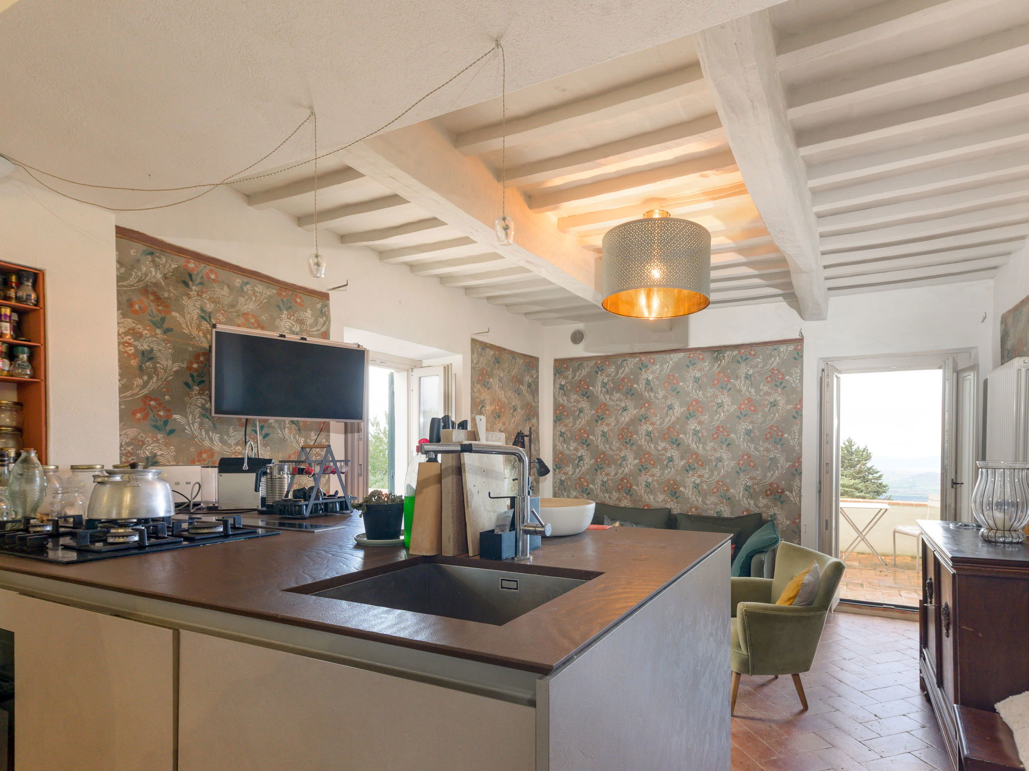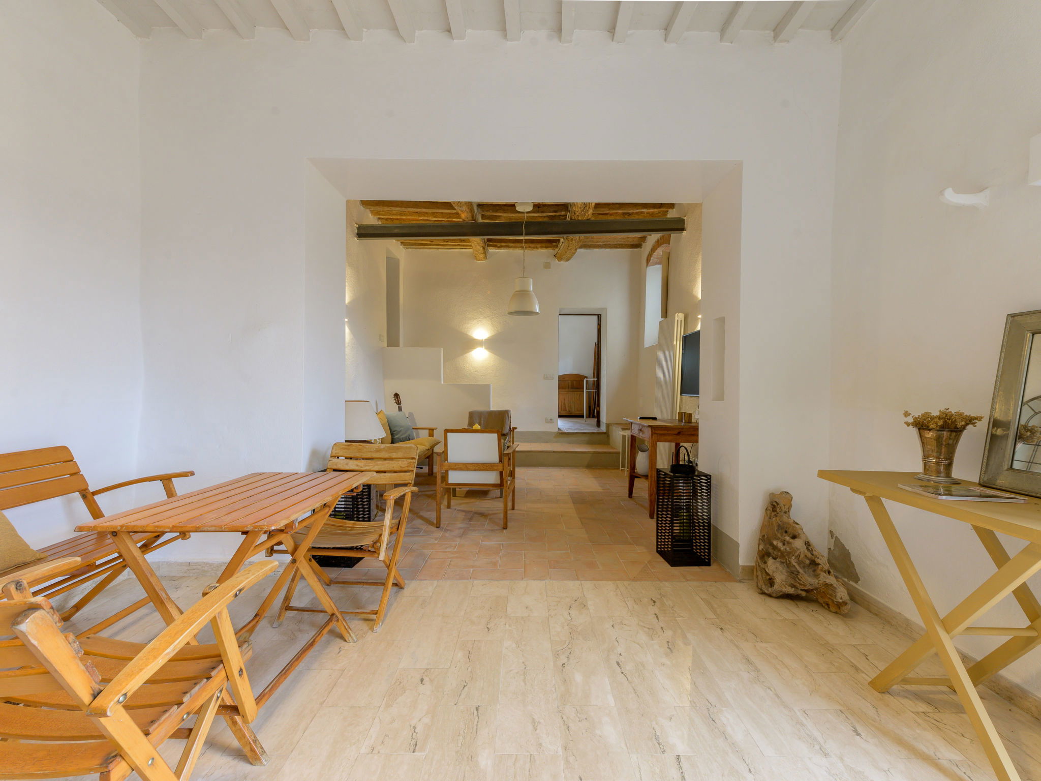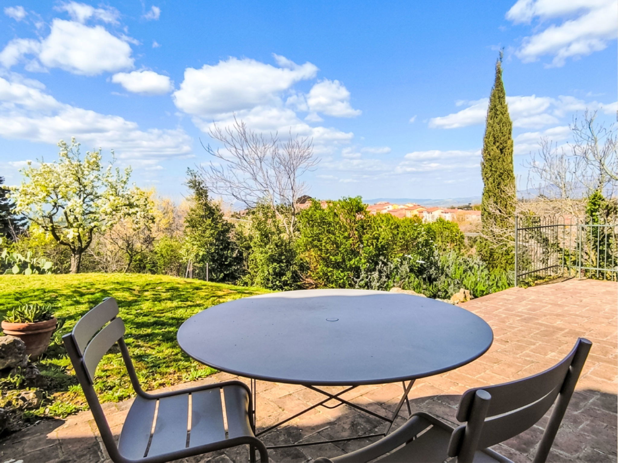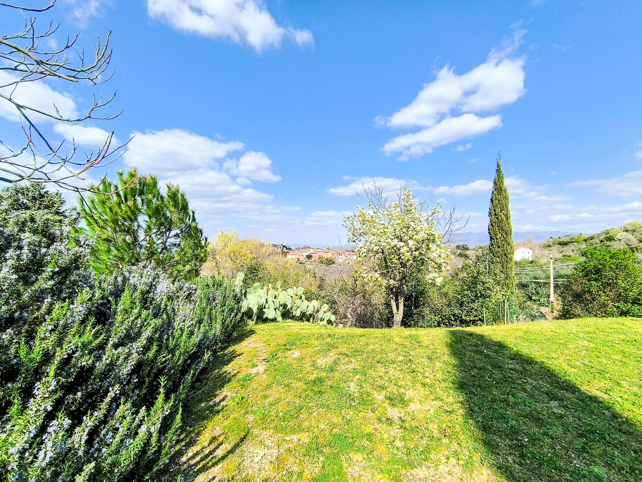 8-room villa 210 m2 on 2 levels. Tasteful and stylish furnishings: living room with TV. Exit to the garden, to the terrace. 1 double bedroom. 1 large double bedroom with sloping ceilings. Exit to the balcony. 1 double bedroom with shower/WC. Exit to the garden. Large kitchen (4 gas rings, pizza oven) with dining table. Shower/WC, double hand-basin. Upper floor: open large living/dining room with TV and wood-burning stove. Exit to the terrace. Living room. 1 double bedroom with wood-burning stove. 2 double bedrooms. Open kitchen (oven, dishwasher, 5 gas rings, toaster, kettle, microwave). Exit to the terrace. 2 showers/WC. Balcony, 2 terraces, patio. Terrace furniture. Marvellous panoramic view of the countryside. Facilities: washing machine, iron, hair dryer. Internet (WiFi, free). Parking (roofed). Please note: non-smokers only. Maximum 1 pet/ dog allowed. Private entrance, smoke alarm, fire extinguisher. IT053023C2T9WPGO9V