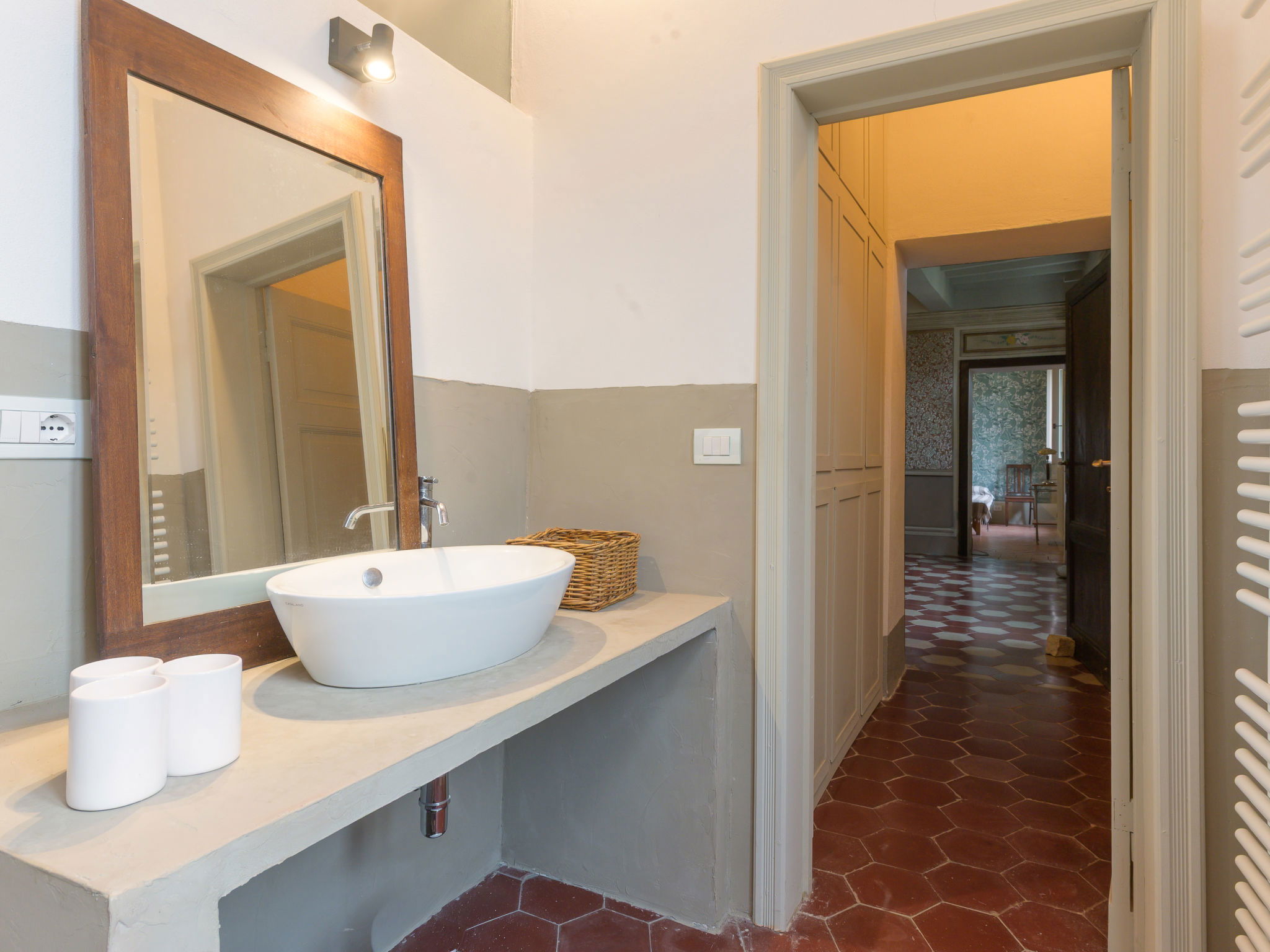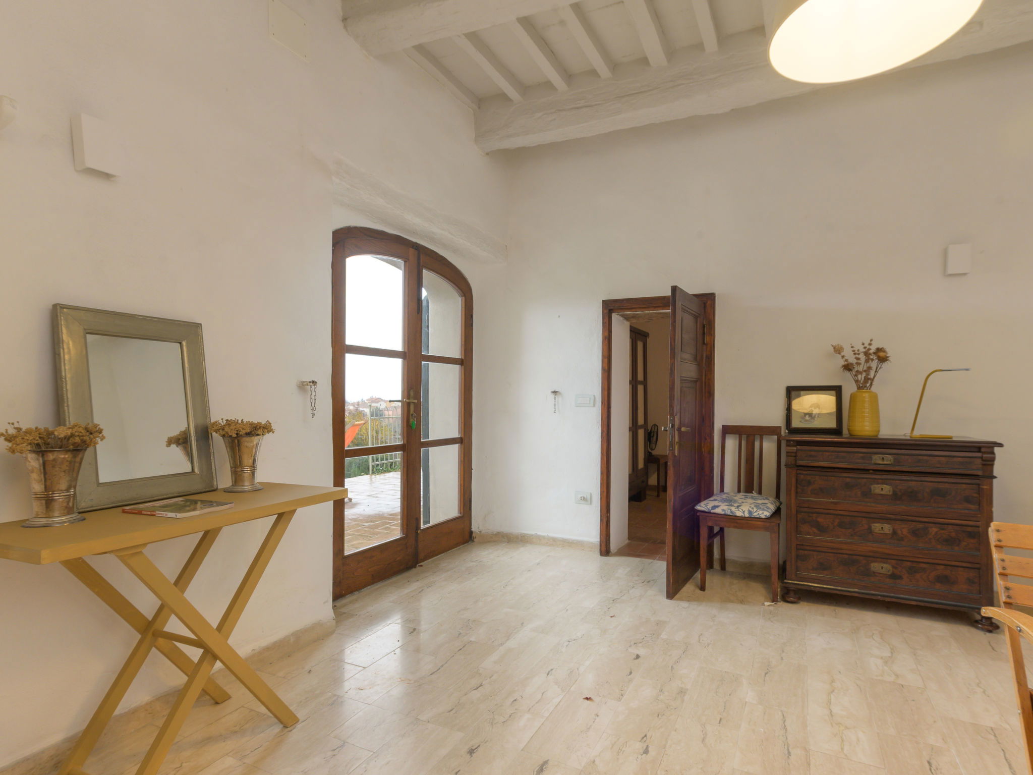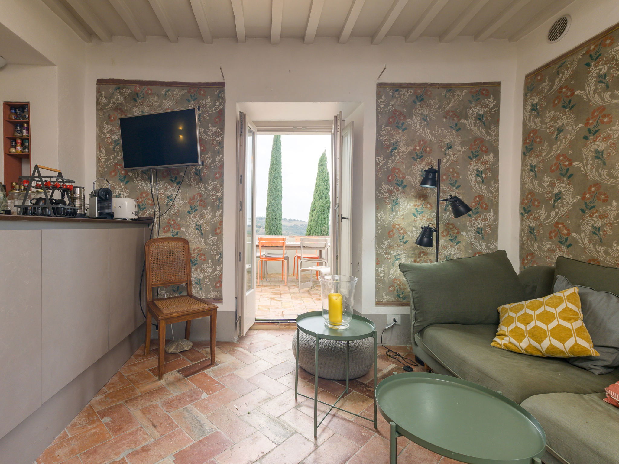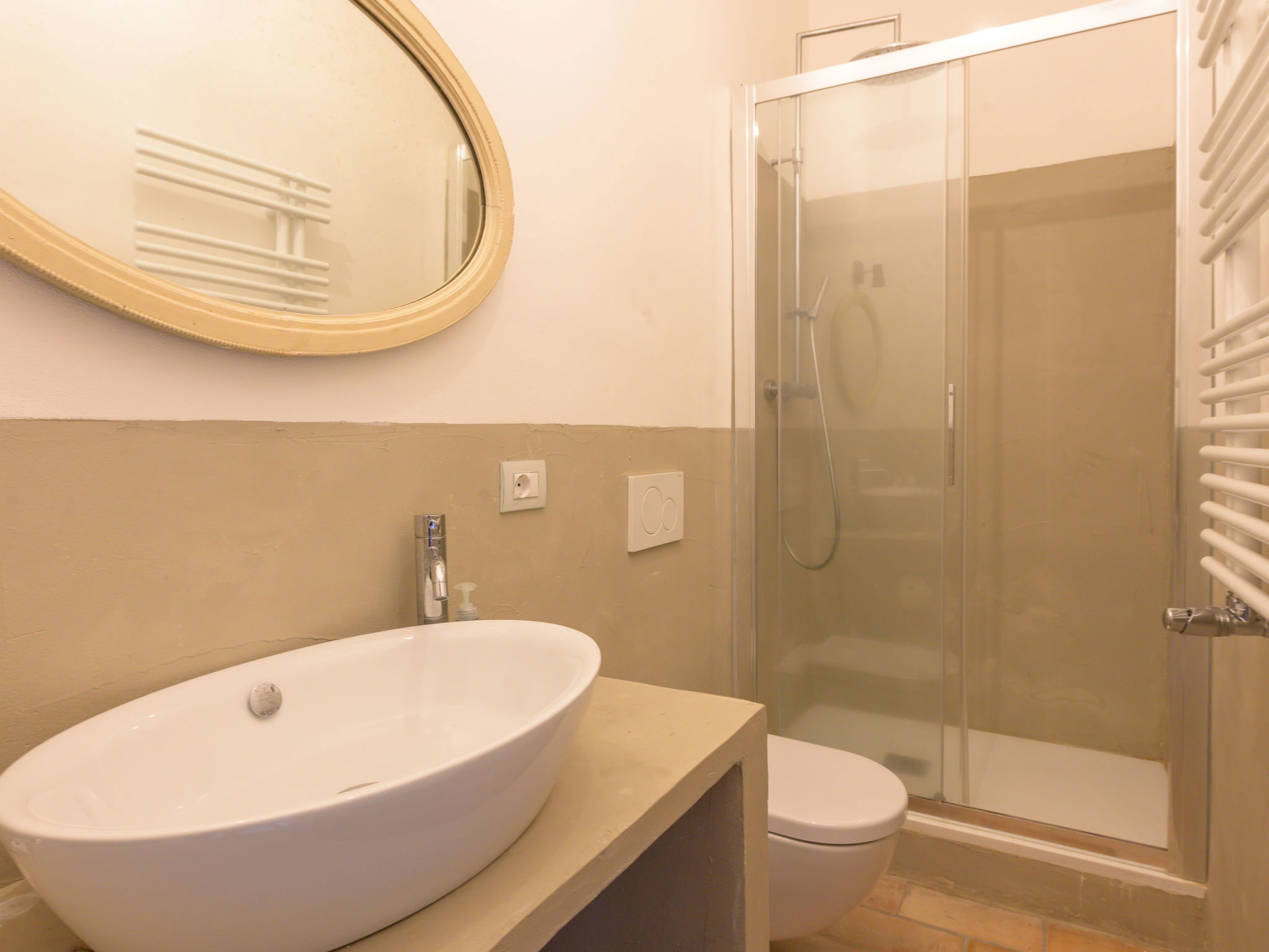 8-room villa 210 m2 on 2 levels. Tasteful and stylish furnishings: living room with TV. Exit to the garden, to the terrace. 1 double bedroom. 1 large double bedroom with sloping ceilings. Exit to the balcony. 1 double bedroom with shower/WC. Exit to the garden. Large kitchen (4 gas rings, pizza oven) with dining table. Shower/WC, double hand-basin. Upper floor: open large living/dining room with TV and wood-burning stove. Exit to the terrace. Living room. 1 double bedroom with wood-burning stove. 2 double bedrooms. Open kitchen (oven, dishwasher, 5 gas rings, toaster, kettle, microwave). Exit to the terrace. 2 showers/WC. Balcony, 2 terraces, patio. Terrace furniture. Marvellous panoramic view of the countryside. Facilities: washing machine, iron, hair dryer. Internet (WiFi, free). Parking (roofed). Please note: non-smokers only. Maximum 1 pet/ dog allowed. Private entrance, smoke alarm, fire extinguisher. IT053023C2T9WPGO9V