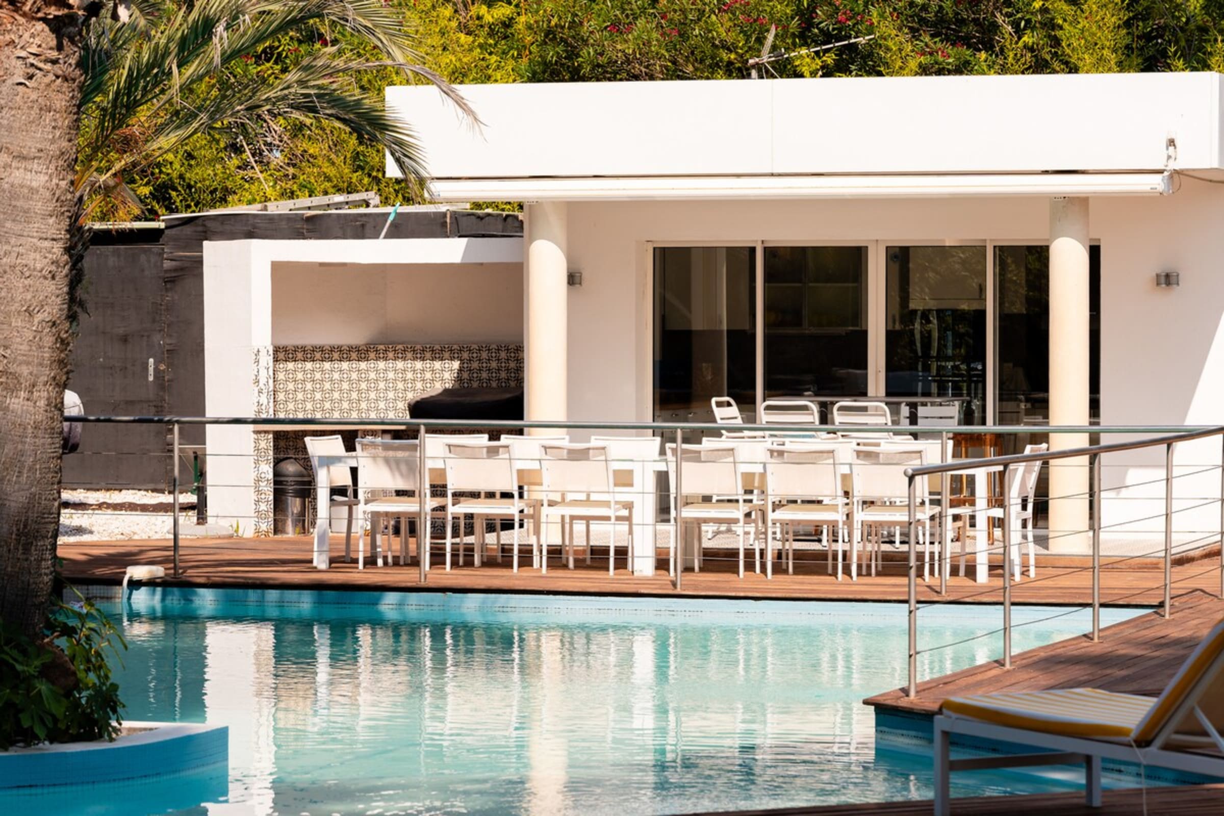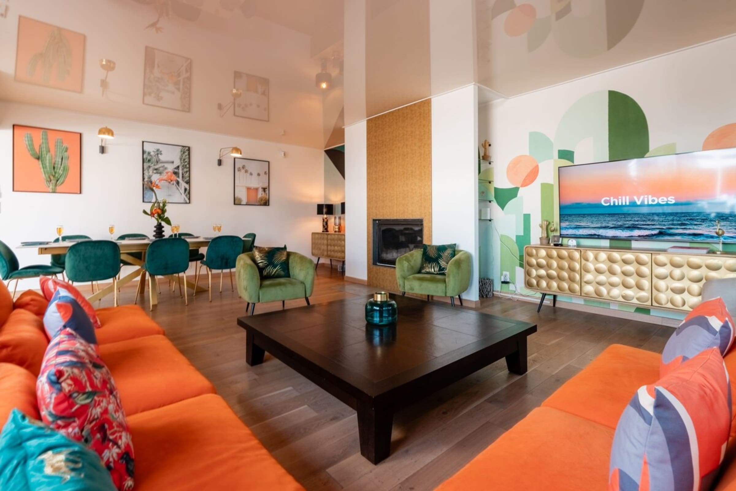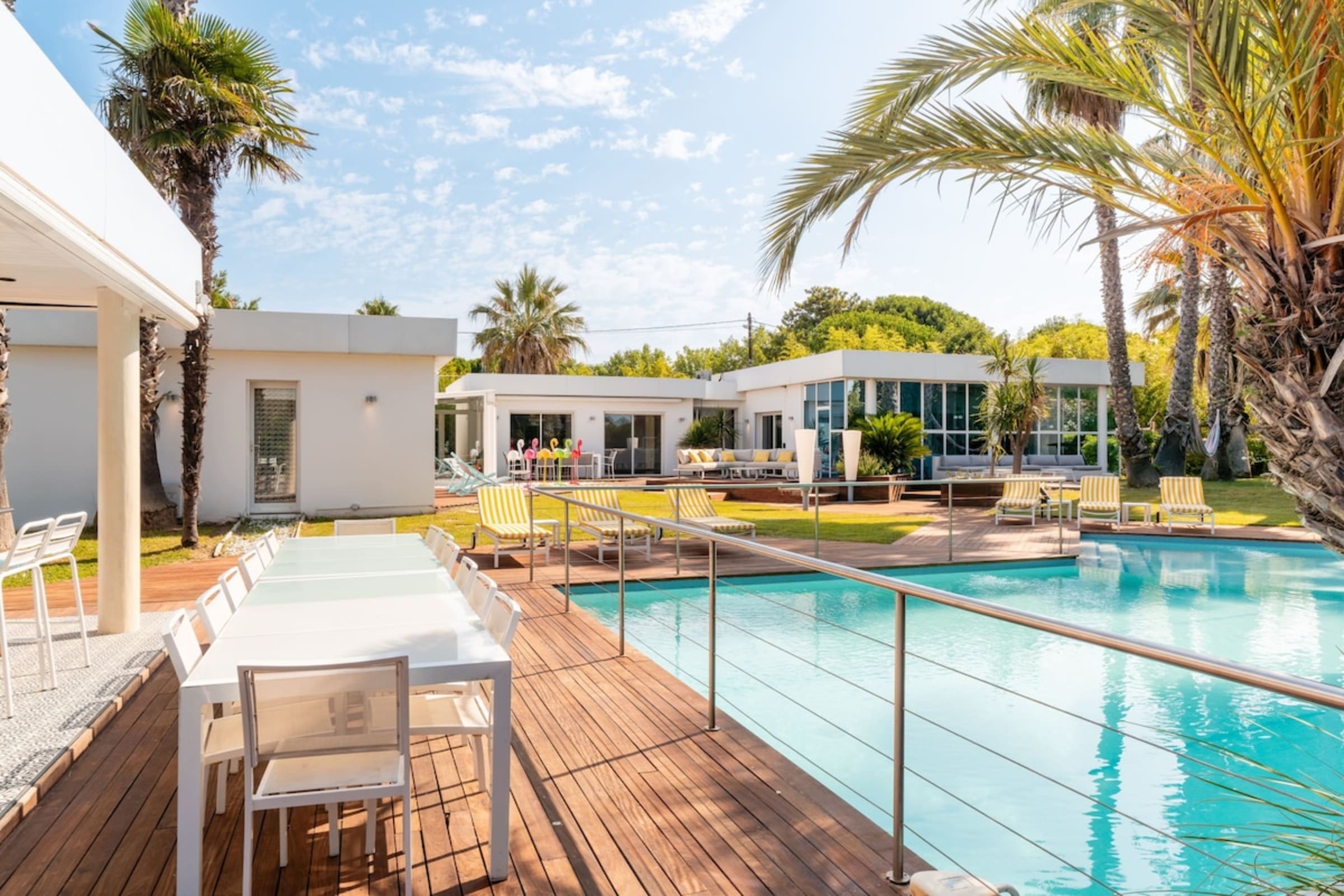 The allure of "Summer Wind" goes beyond its luxurious interiors and captivating exteriors. The unique cinema room in the basement, designed in a Speakeasy style with a bar and poker table, adds a touch of refined excitement. Additionally, the villa is equipped with several amenities for families, including car seats, high chairs, cribs, and much more.