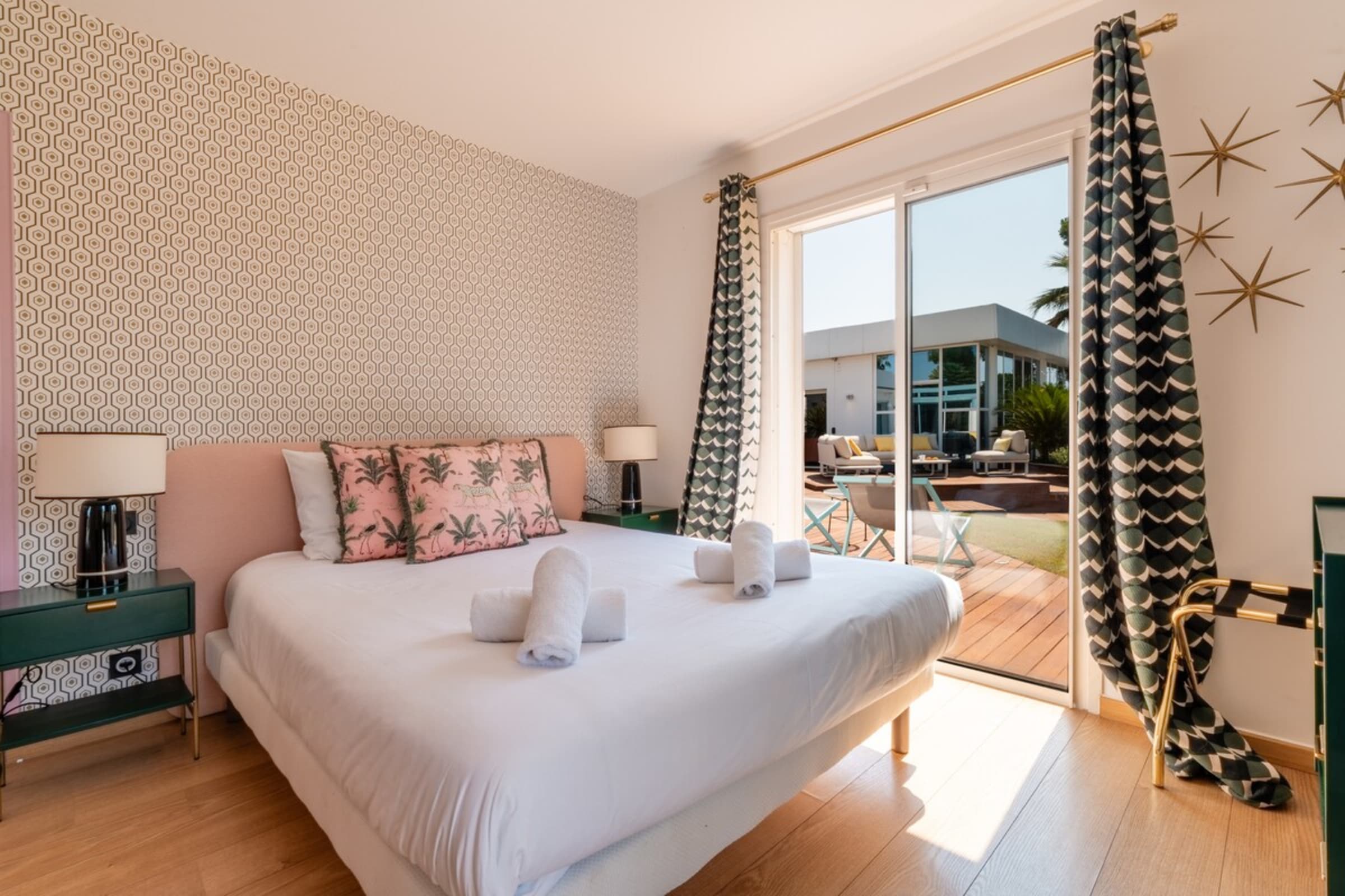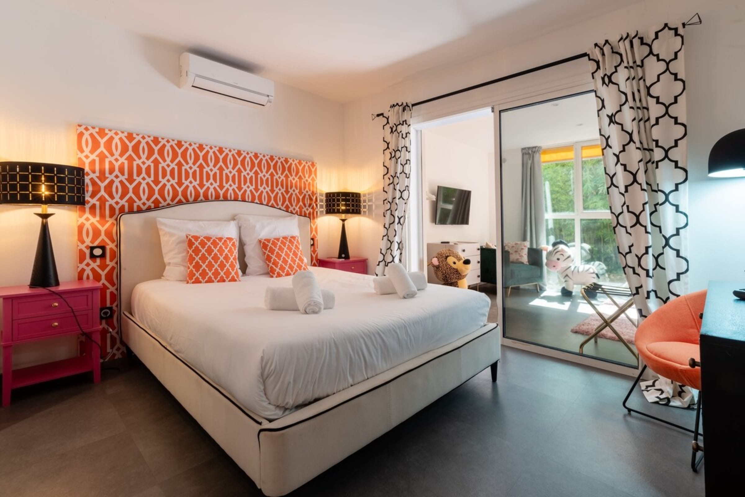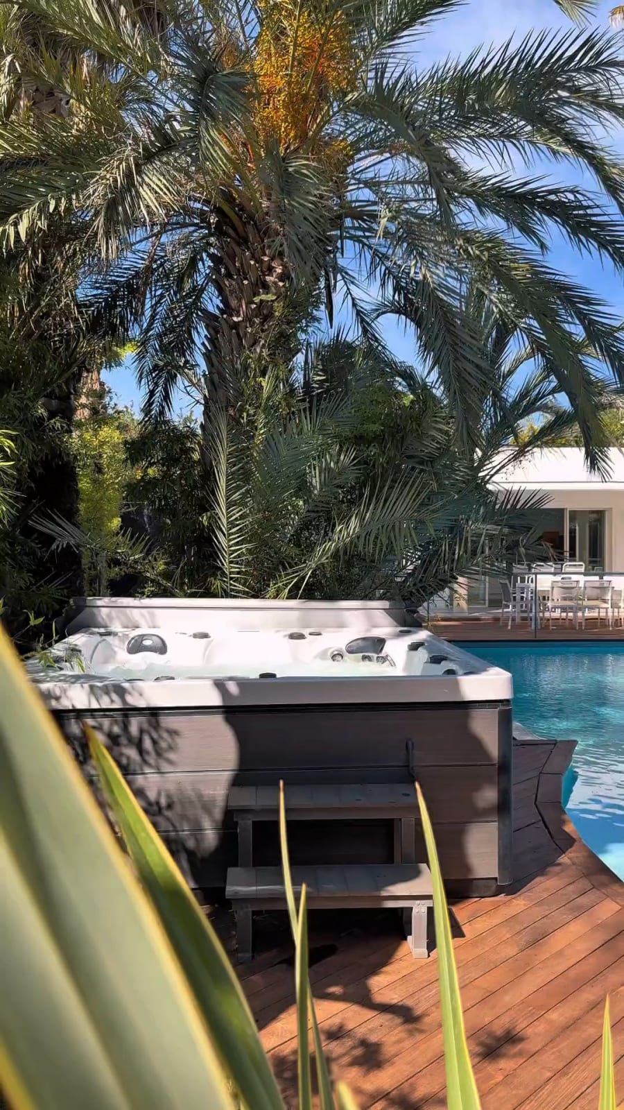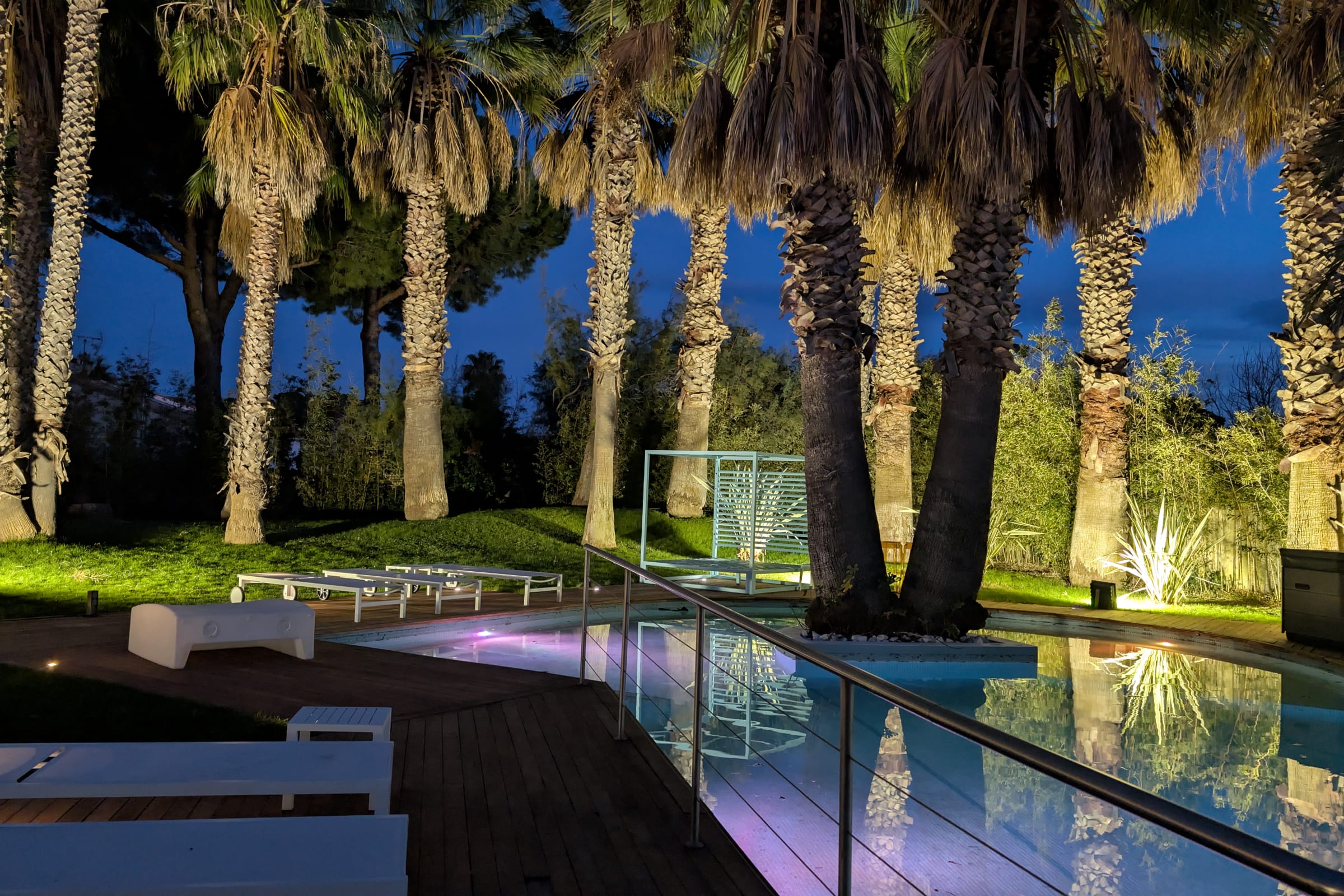With 8 sumptuously adorned bedrooms, "Summer Wind" is perfect for those seeking family moments and tranquility. The dynamic and colorful interiors of the villa reflect the charm of Mediterranean living. Stepping outside, the vast garden, adorned with numerous palm trees, surrounds a 12x5m pool with an island featuring two palm trees, a summer kitchen, and a jacuzzi – a true relaxation oasis.