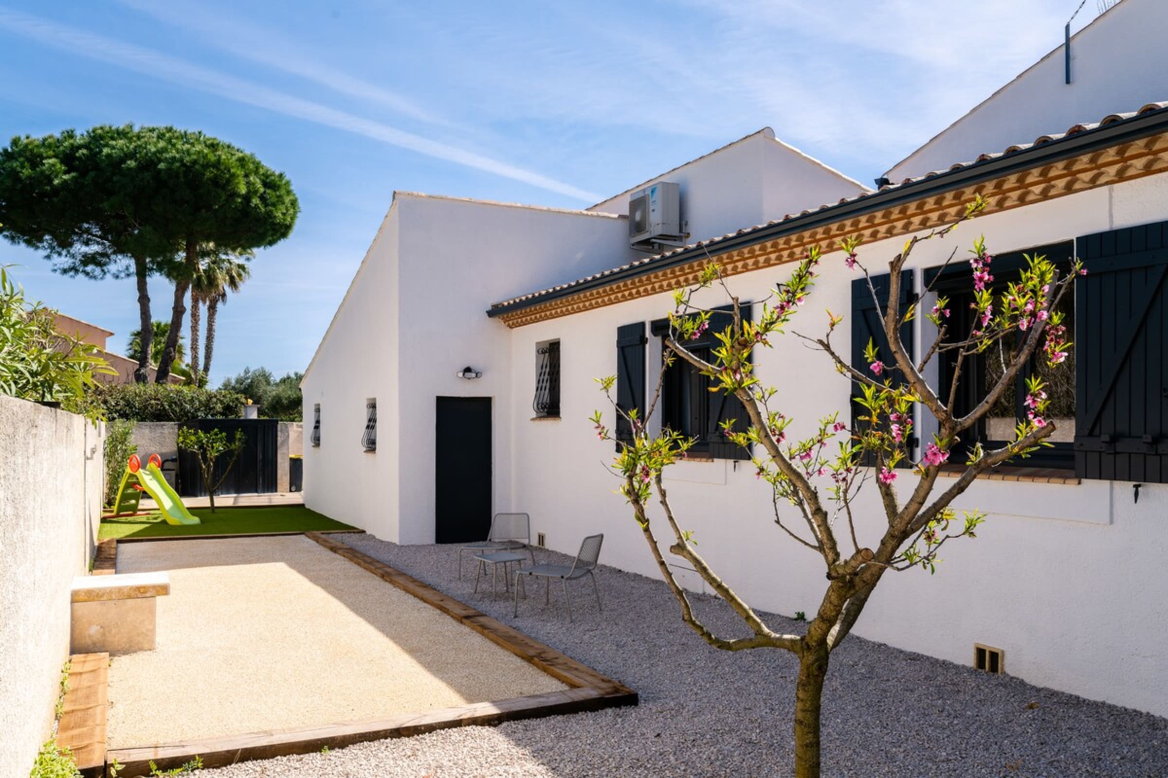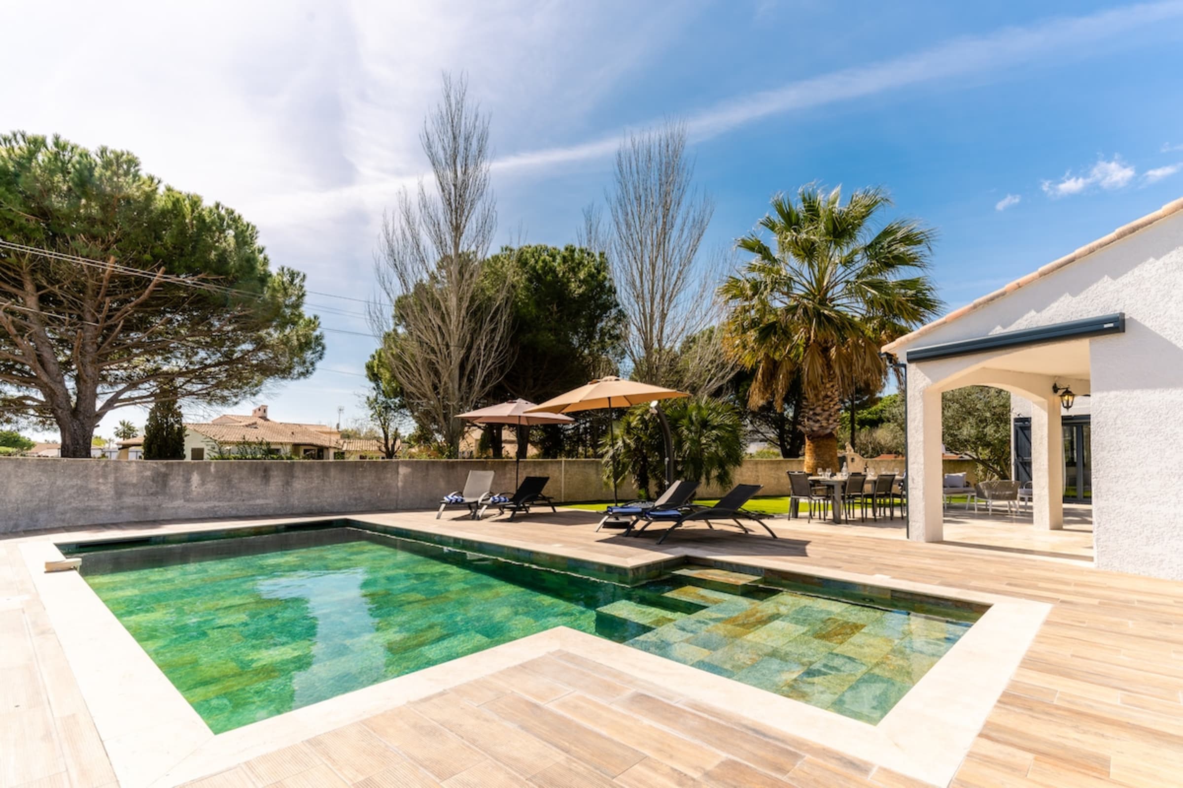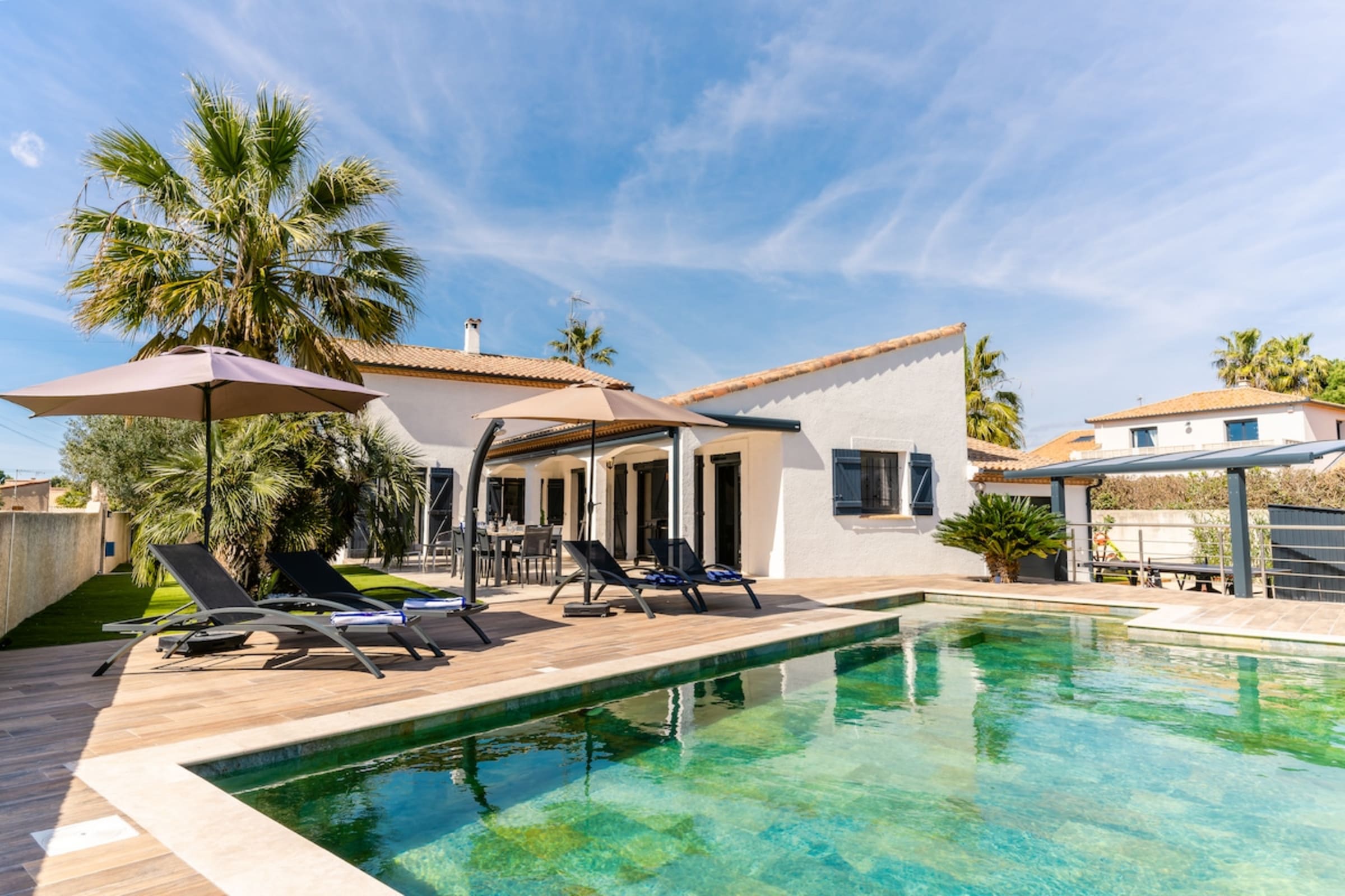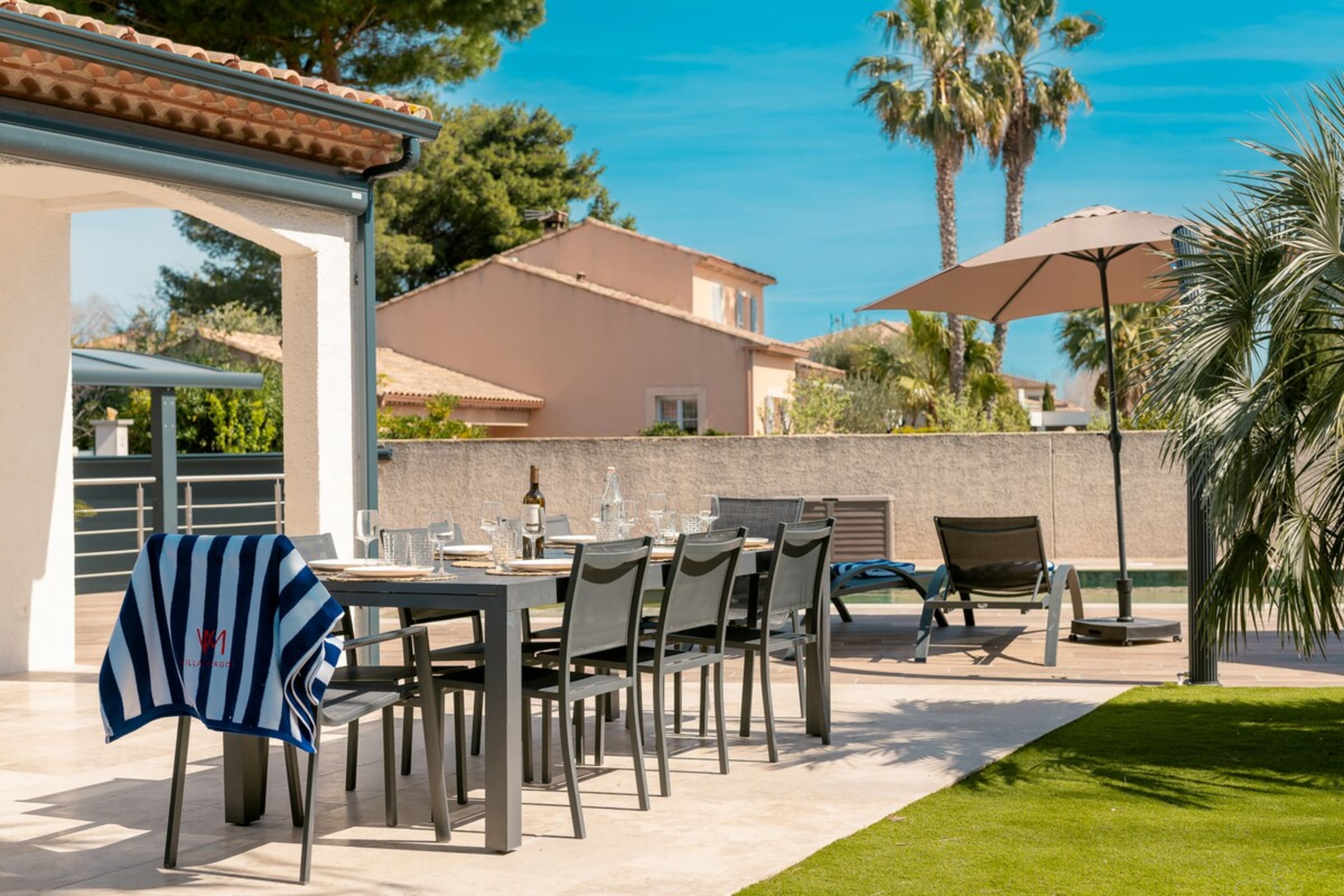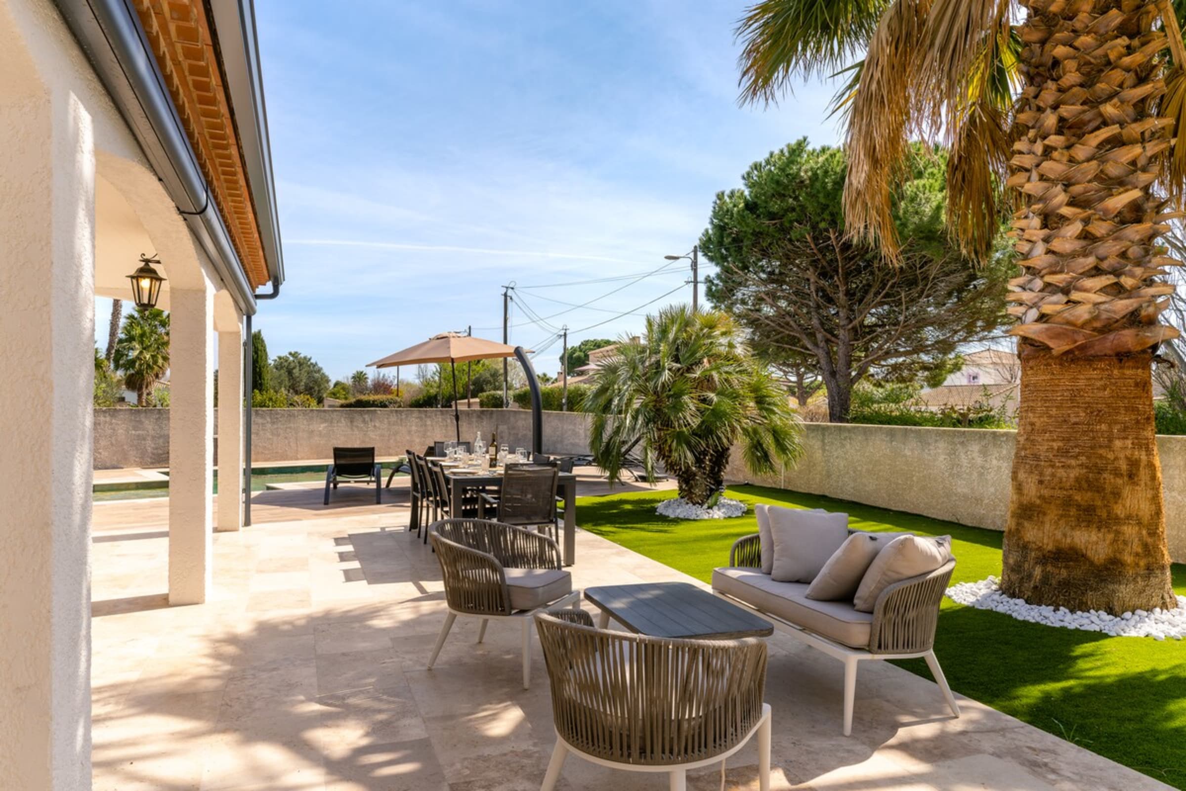 Just 500 m from the sea (about a 5-minute walk), Villa Margot is a serene, stylish hideaway. The Bali-stone pool sets a resort mood: invigorating morning dips, lazy shade-and-sun afternoons, and sunset apéritifs by the water. High-end furnishings and refined finishes make everything easy and elegant.