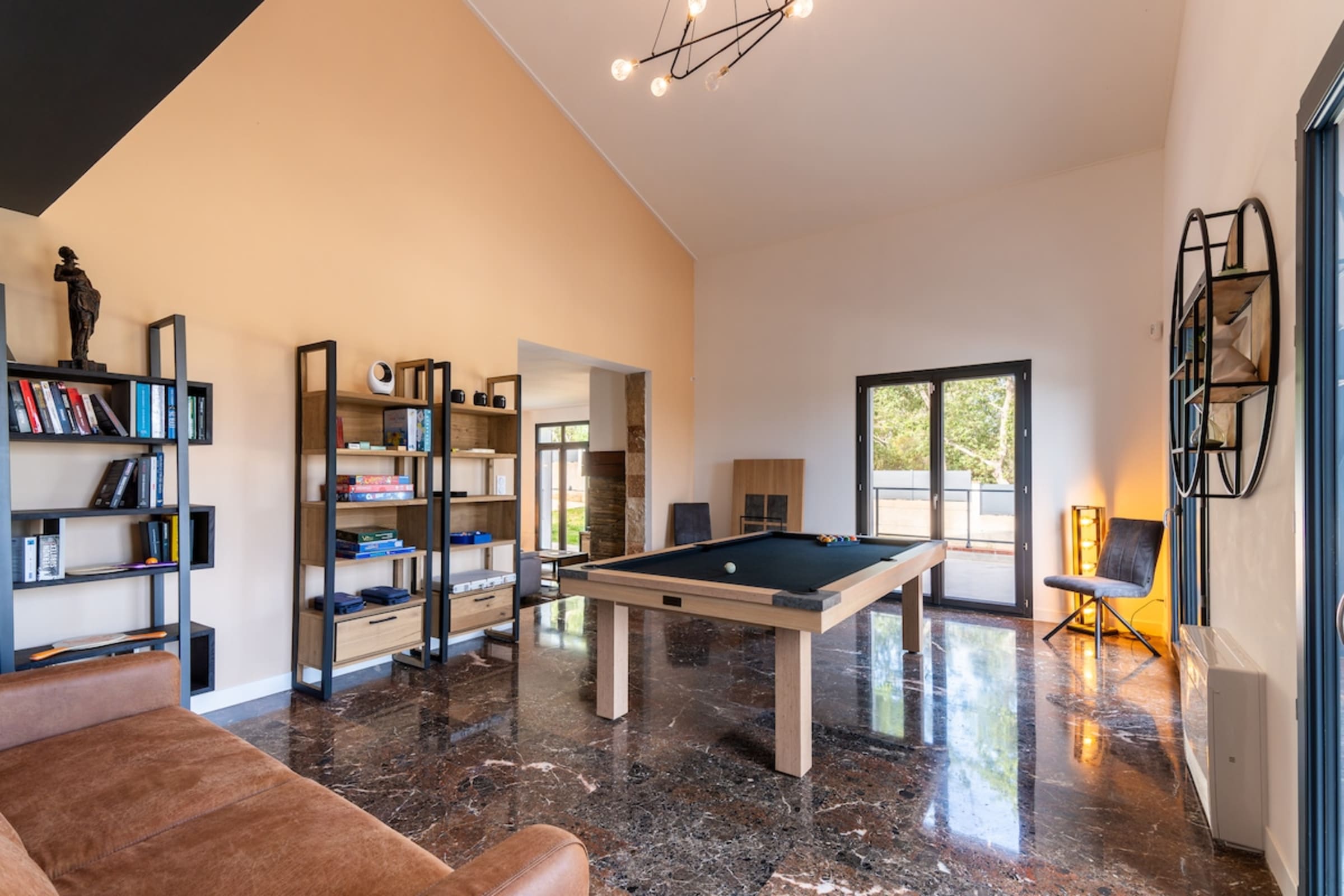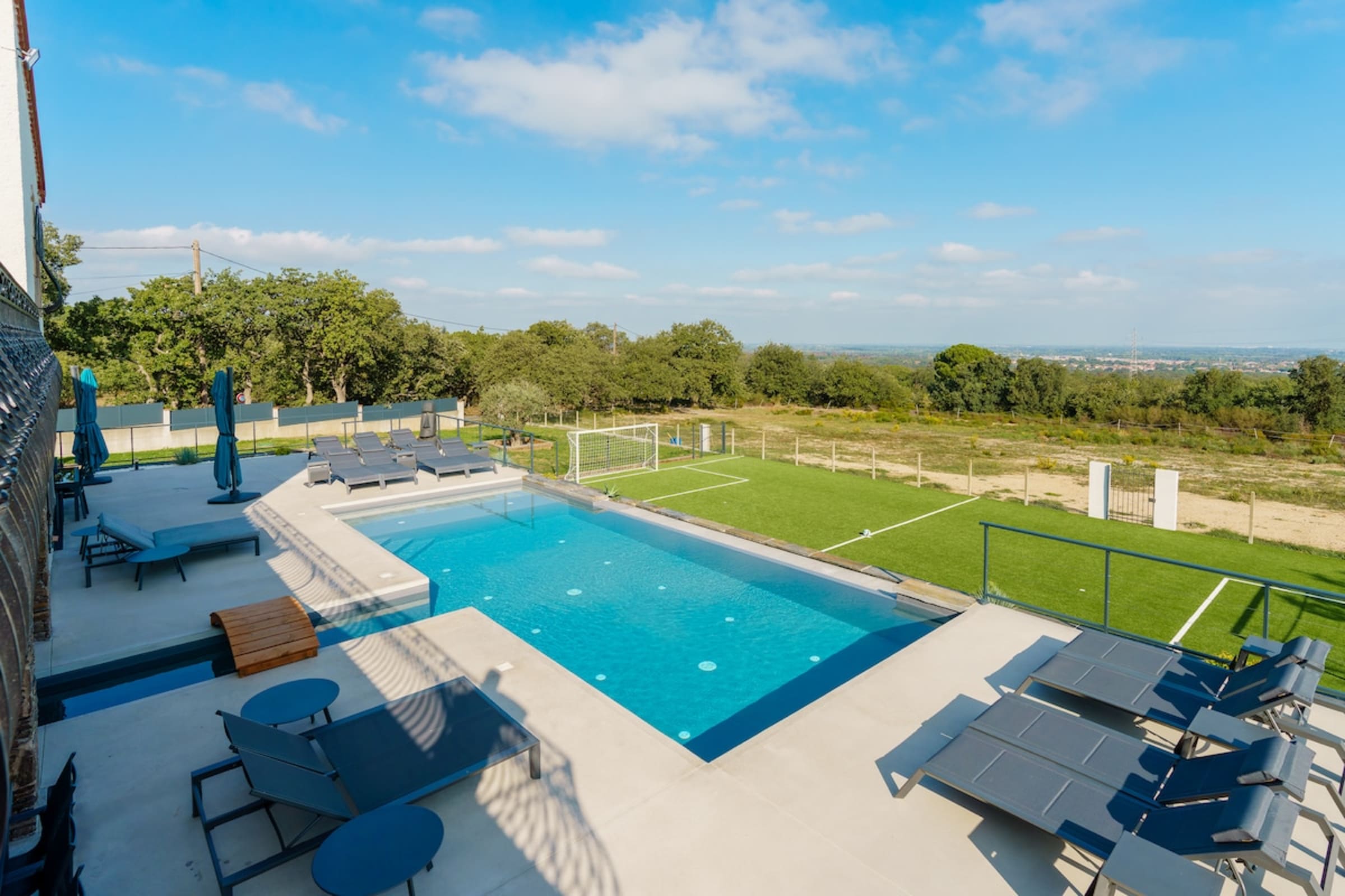 Leisure is chic and playful: soccer/football field for impromptu matches, large pétanque court for convivial games, billiards and foosball for indoor duels. Around the fire pit, relive the day as the pools sparkle; ample parking makes arrivals simple.