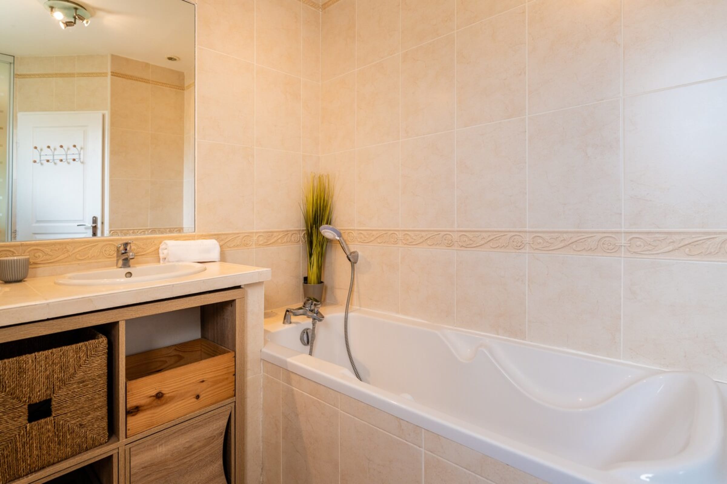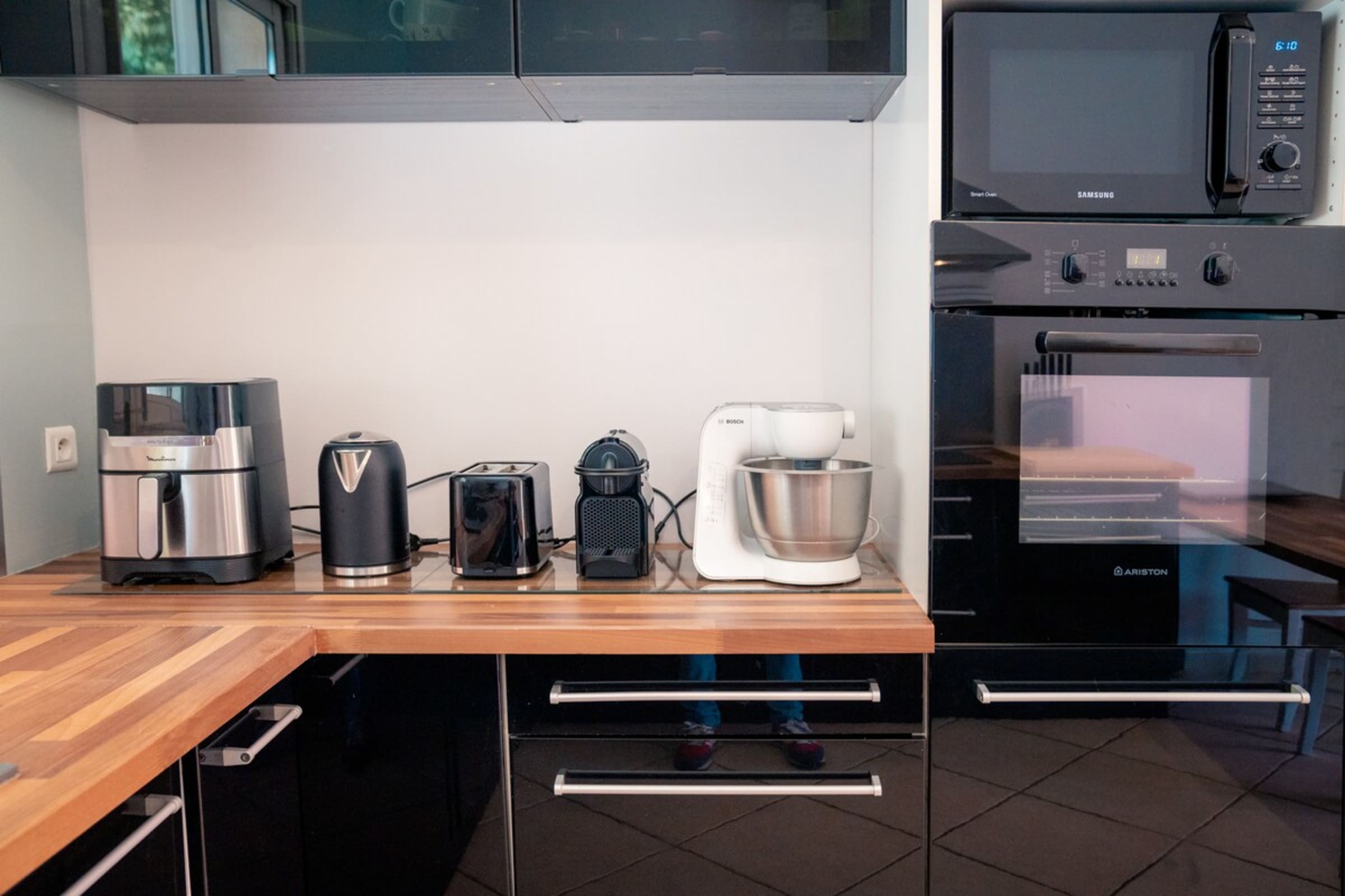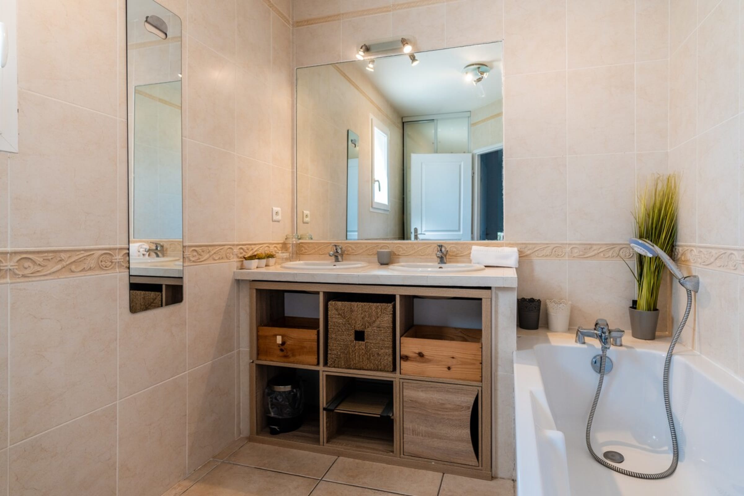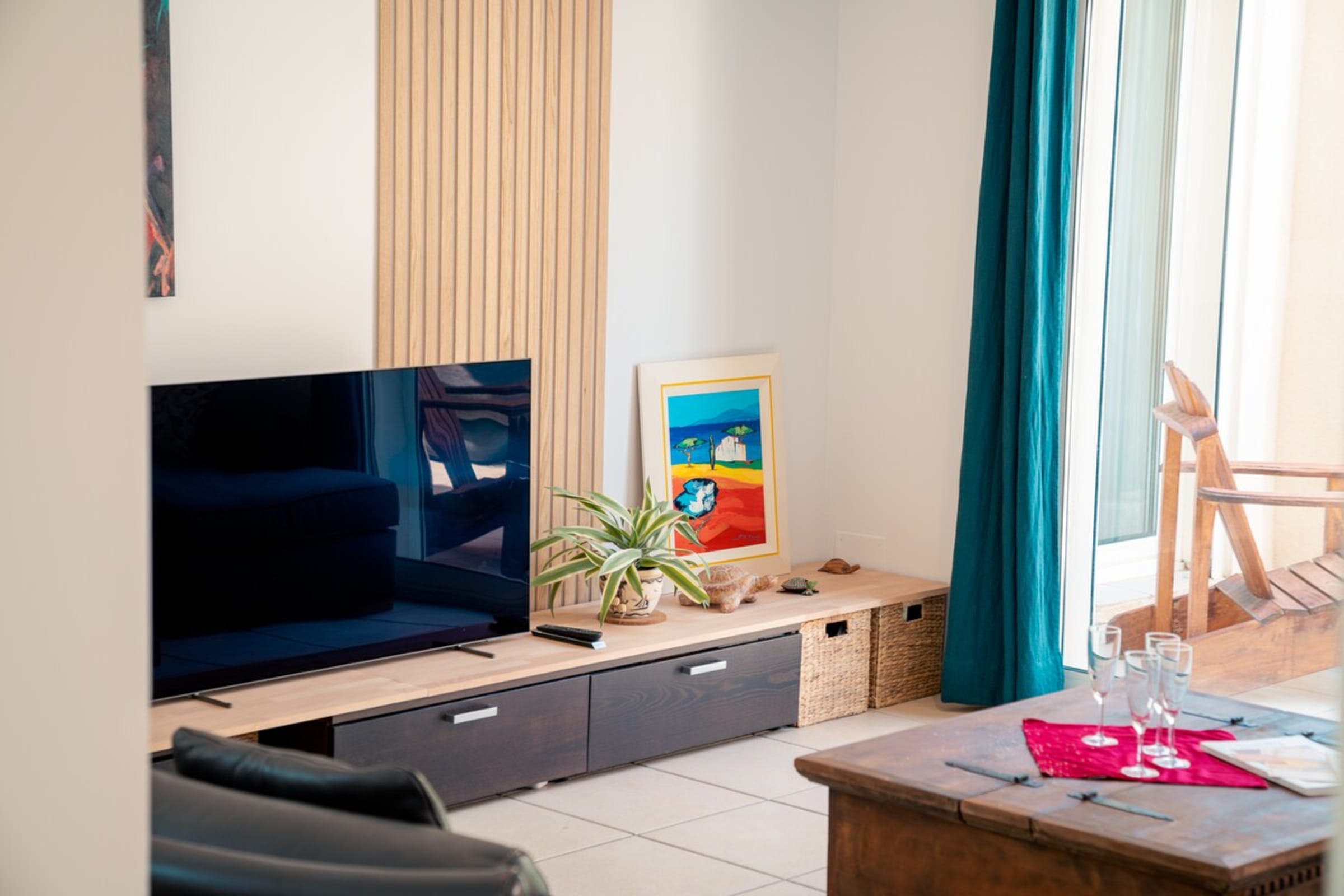 The bright living room is the heart of the house, opening to the terrace for an easy indoor–outdoor flow. Outside, the summer bar/outdoor kitchenette becomes the evening hotspot: clink glasses, nibble, chat—while the Weber barbecue steals the show. Groceries are easy: Intermarché (a French supermarket chain) is under 2 minutes by car.