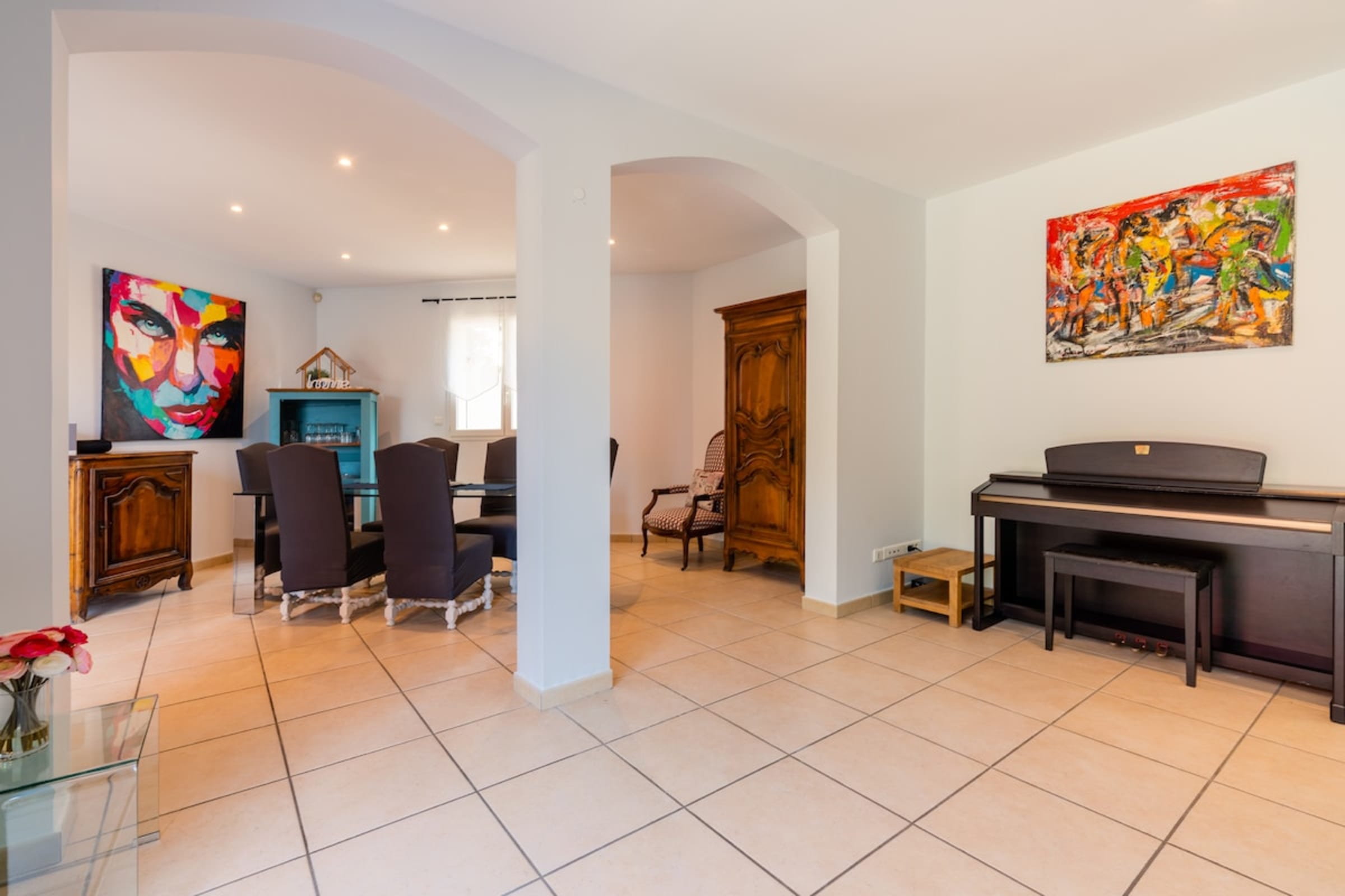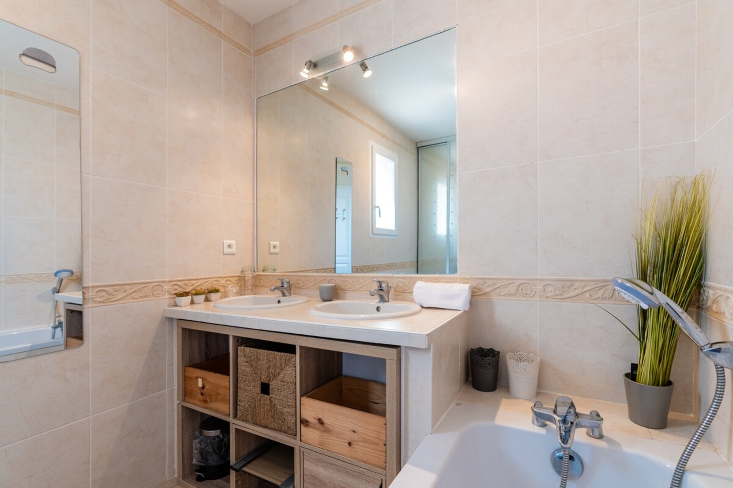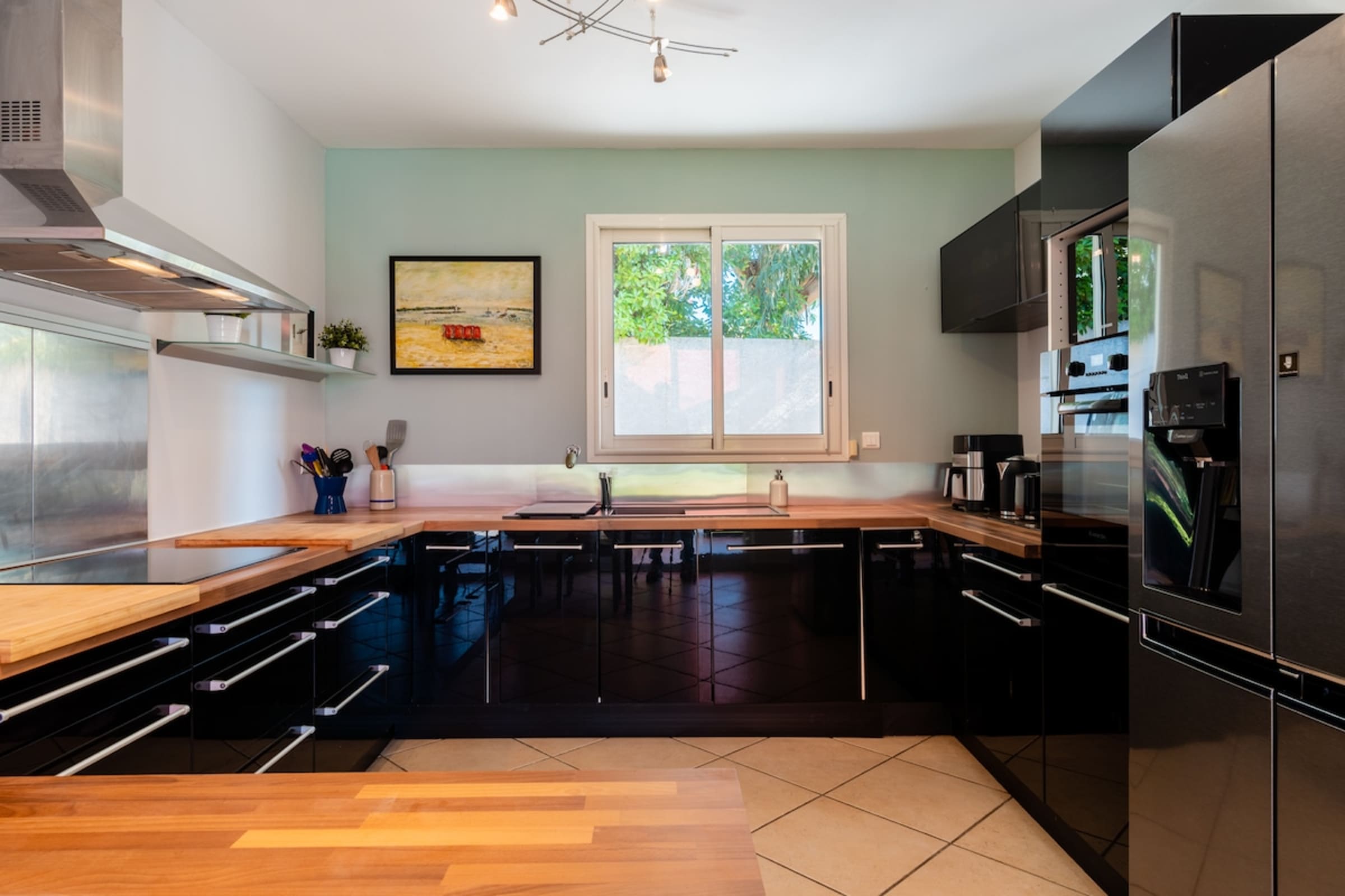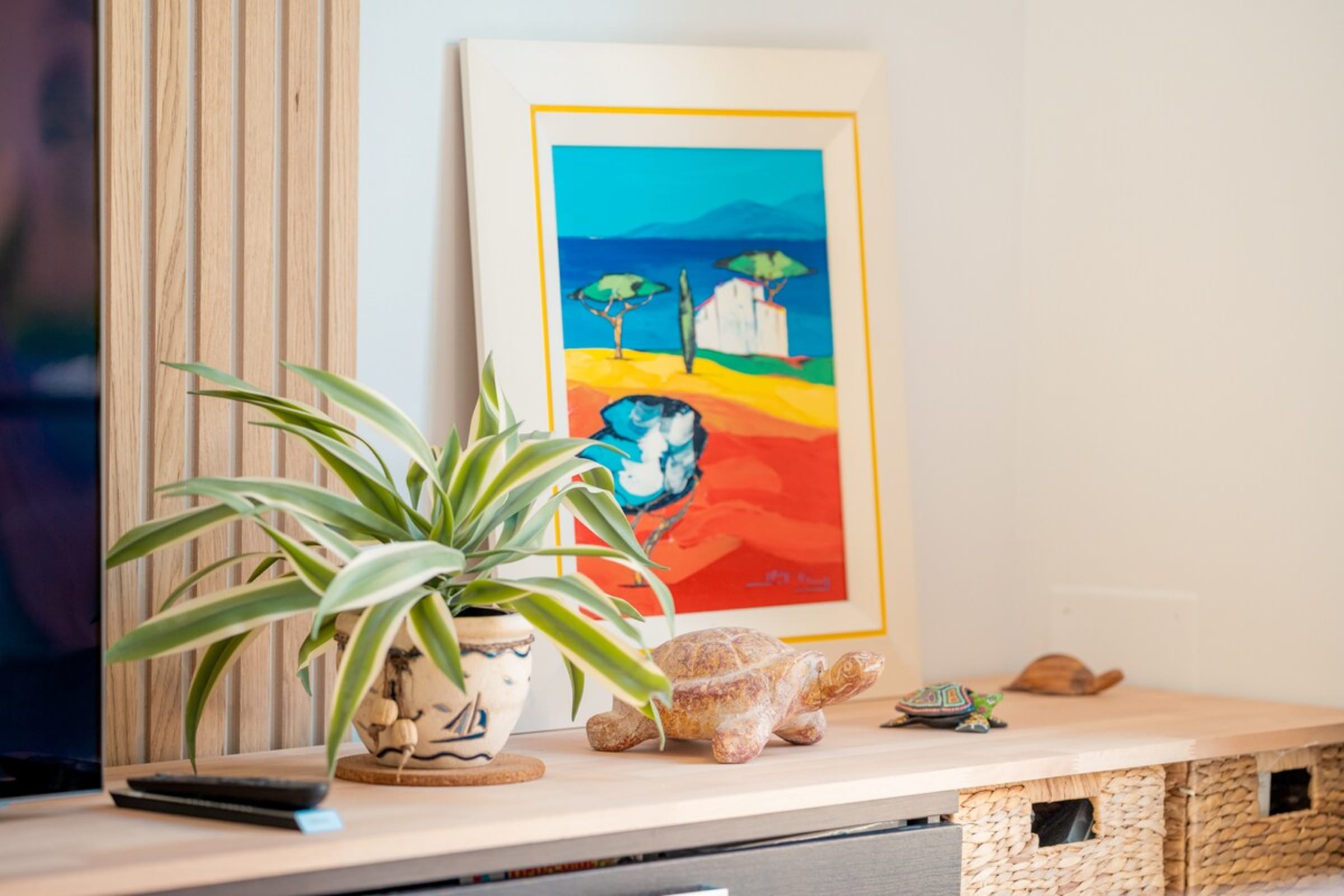 The bright living room is the heart of the house, opening to the terrace for an easy indoor–outdoor flow. Outside, the summer bar/outdoor kitchenette becomes the evening hotspot: clink glasses, nibble, chat—while the Weber barbecue steals the show. Groceries are easy: Intermarché (a French supermarket chain) is under 2 minutes by car.