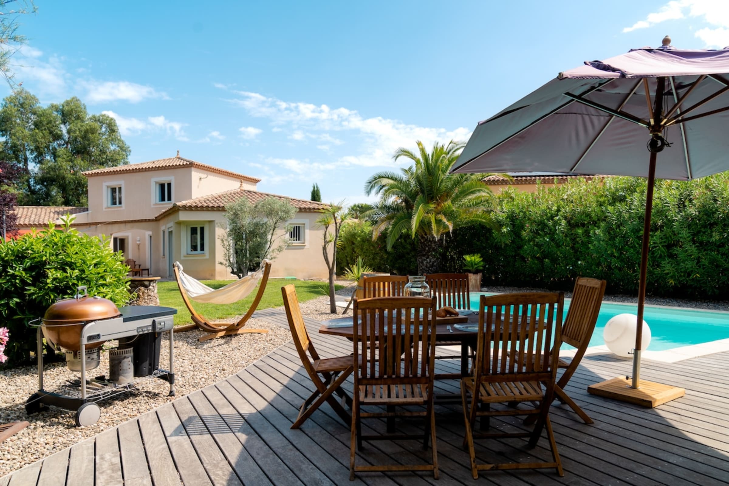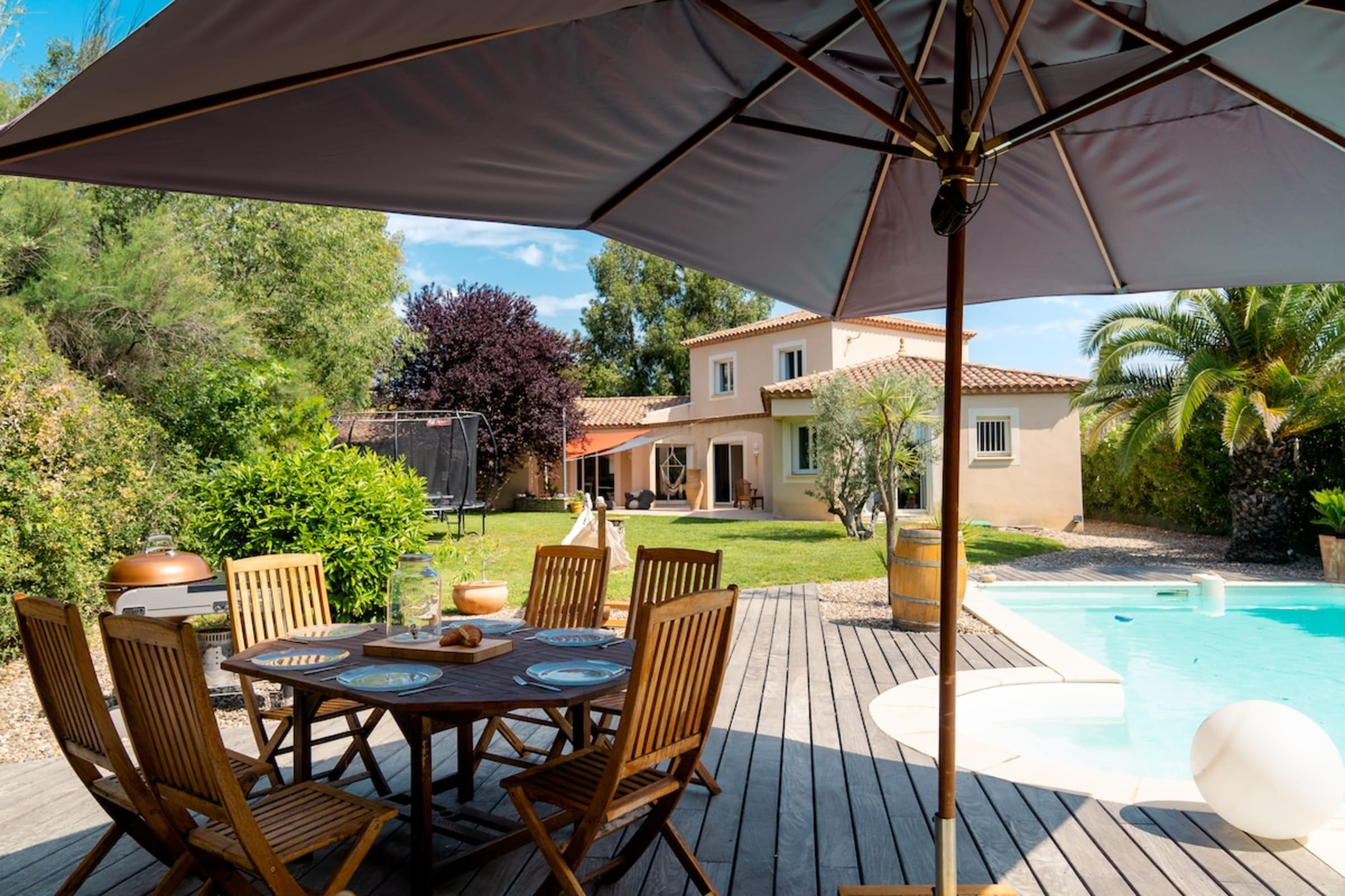 Mademoiselle Conciergerie welcomes you to Villa Andria, a Provençal address in Béziers (Bonaval) where life flows inside and out around a large garden and a generous pool. It’s perfect for family or friends: slow days, swims, and sunset apéritifs that linger.
